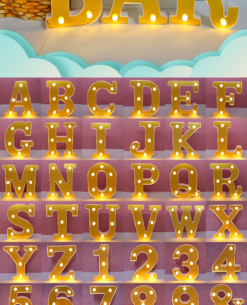 금색 영어 프로포즈 고백 문자등 거울 0-9 숫자등 생일 축하 LED등 사랑 발광등스토어 가기
