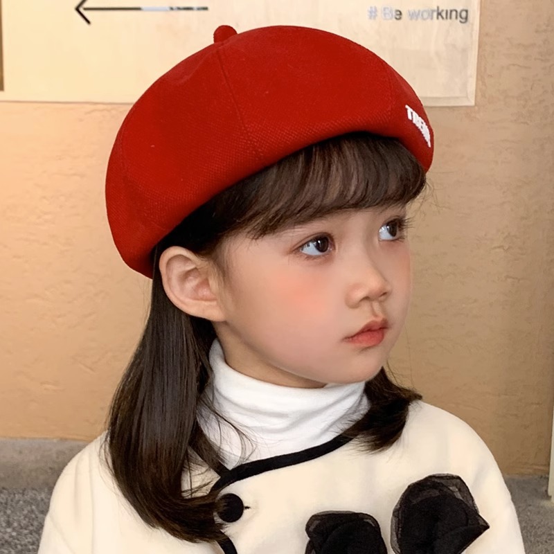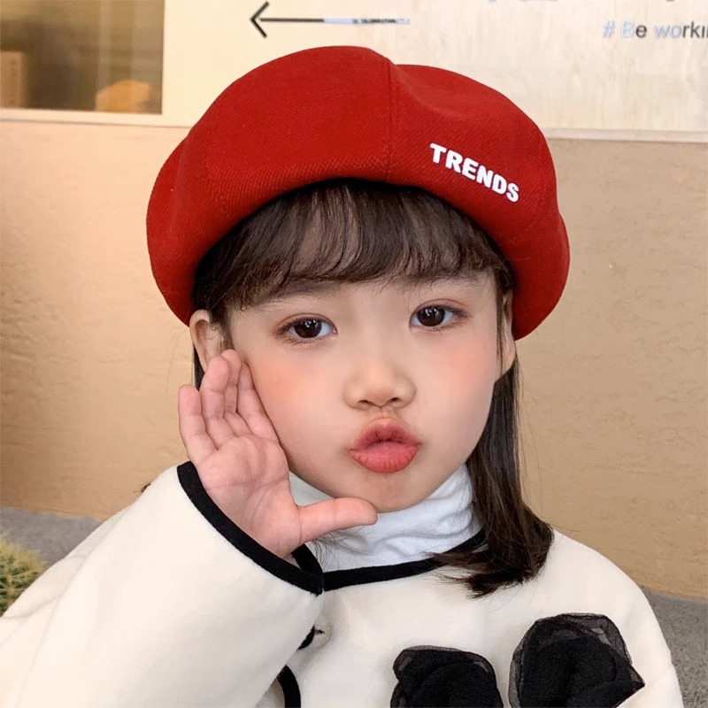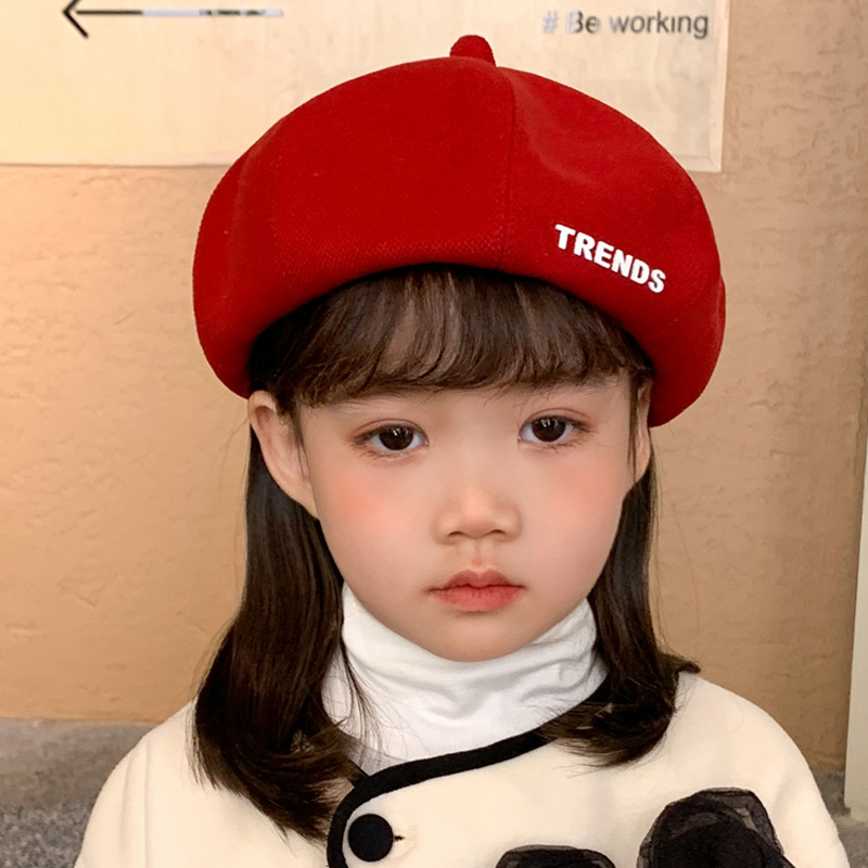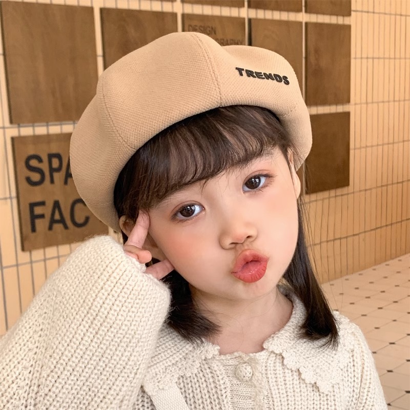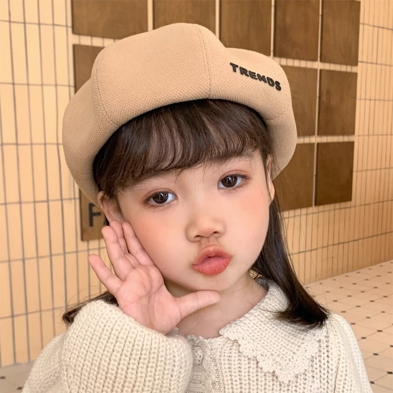 어린이 모자 가을과 겨울 새로운 스타일 유행 소녀의 모직 베레모 여아 데일리 모든 매치 단색 화가 모자스토어 가기