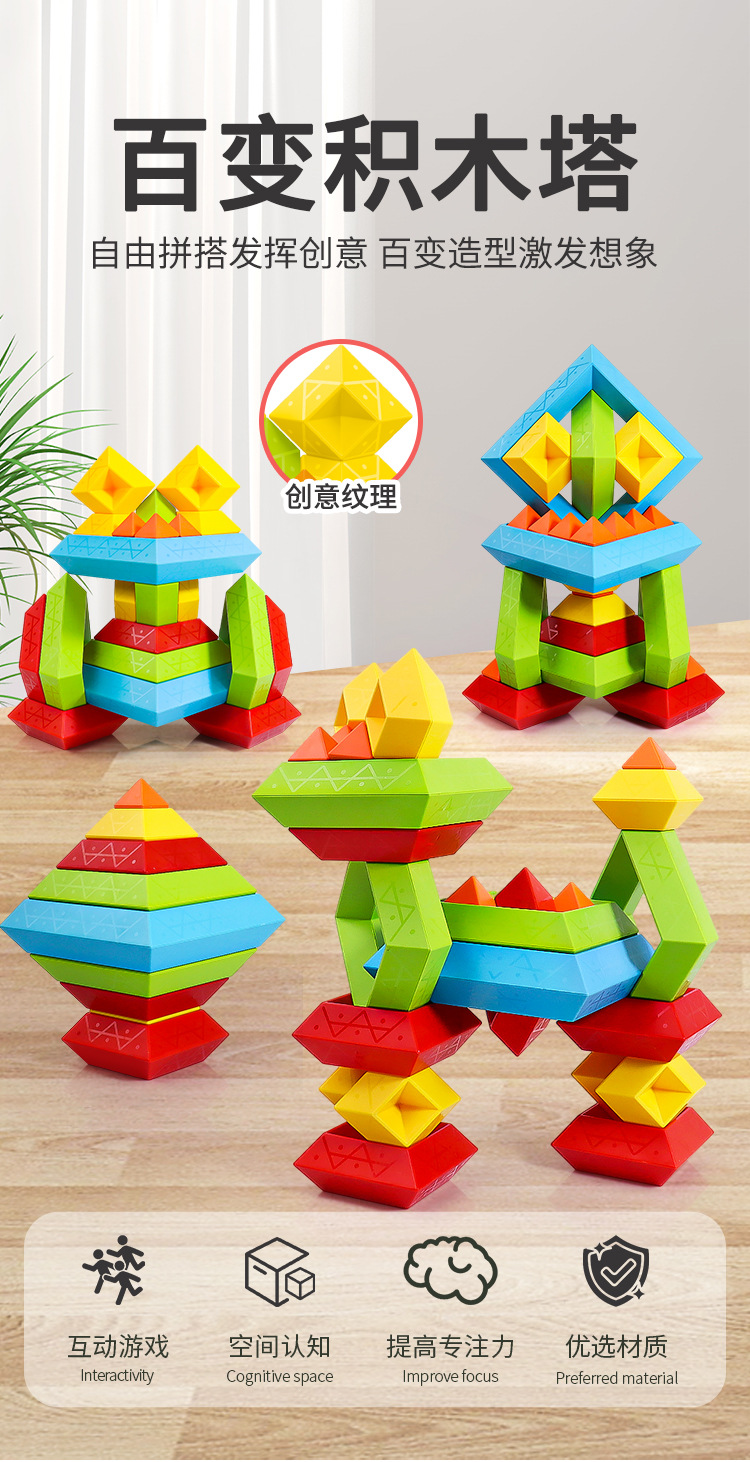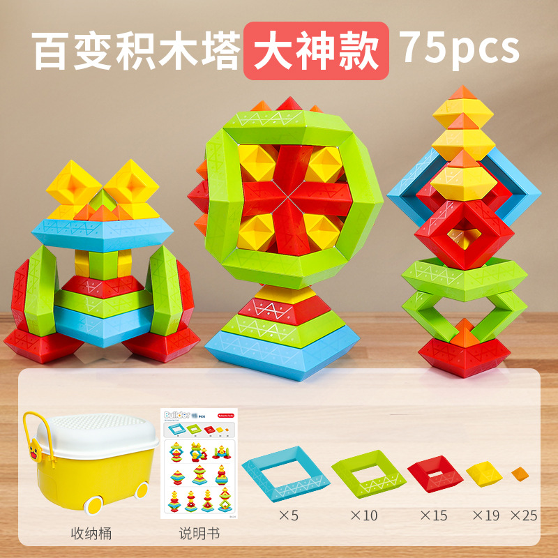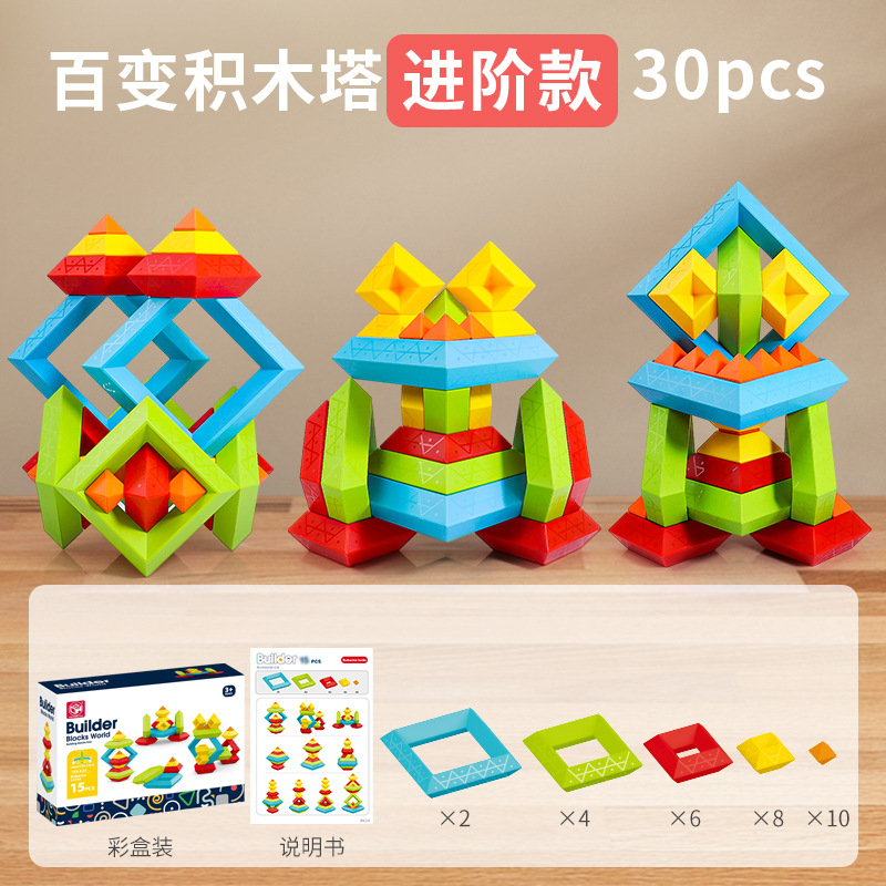 가변 빌딩 블록 타워 빌딩 블록 조립 장난감 퍼즐 루반 타워 푸싱 크리 에이 티브 파일 타워 대형 입자 빌딩 블록 피라미드스토어 가기