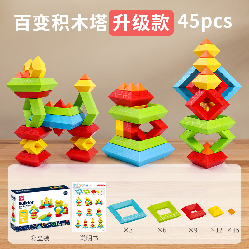 가변 빌딩 블록 타워 빌딩 블록 조립 장난감 퍼즐 루반 타워 푸싱 크리 에이 티브 파일 타워 대형 입자 빌딩 블록 피라미드