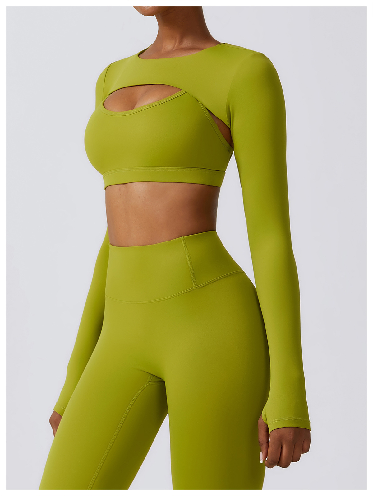 Ze Chuang 벽 스포츠 도자기 어깨 긴 소매 목도리 요가 세트 알몸 피트니스 세트 달리기 스포츠 블라우스 8347