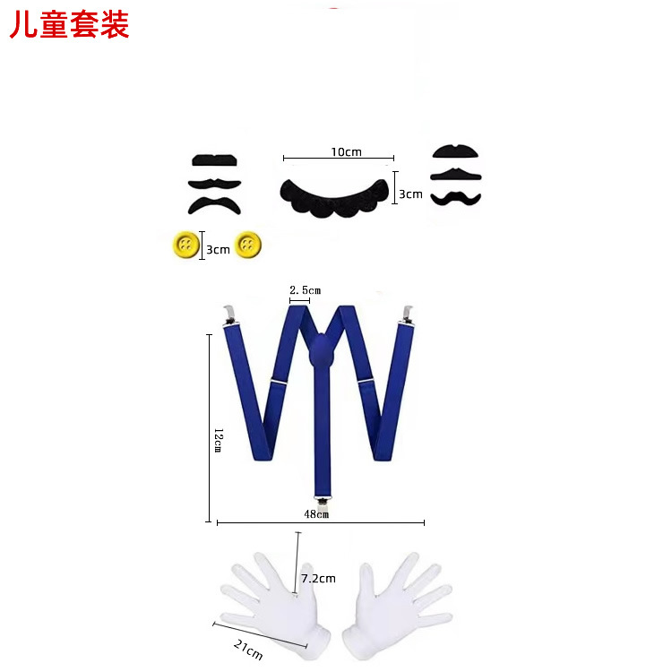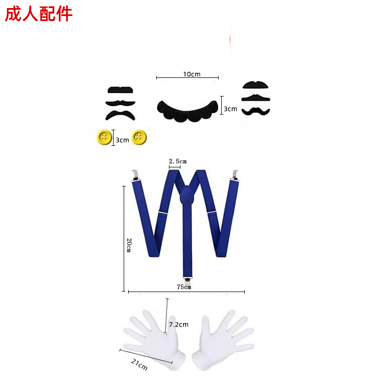• (성인) 어깨 끈 1 개 + 수염 1 개 + 장갑 1 켤레 + 버튼 2 개