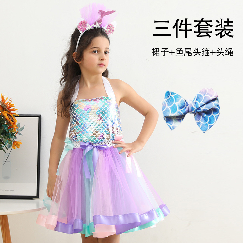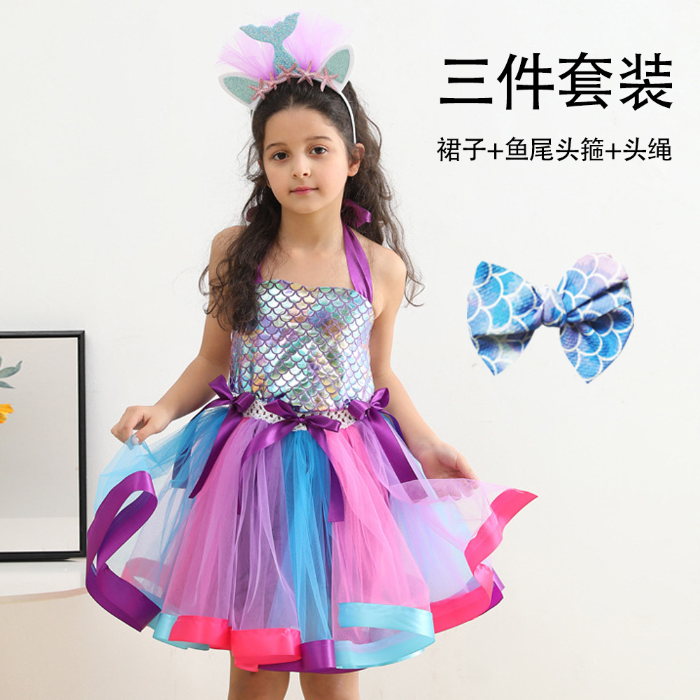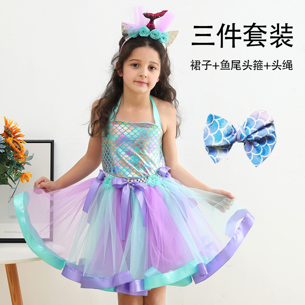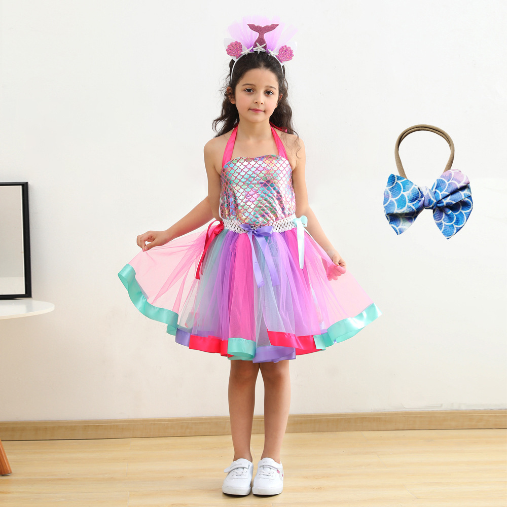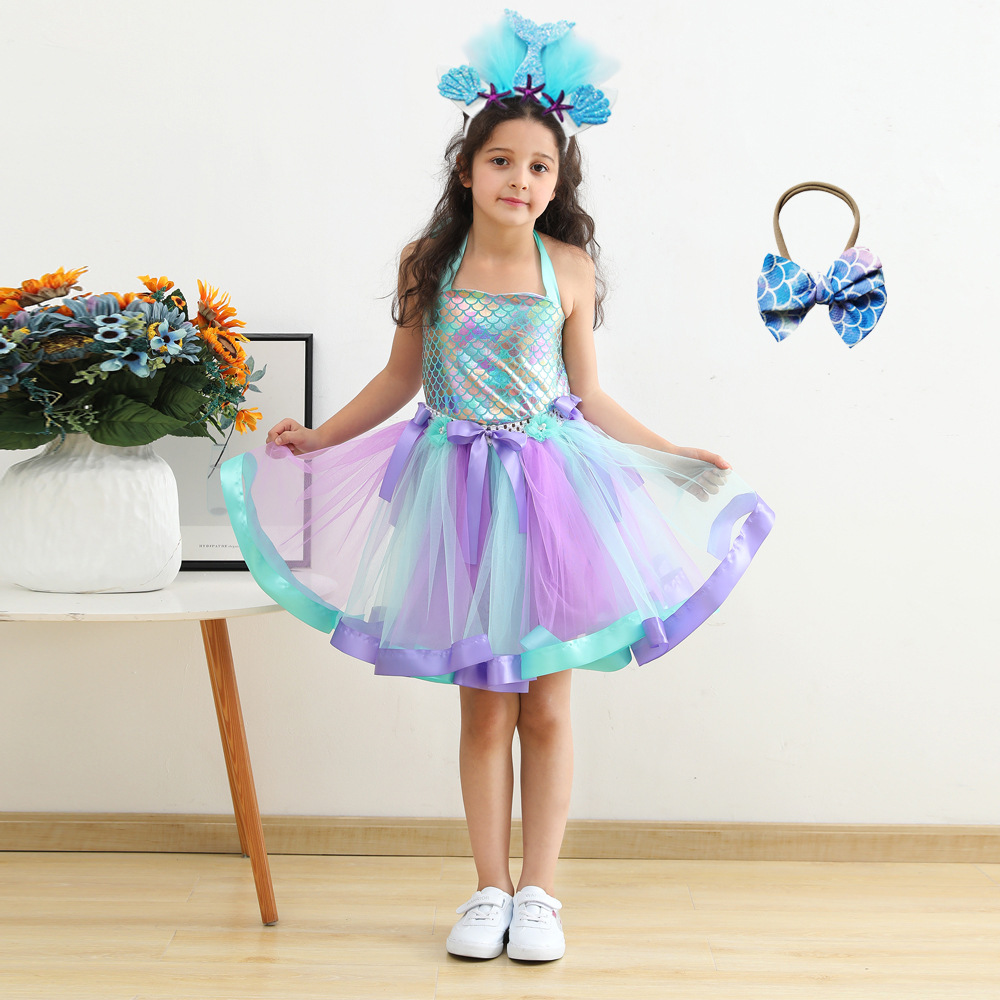 2025 새로운 인어 공주 드레스 무료 머리 장식 소녀 생일 파티 컬러 메쉬 드레스스토어 가기