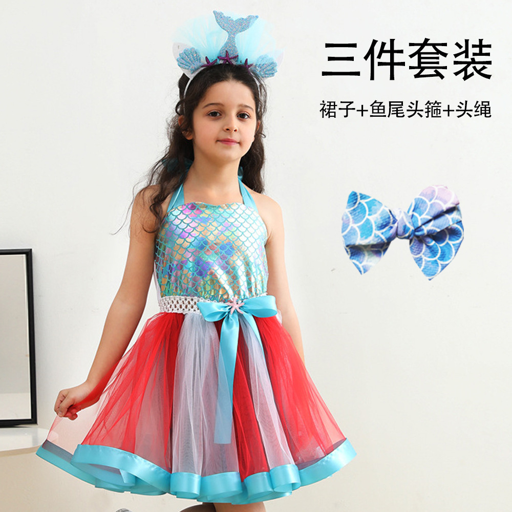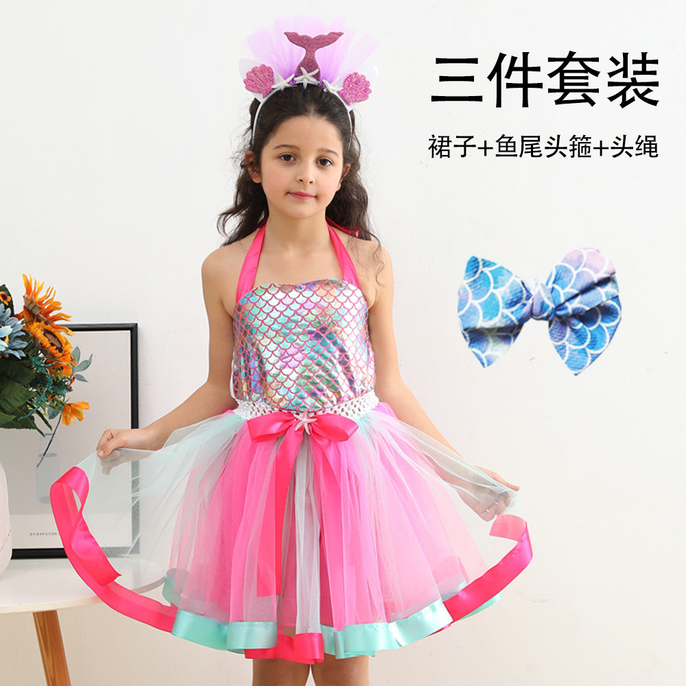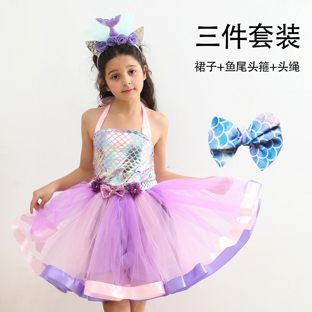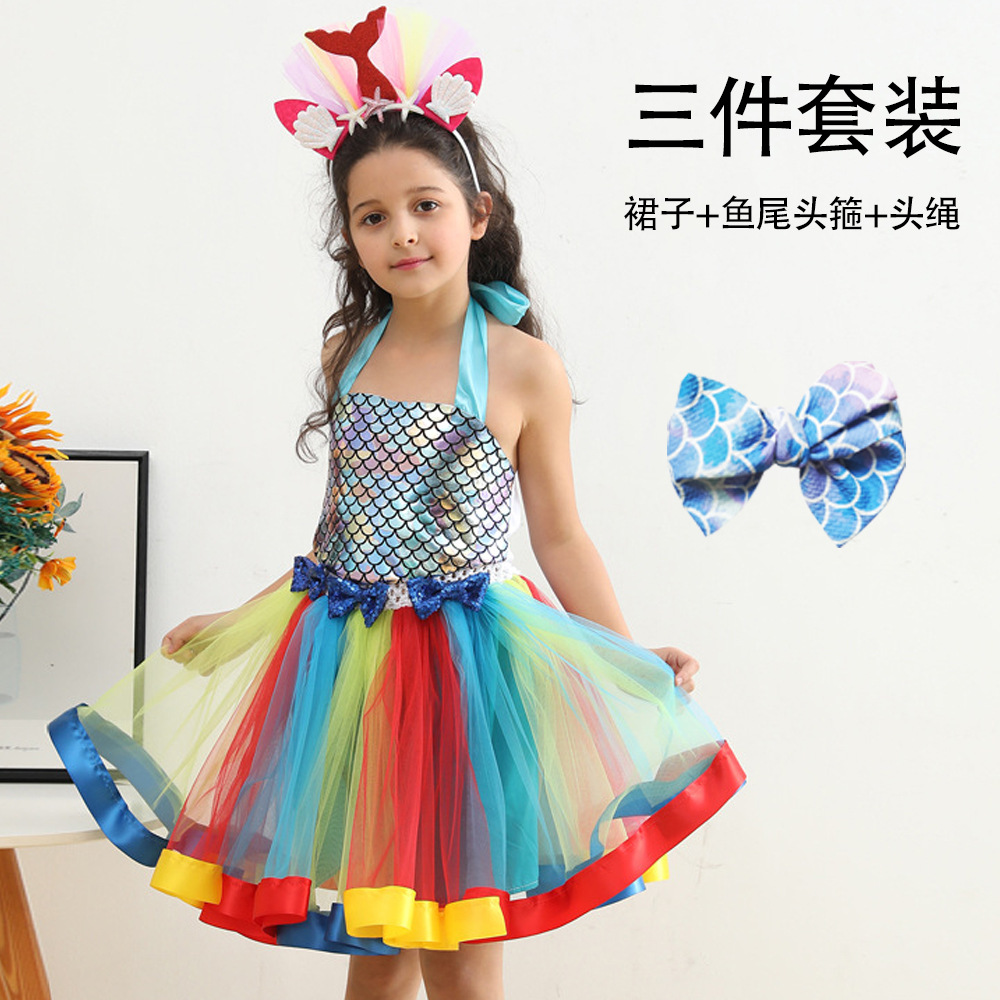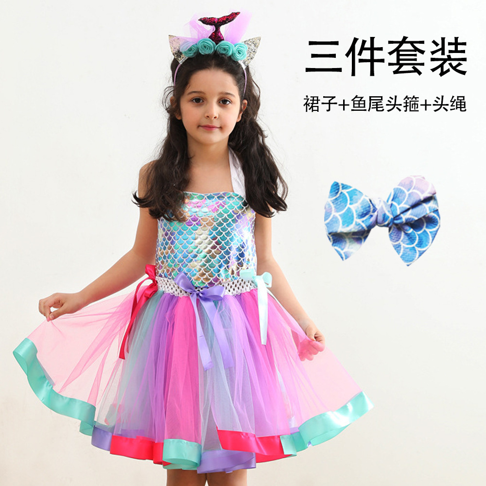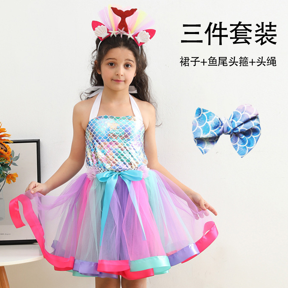 2025 새로운 인어 공주 드레스 무료 머리 장식 소녀 생일 파티 컬러 메쉬 드레스스토어 가기