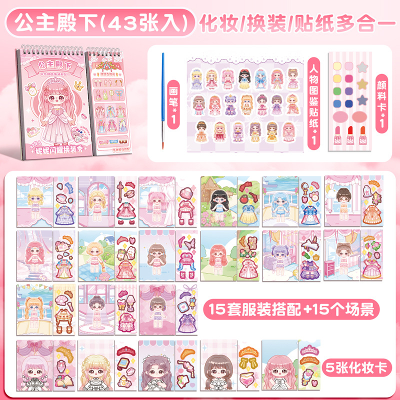 Carba 곰 공주 원피스 스티커 귀여운 소녀 3 ~ 6 세 어린이 소녀 장난감 스티커 메이크업 스티커 책
