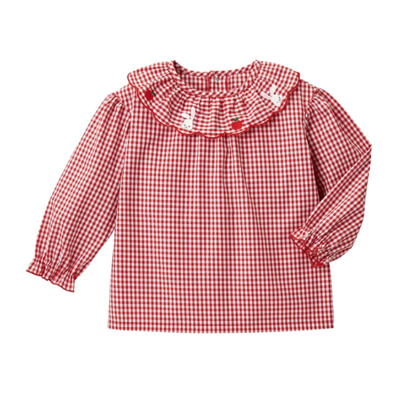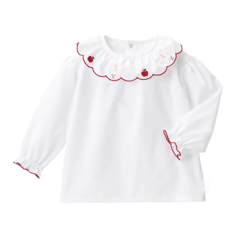 아동 의류 봄과 가을 어린이 만화 사과 토끼 수 놓은 레이스 칼라 긴팔 셔츠와 폴로 셔츠스토어 가기
