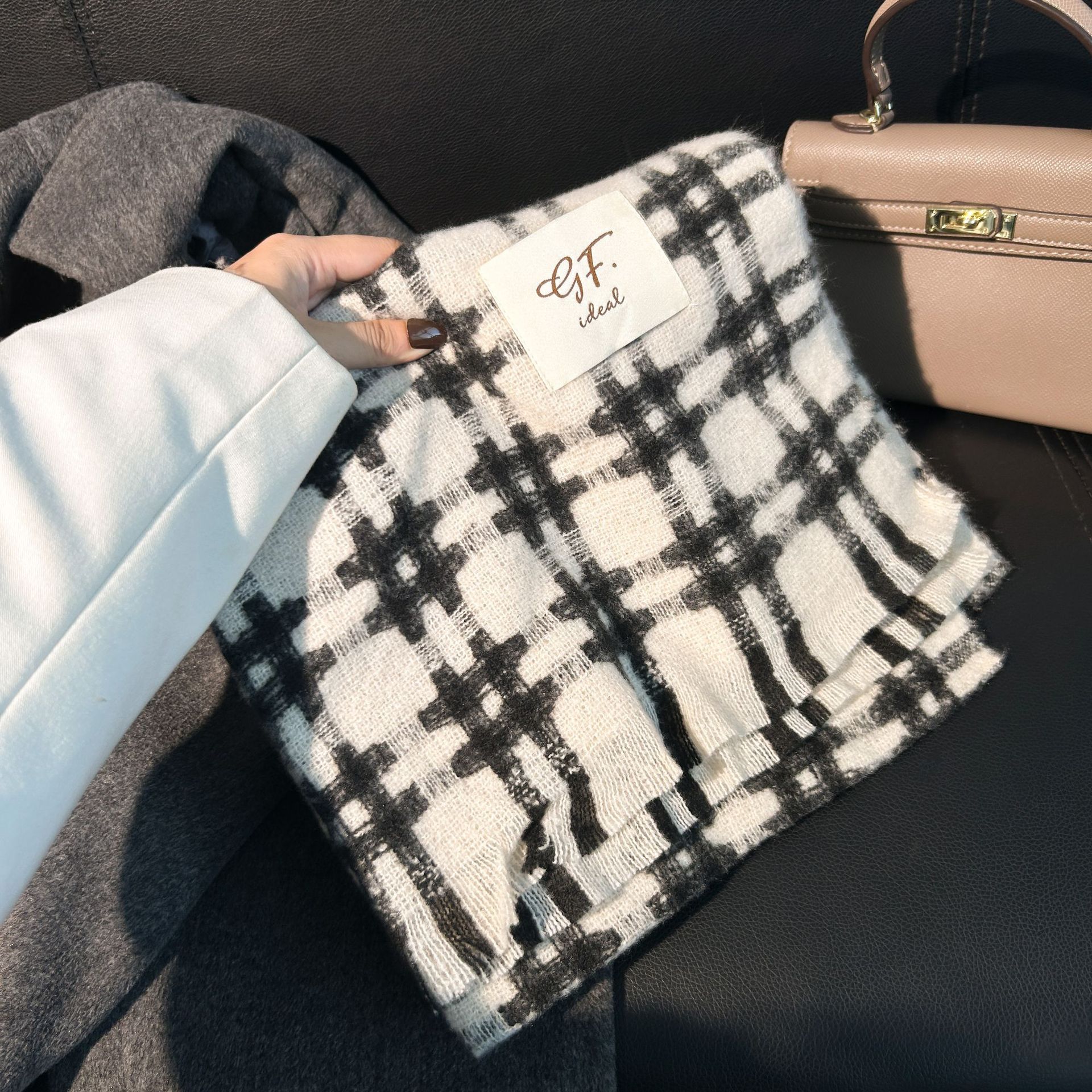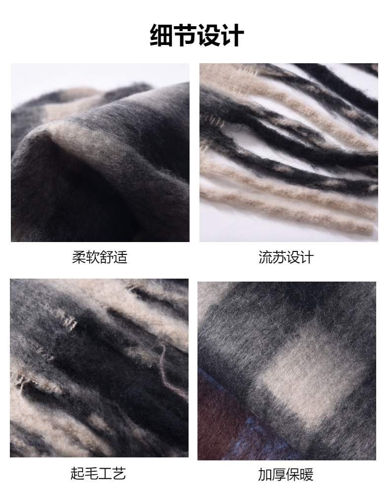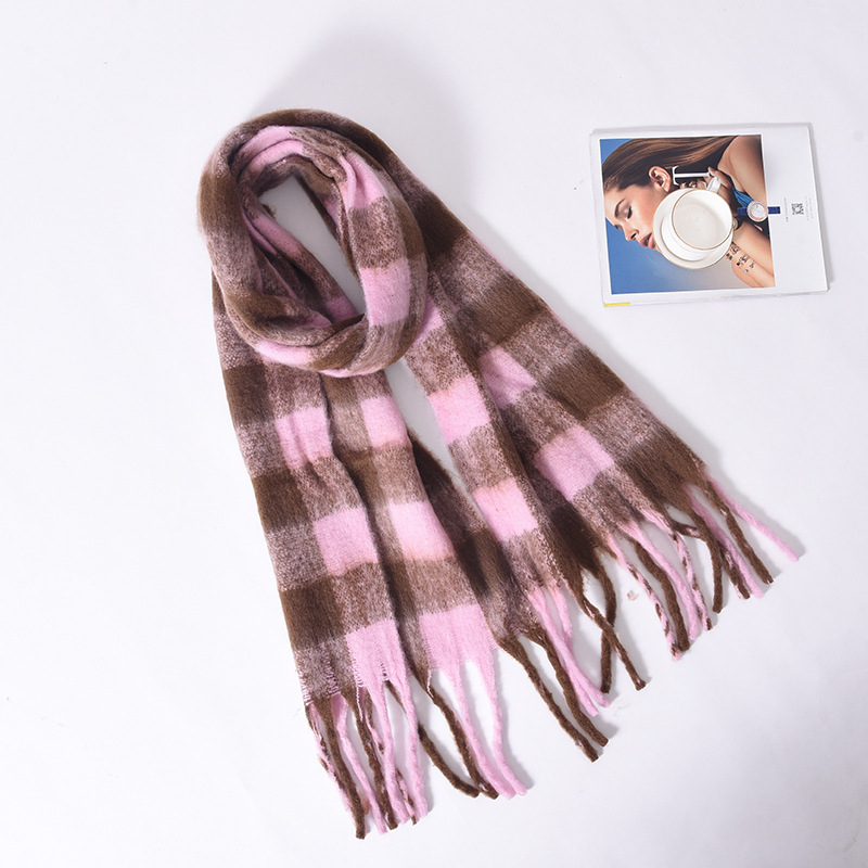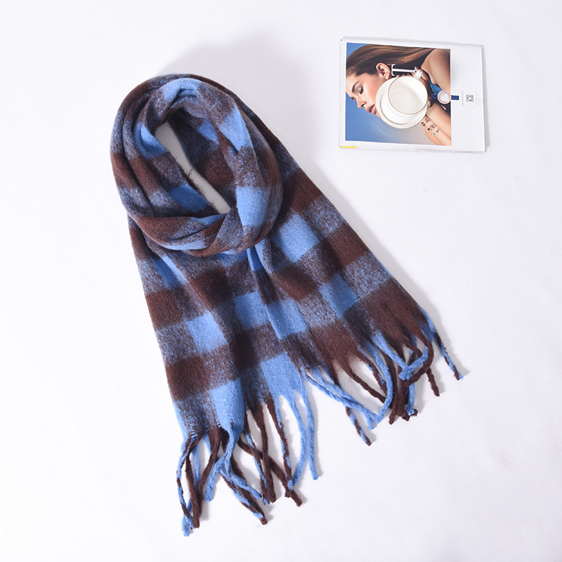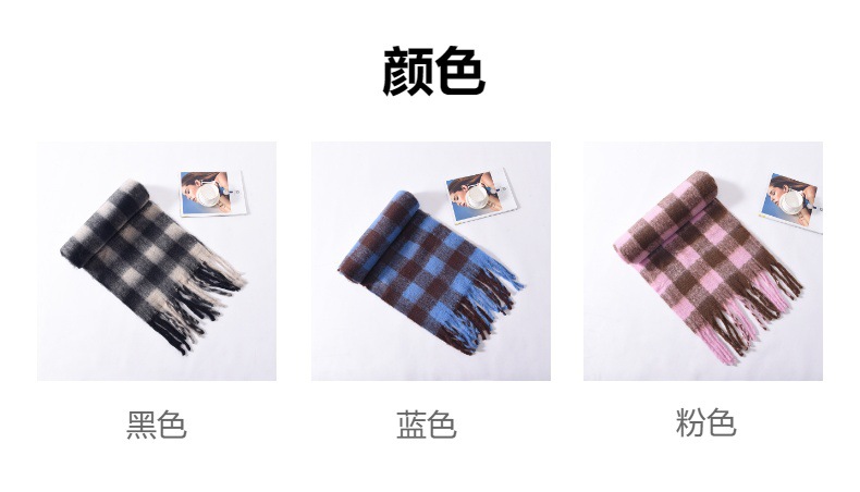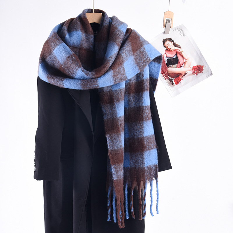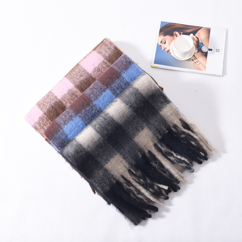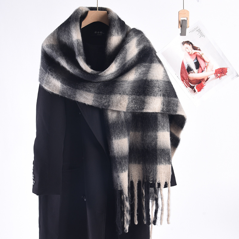 Tonglu 스카프 여성의 겨울 하이 엔드 감각 Mahair 흑백 격자 무늬 스카프 같은 스타일 폭발 따뜻한 두꺼운 스카프