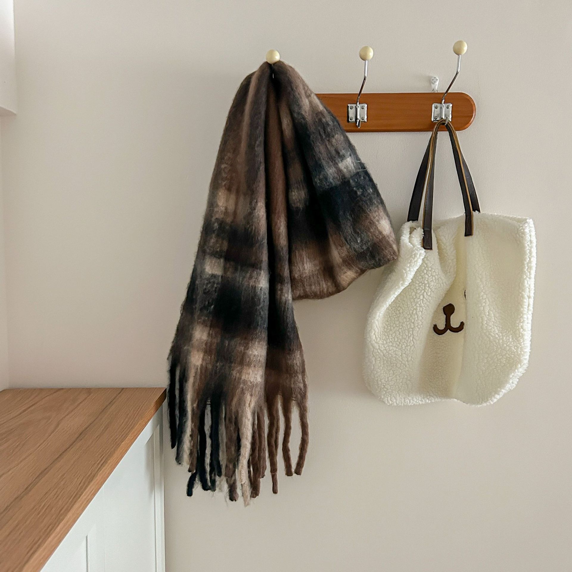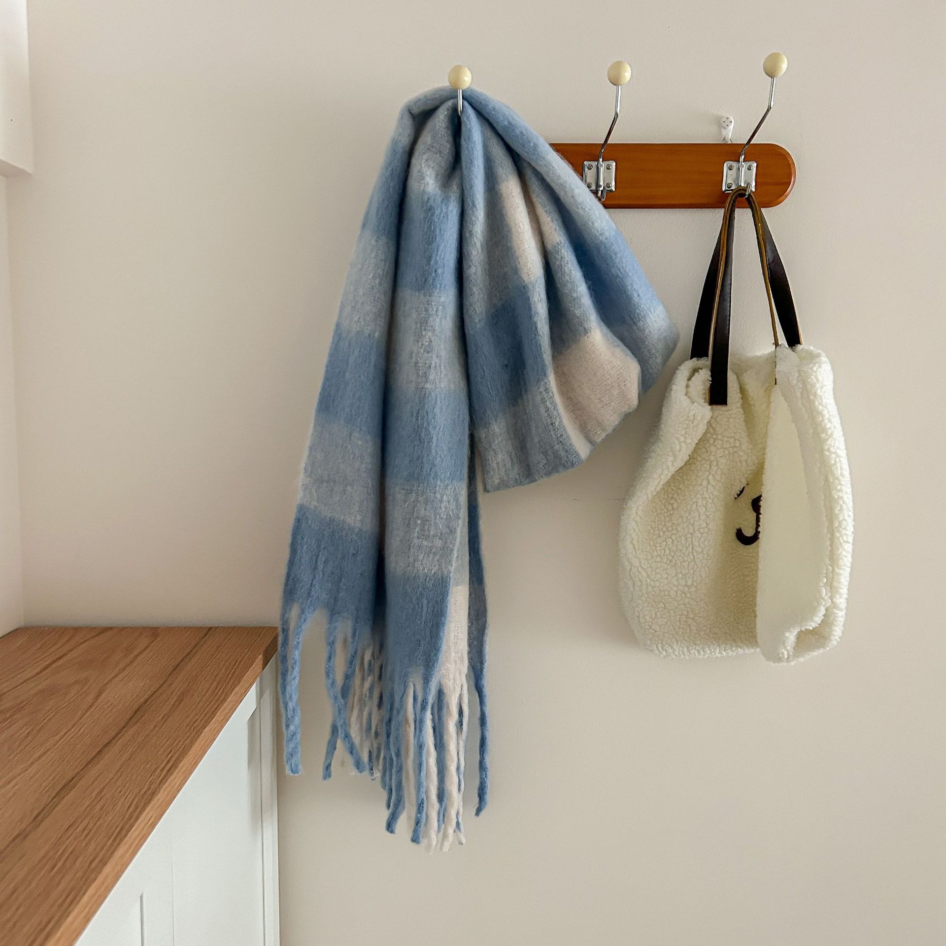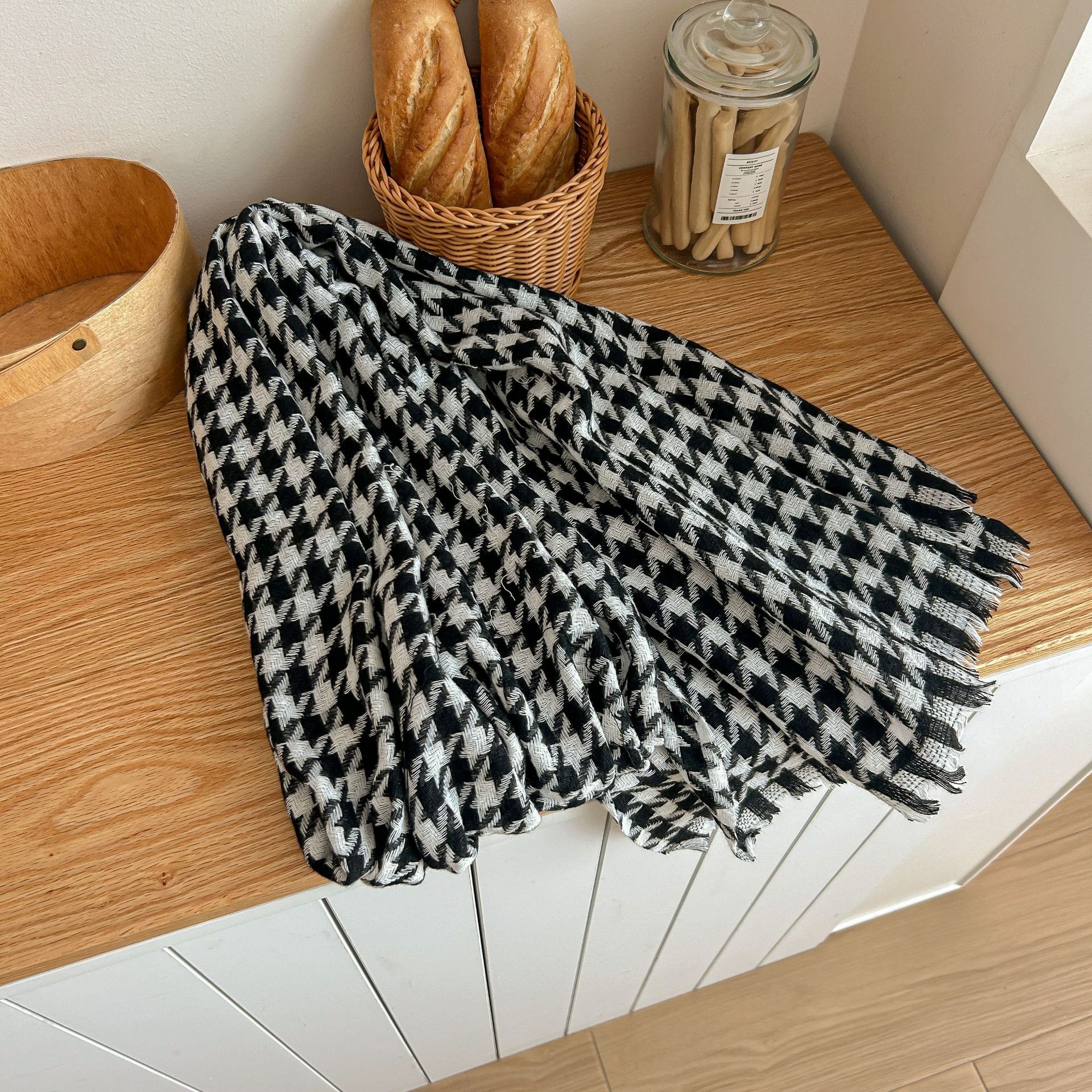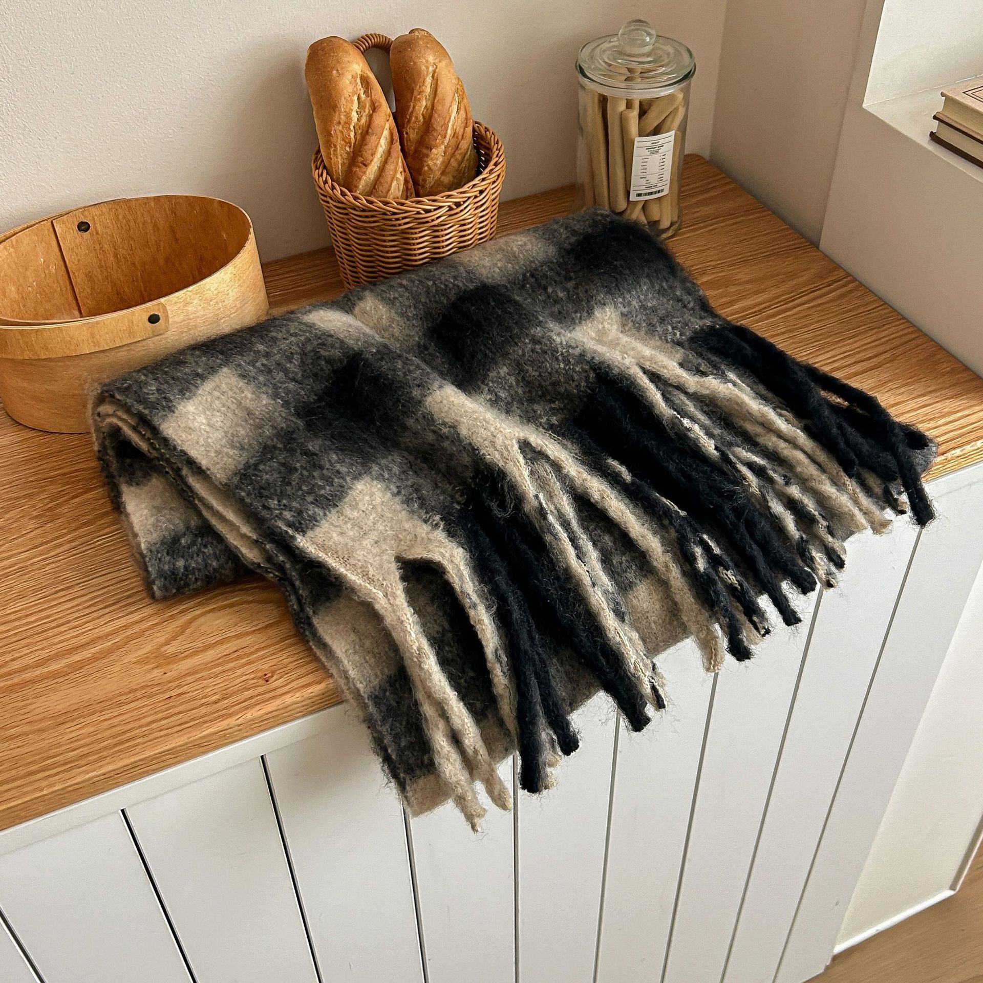 Tonglu 스카프 여성의 겨울 하이 엔드 감각 Mahair 흑백 격자 무늬 스카프 같은 스타일 폭발 따뜻한 두꺼운 스카프