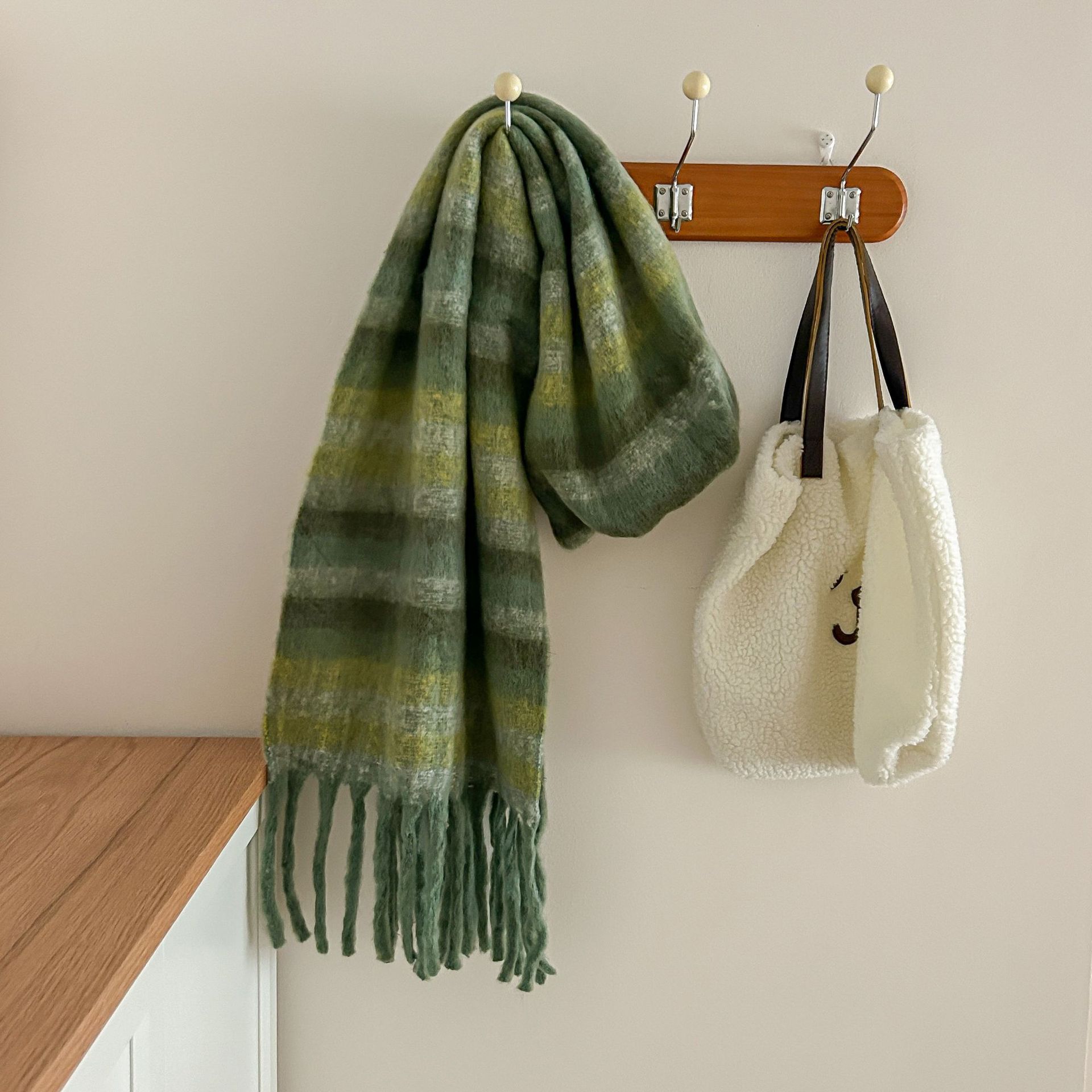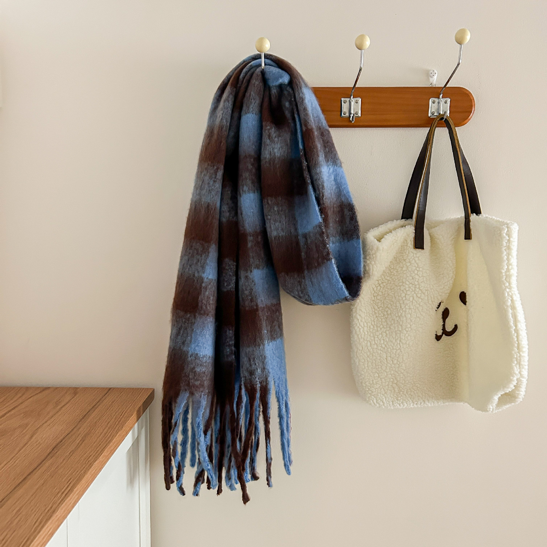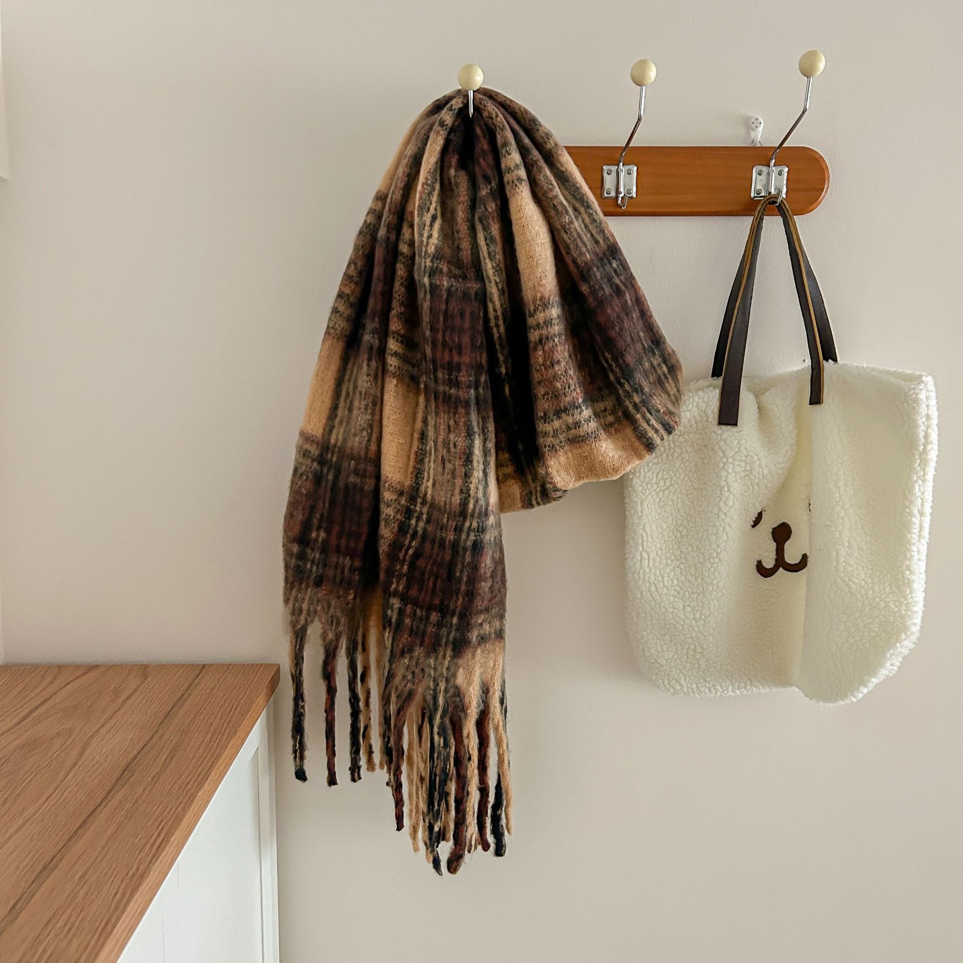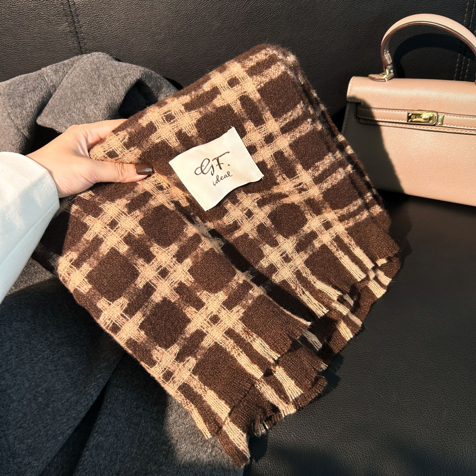 Tonglu 스카프 여성의 겨울 하이 엔드 감각 Mahair 흑백 격자 무늬 스카프 같은 스타일 폭발 따뜻한 두꺼운 스카프