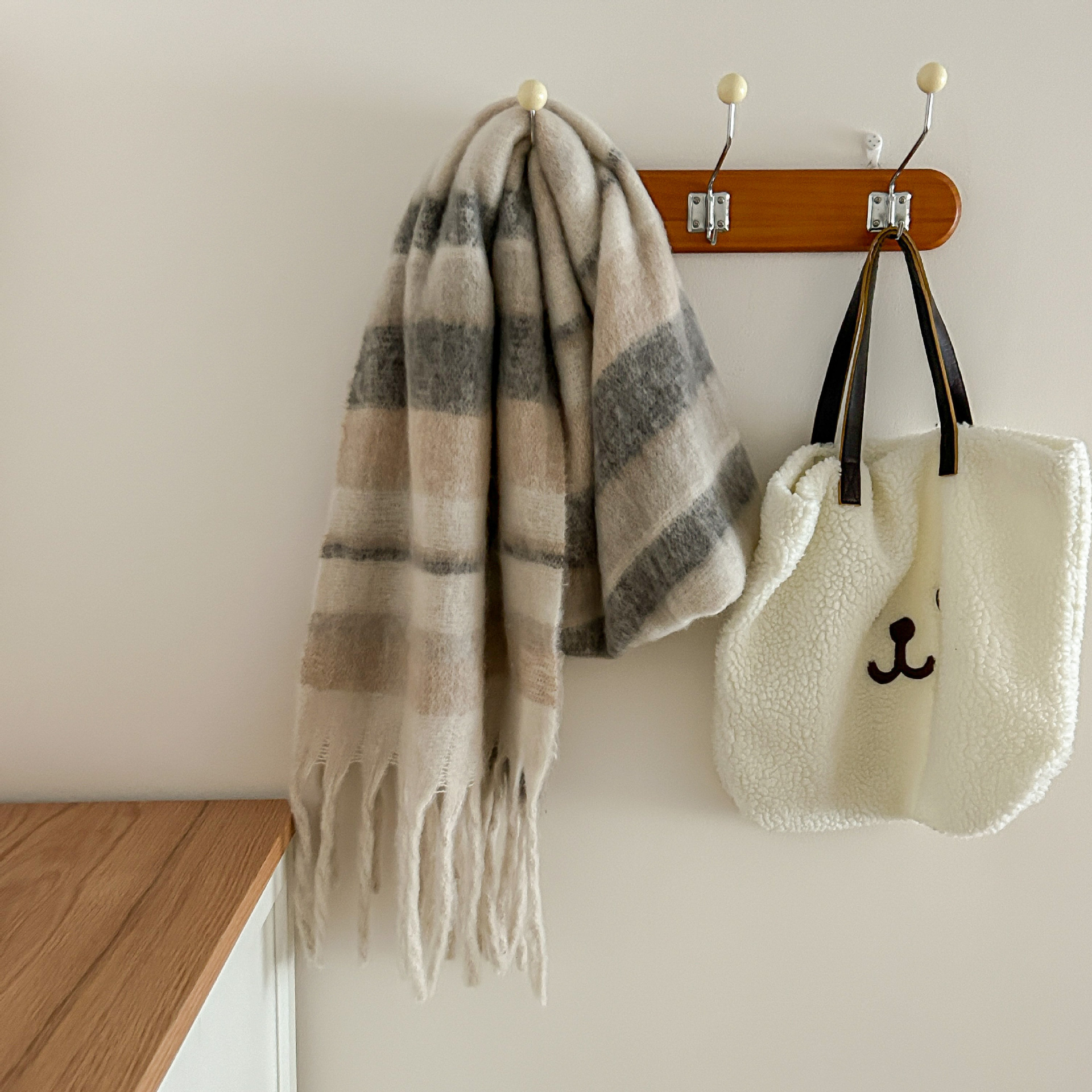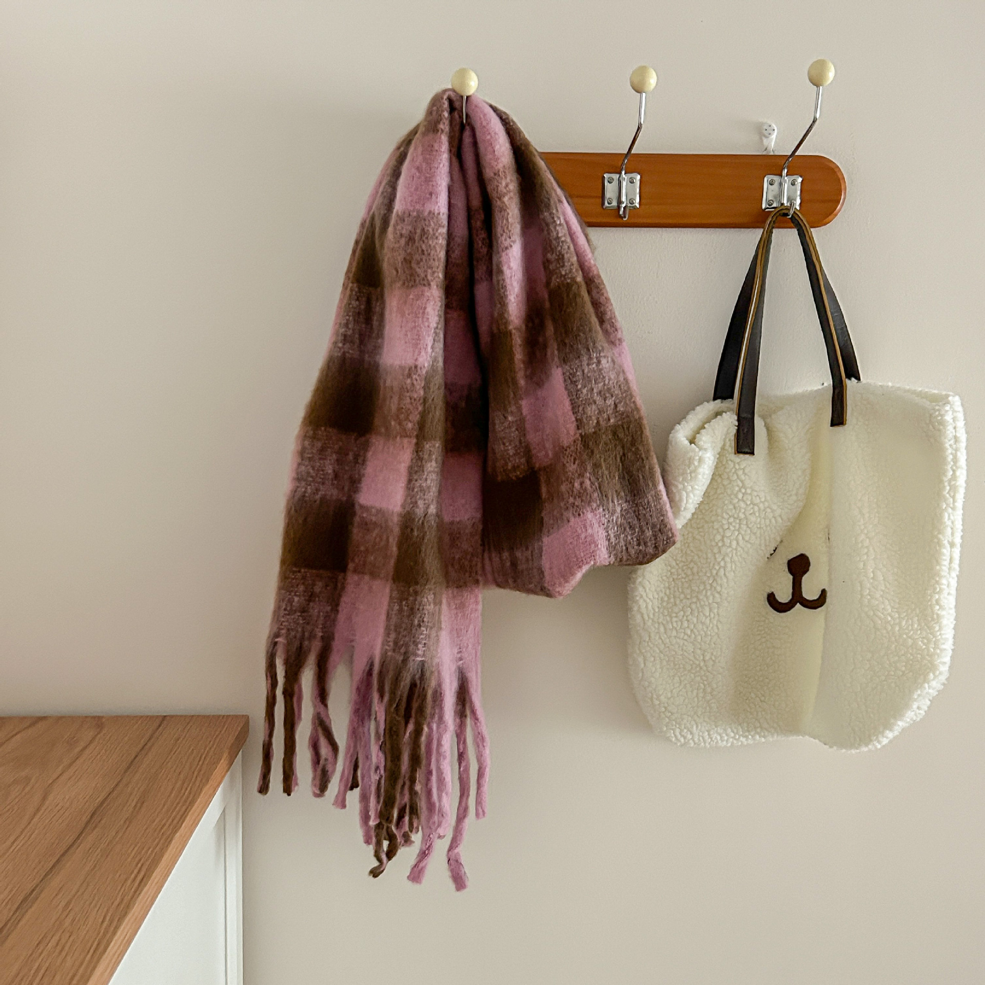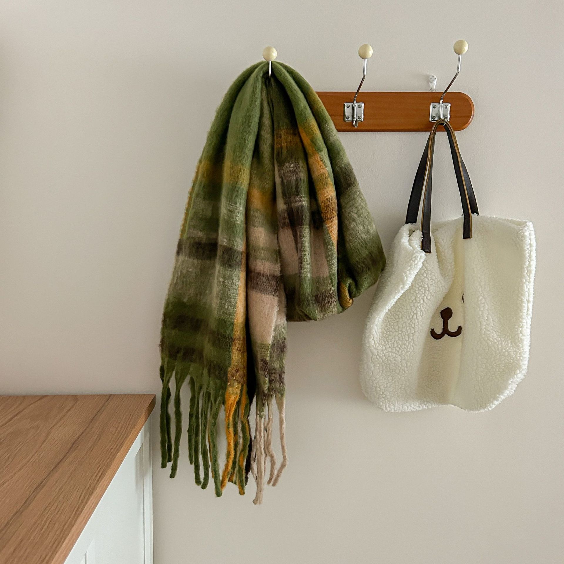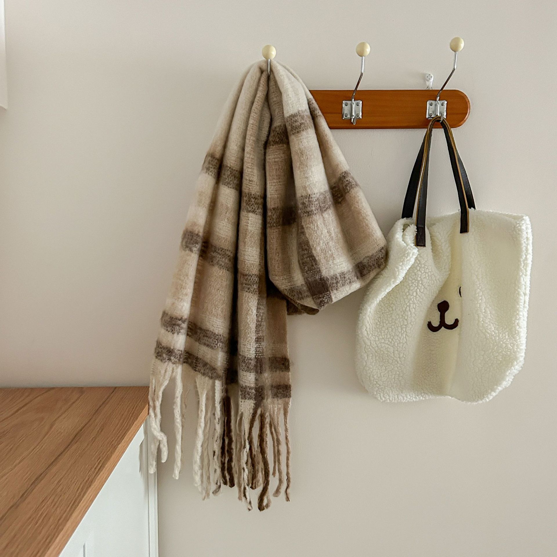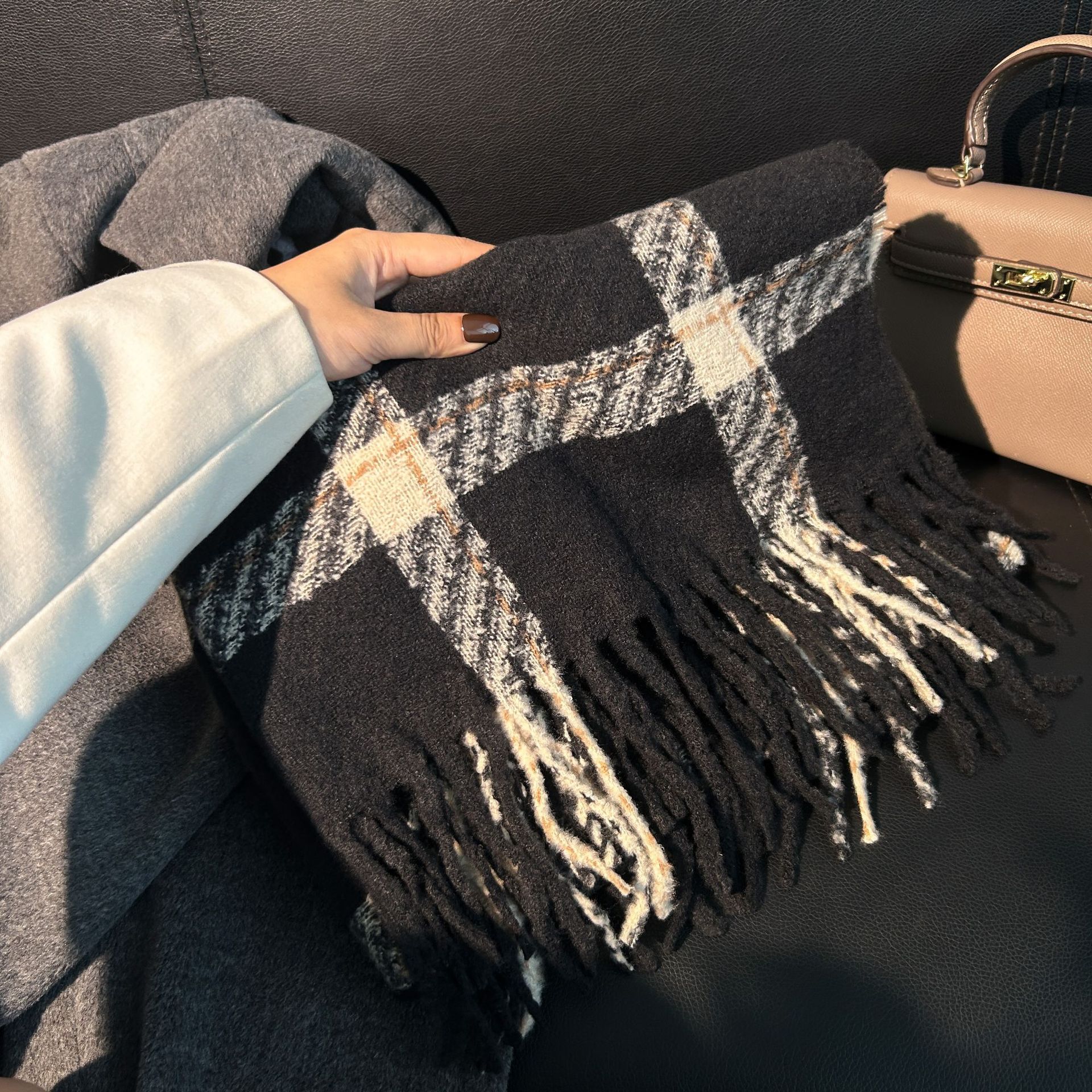 Tonglu 스카프 여성의 겨울 하이 엔드 감각 Mahair 흑백 격자 무늬 스카프 같은 스타일 폭발 따뜻한 두꺼운 스카프