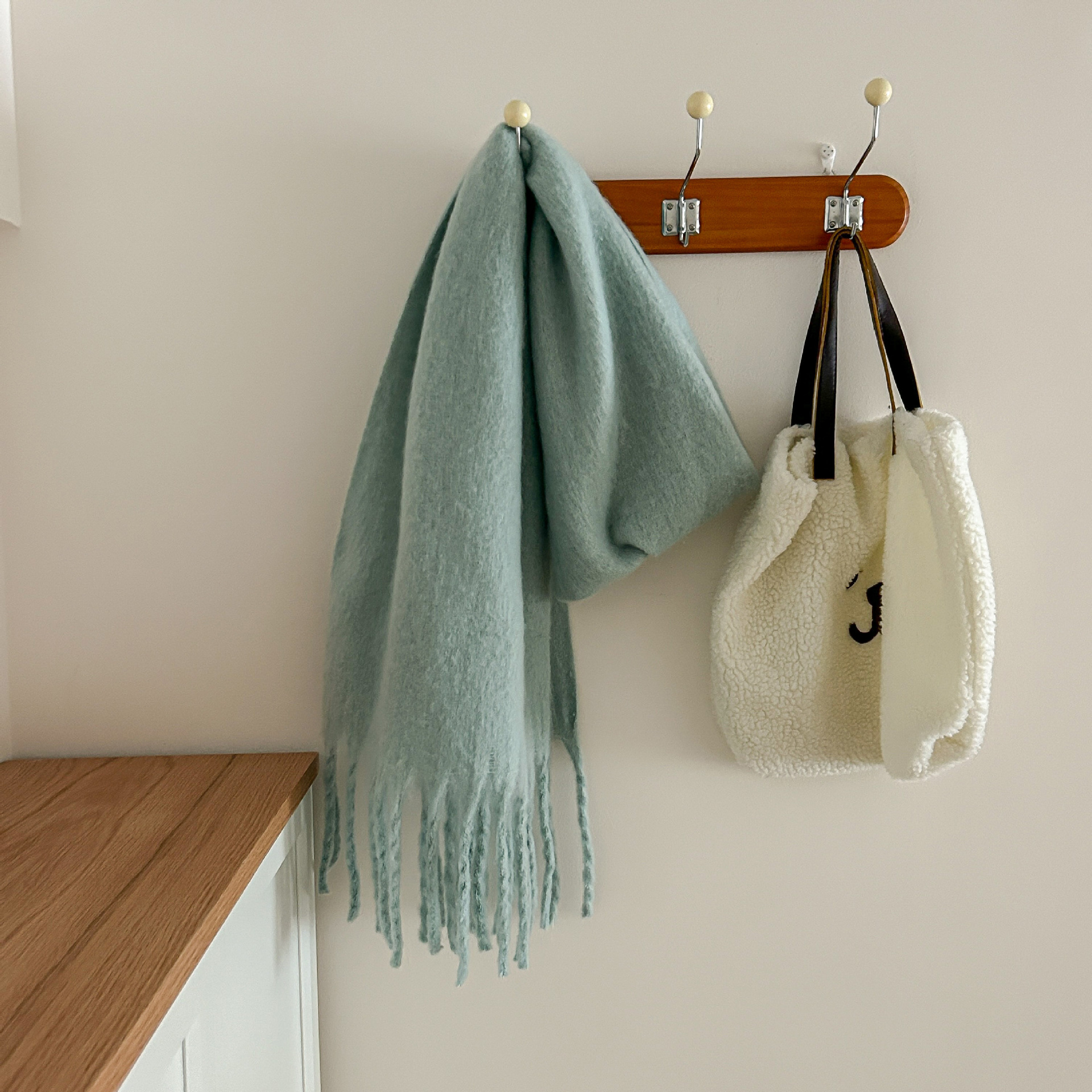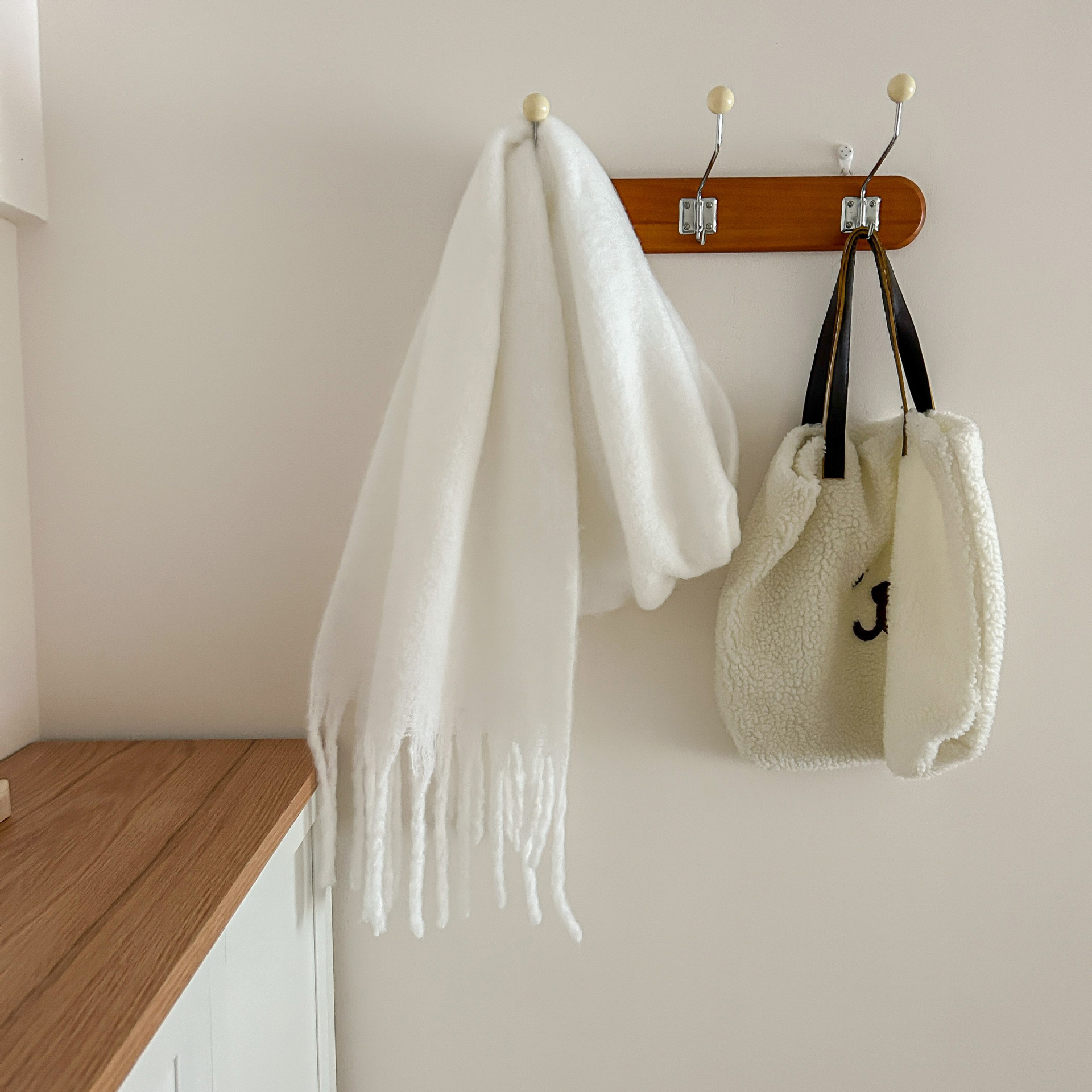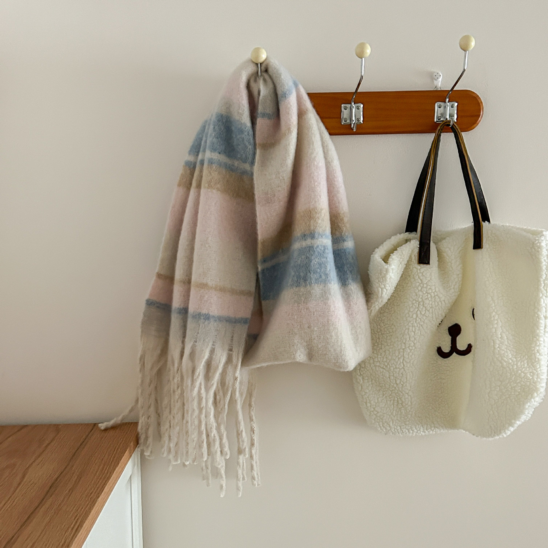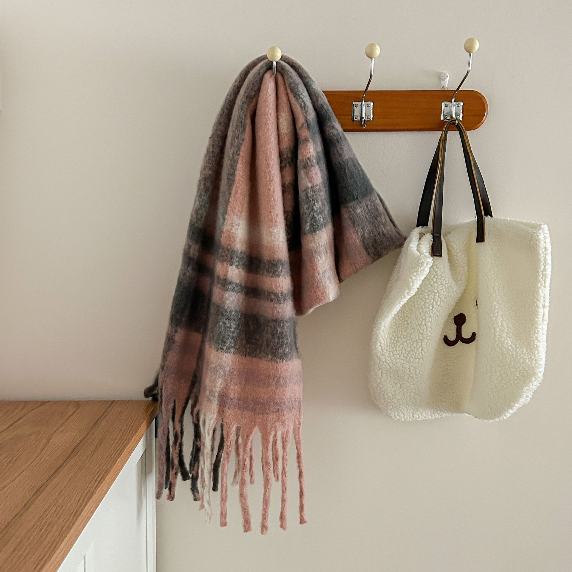 Tonglu 스카프 여성의 겨울 하이 엔드 감각 Mahair 흑백 격자 무늬 스카프 같은 스타일 폭발 따뜻한 두꺼운 스카프