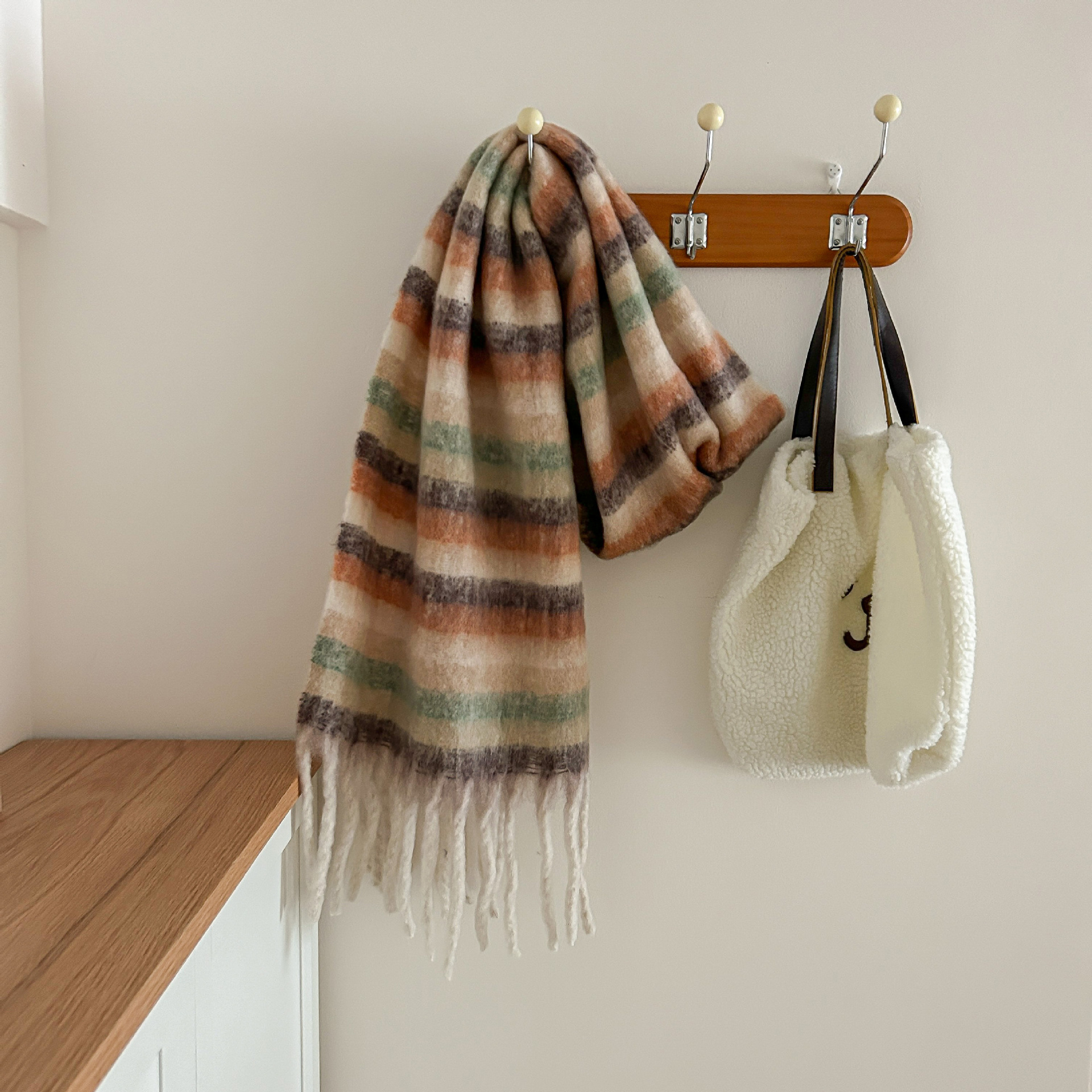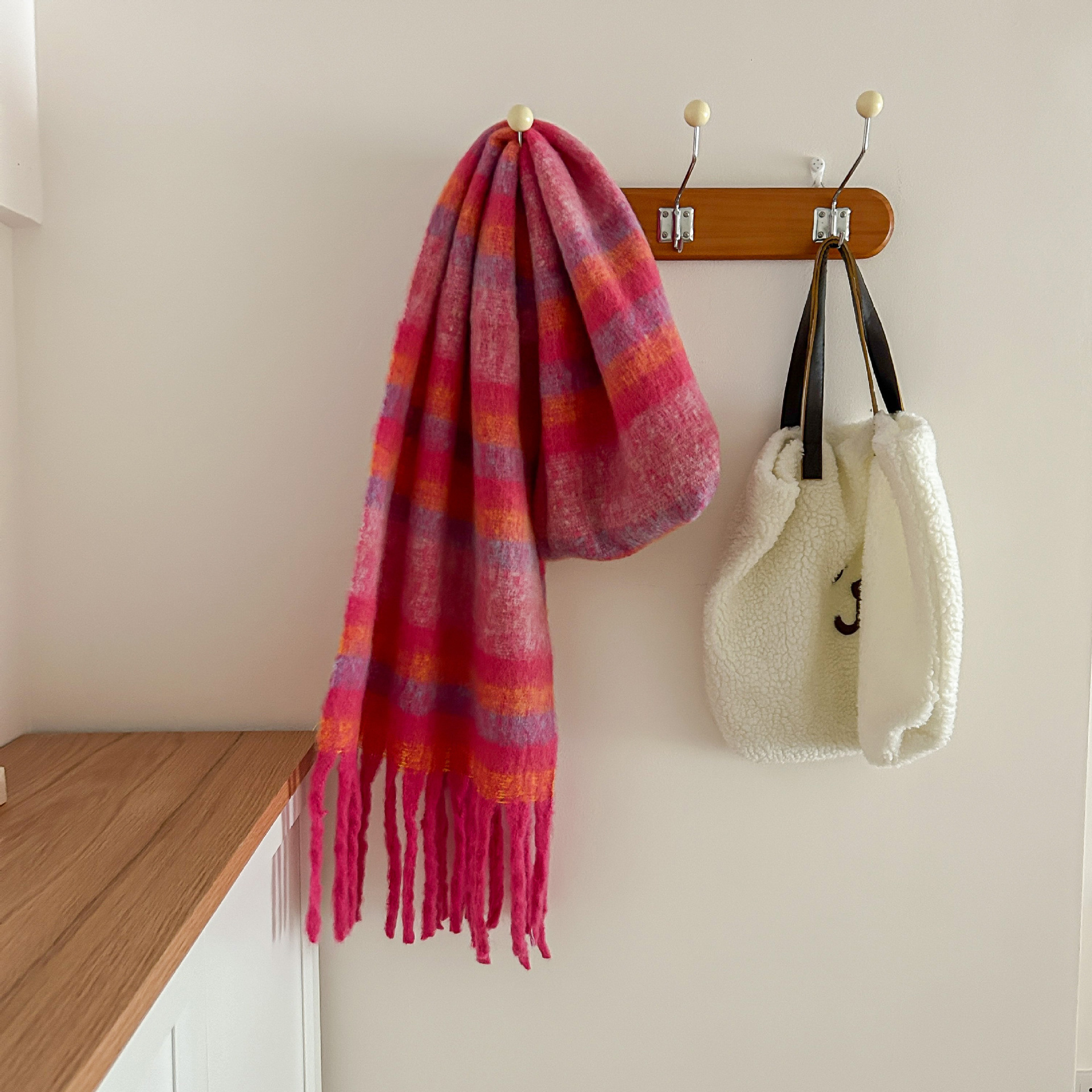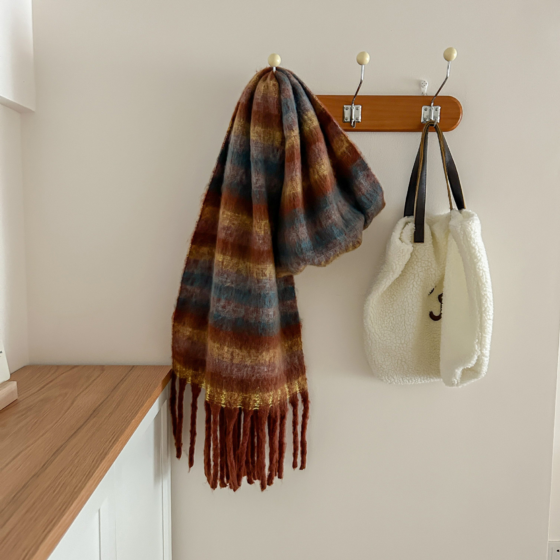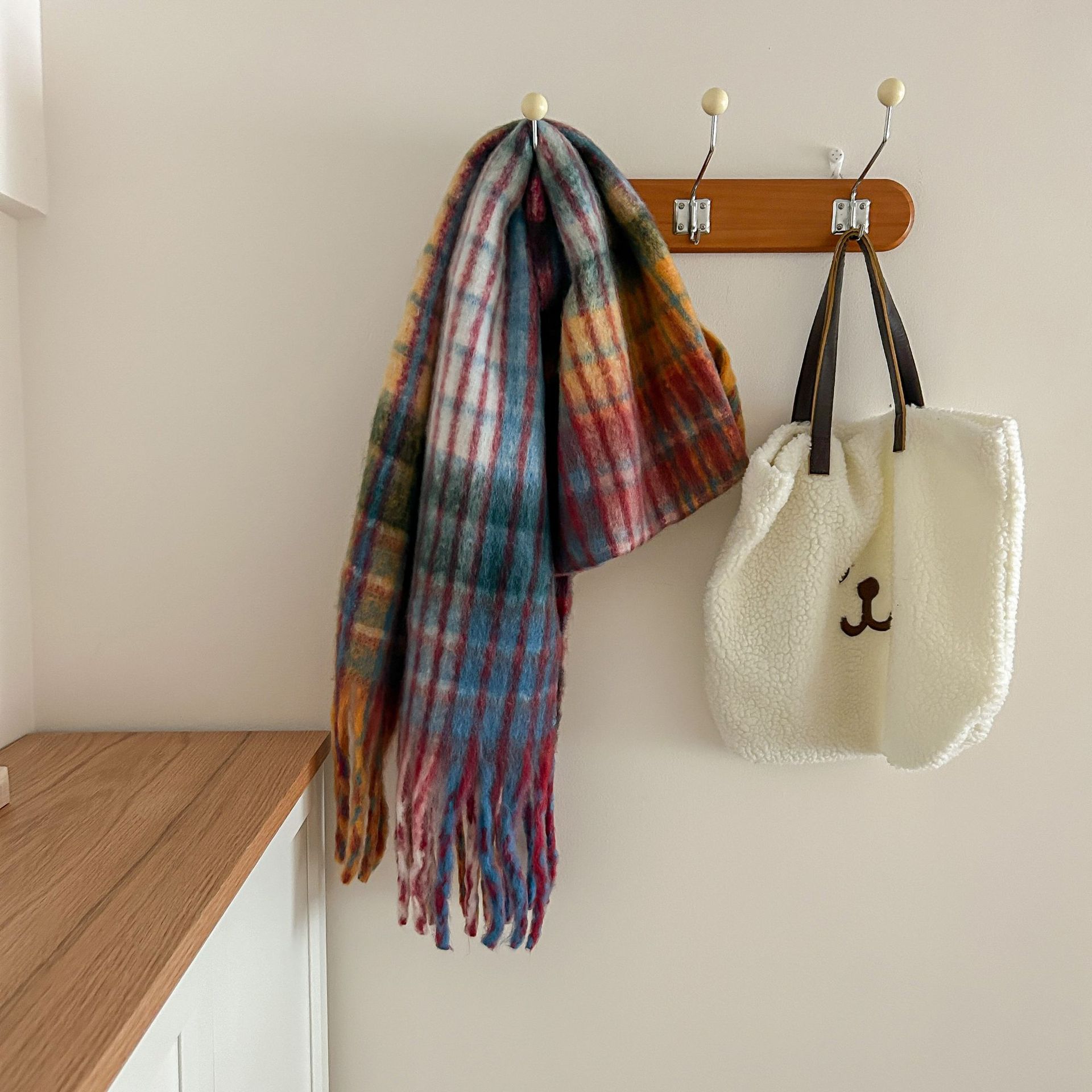 Tonglu 스카프 여성의 겨울 하이 엔드 감각 Mahair 흑백 격자 무늬 스카프 같은 스타일 폭발 따뜻한 두꺼운 스카프스토어 가기