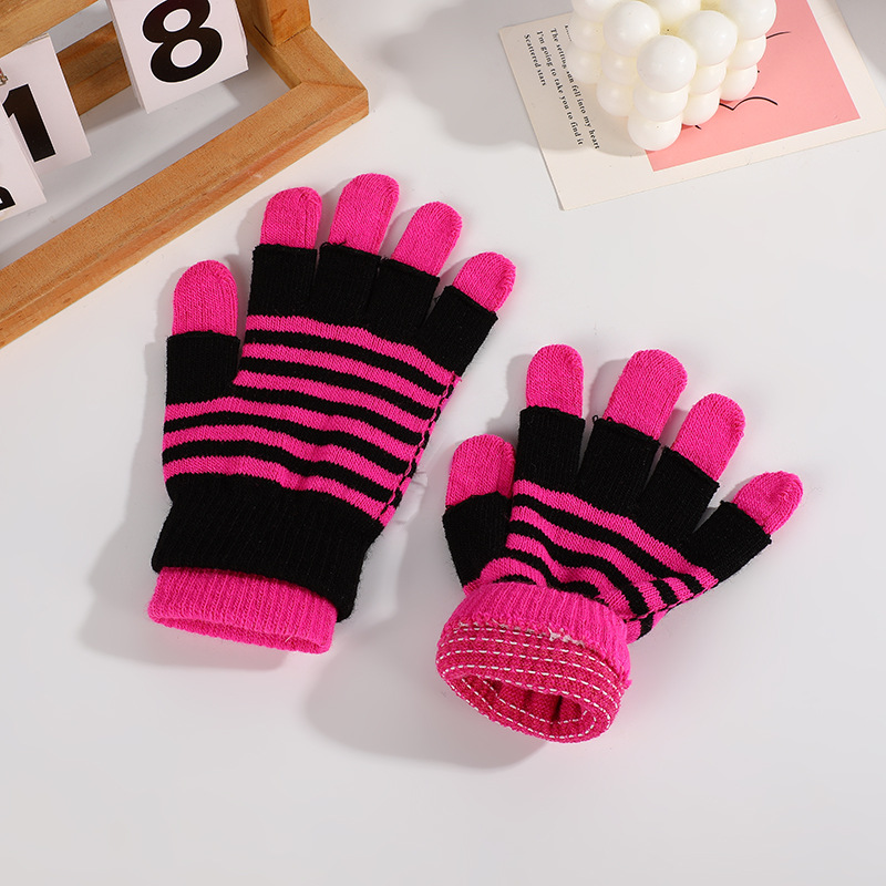 새로운 줄무늬 투피스 장갑 세트, 창의적인 이중 레이어 겨울용 보온 방한 남성용 모직 손가락 분리형 성인용 방풍 장갑스토어 가기