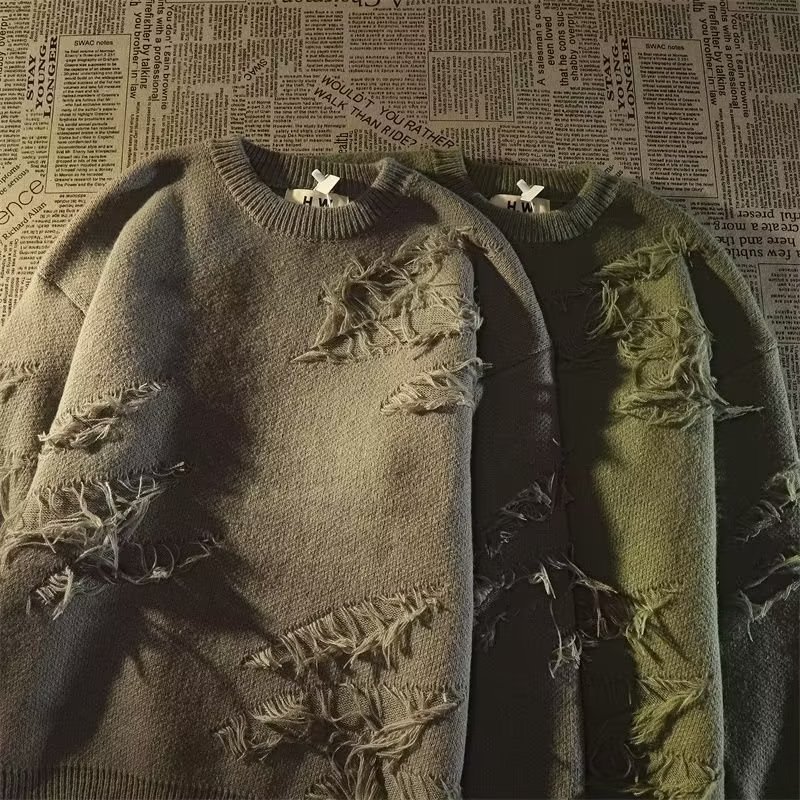 아메리칸 스타일 레트로 하이 스트리트 립 스웨터 남성과 여성의 가을과 겨울 게으른 스타일 고급 디자인 감각 틈새 니트웨어스토어 가기