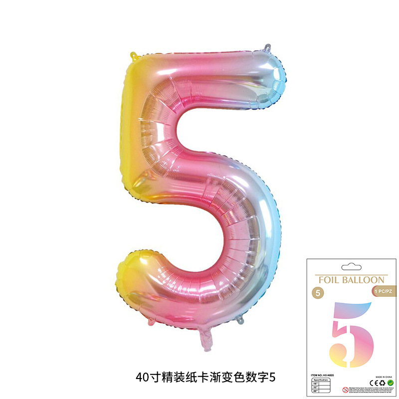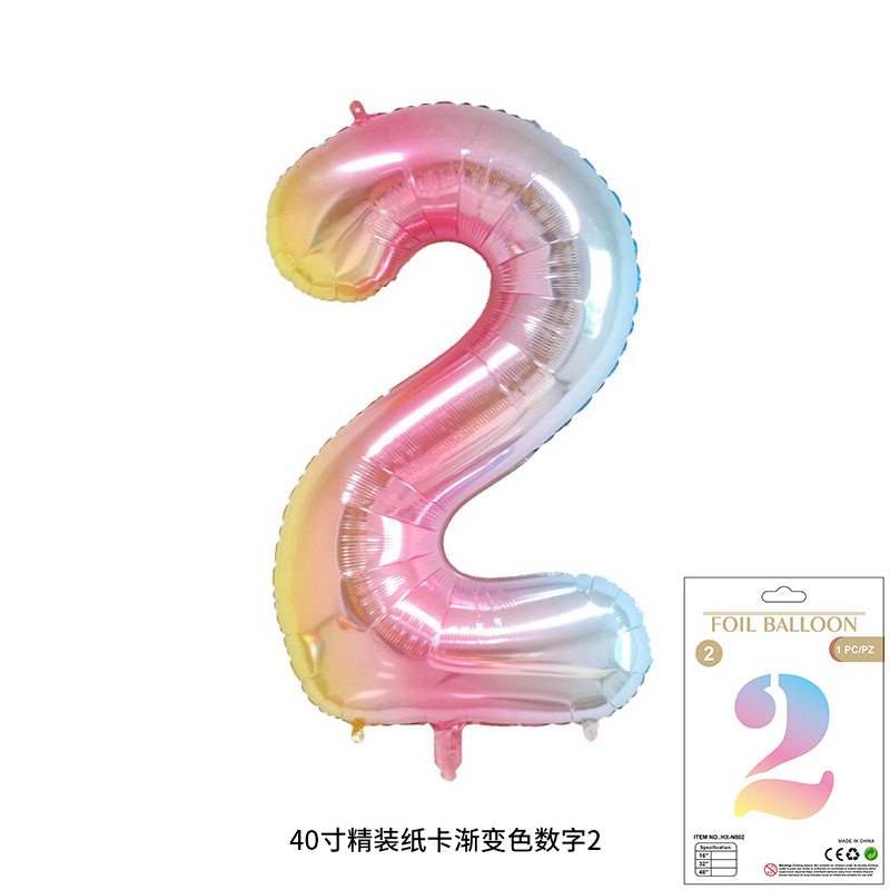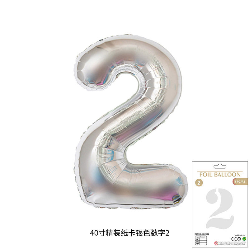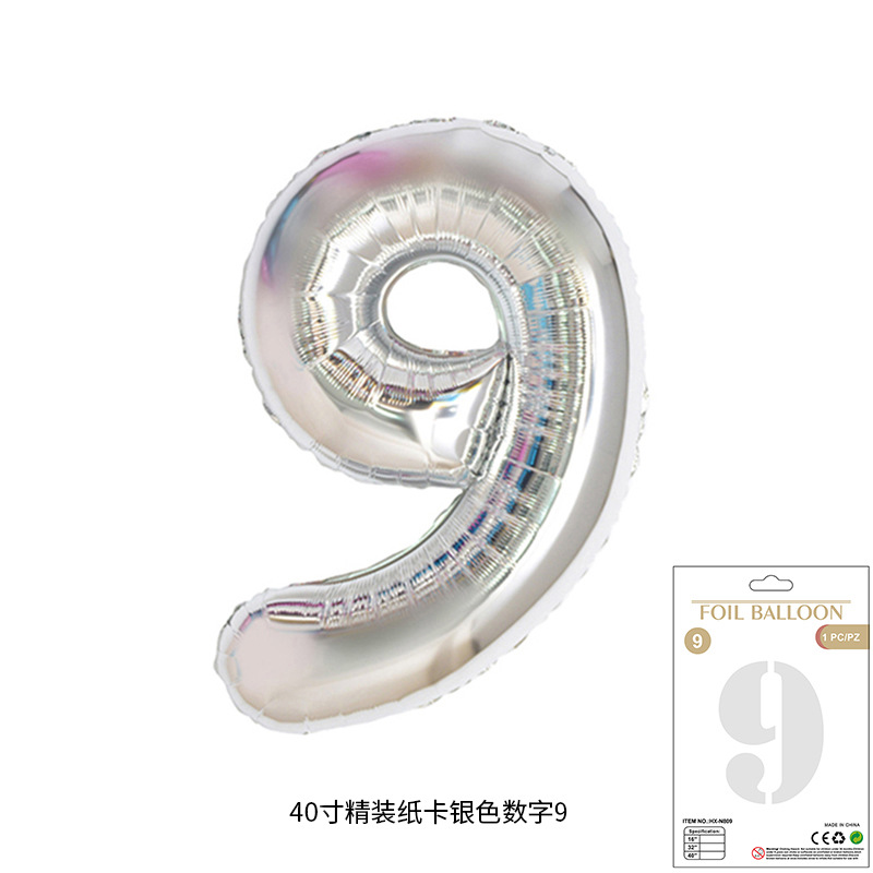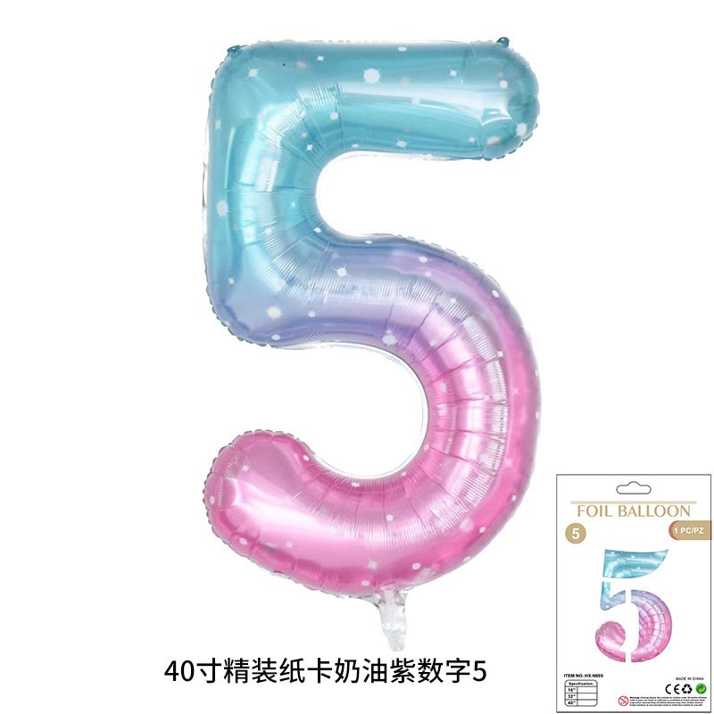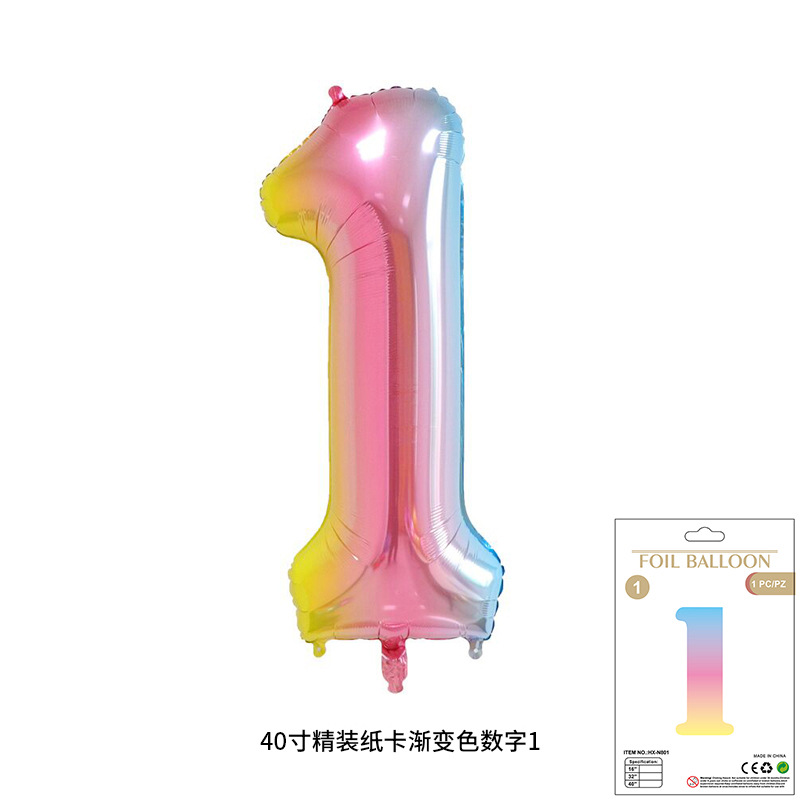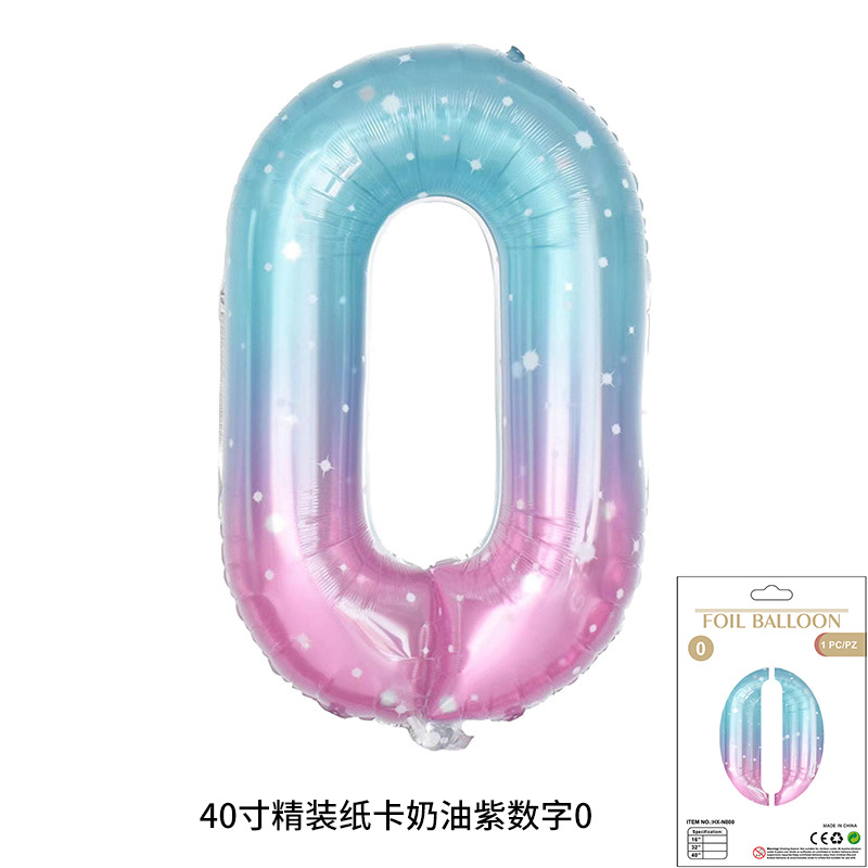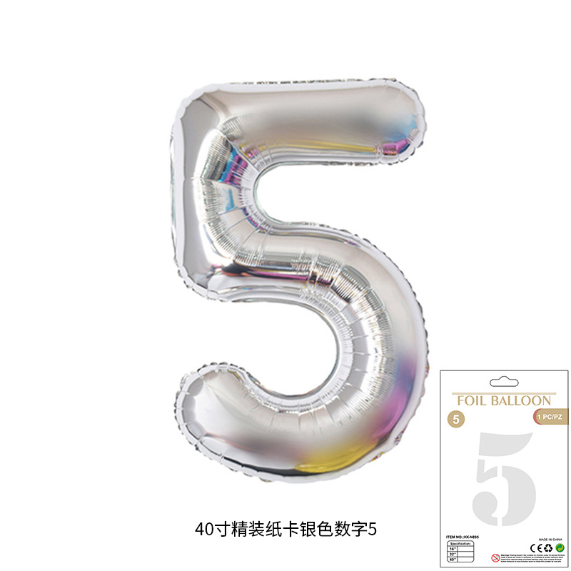 새로운 하드 커버 40 인치 미국 디지털 알루미늄 필름 풍선 골드와 실버 무지개 그라데이션 블루 파우더 크림 녹색 장식 도매