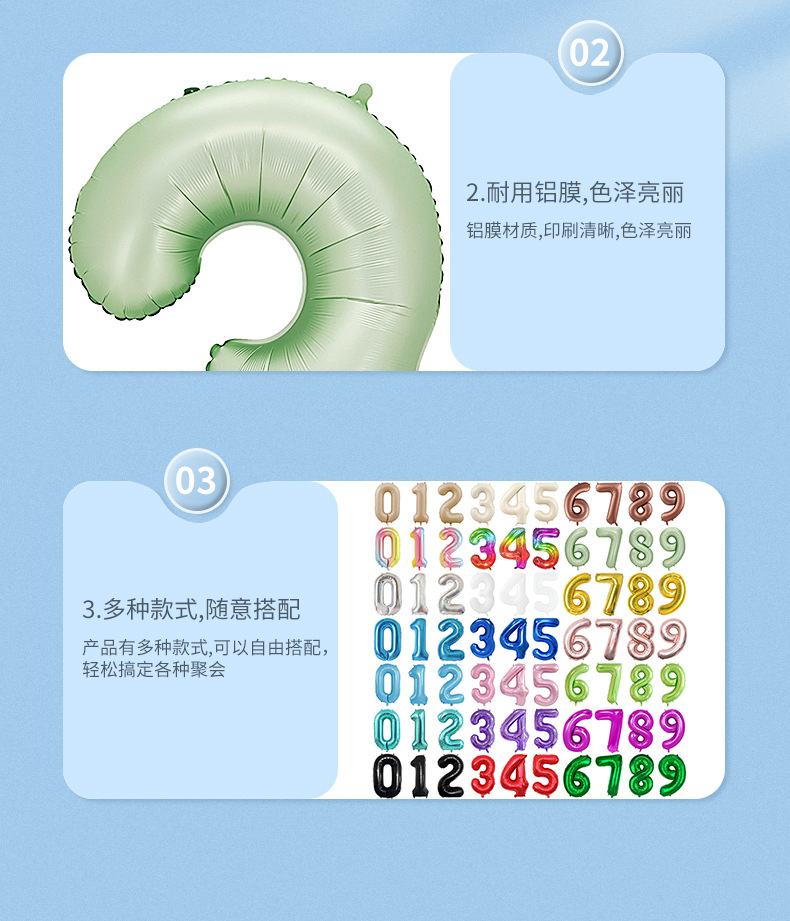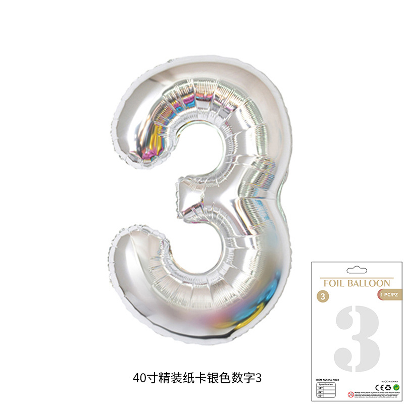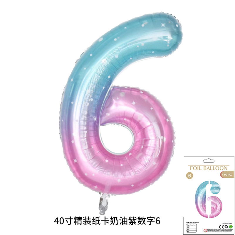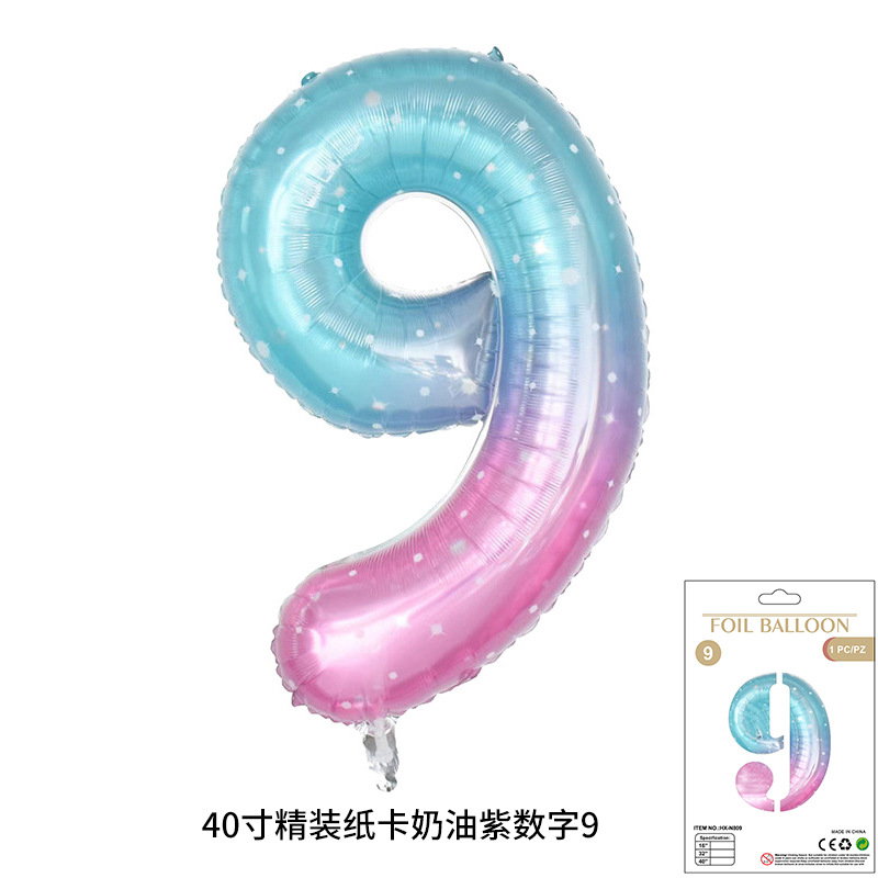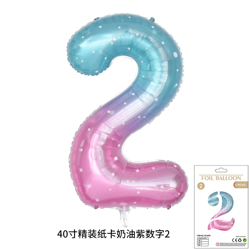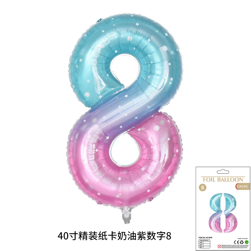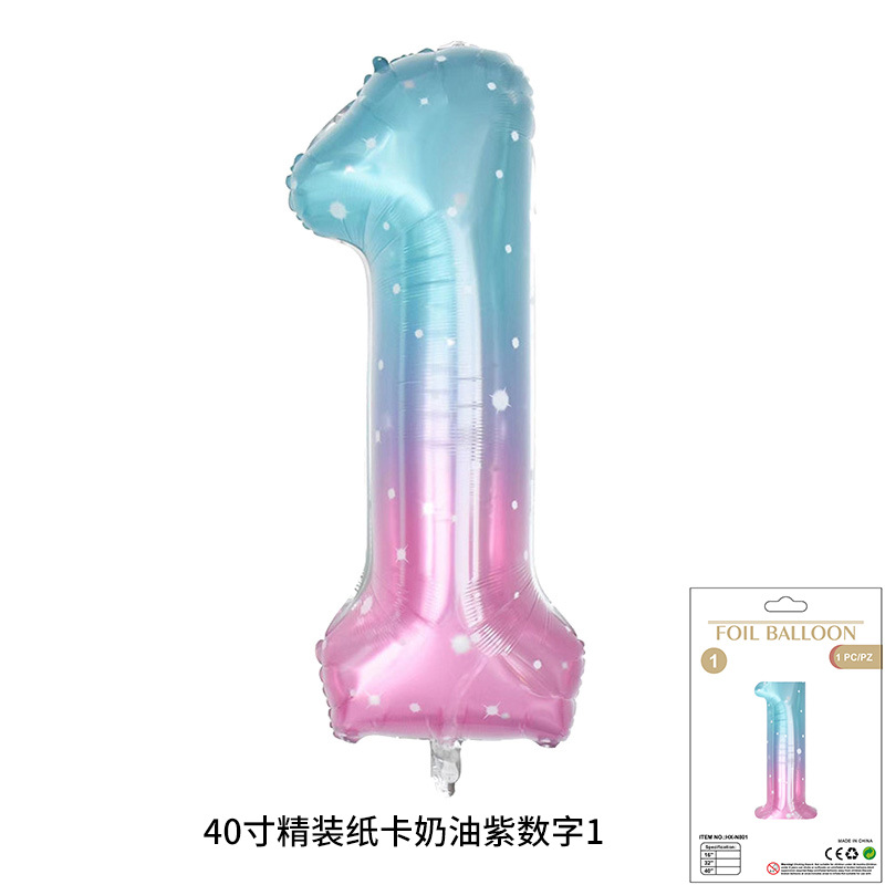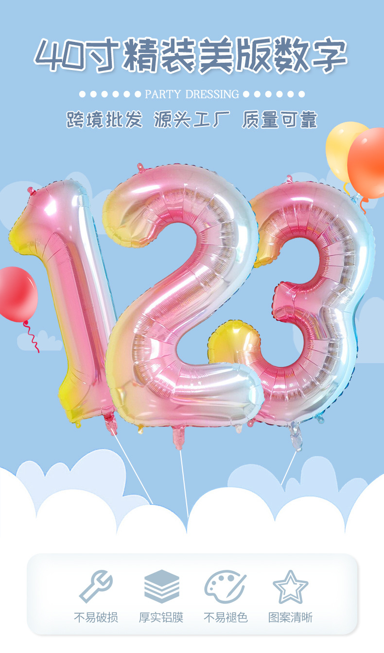 새로운 하드 커버 40 인치 미국 디지털 알루미늄 필름 풍선 골드와 실버 무지개 그라데이션 블루 파우더 크림 녹색 장식 도매