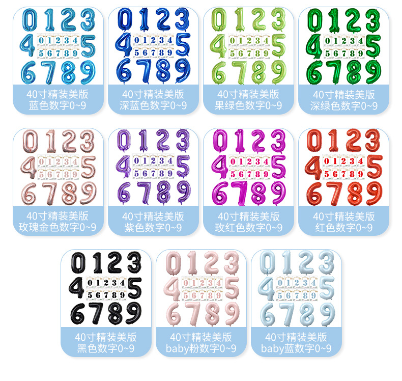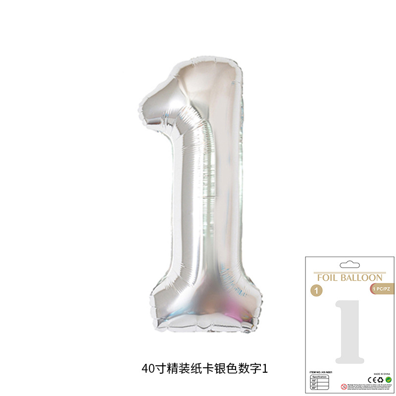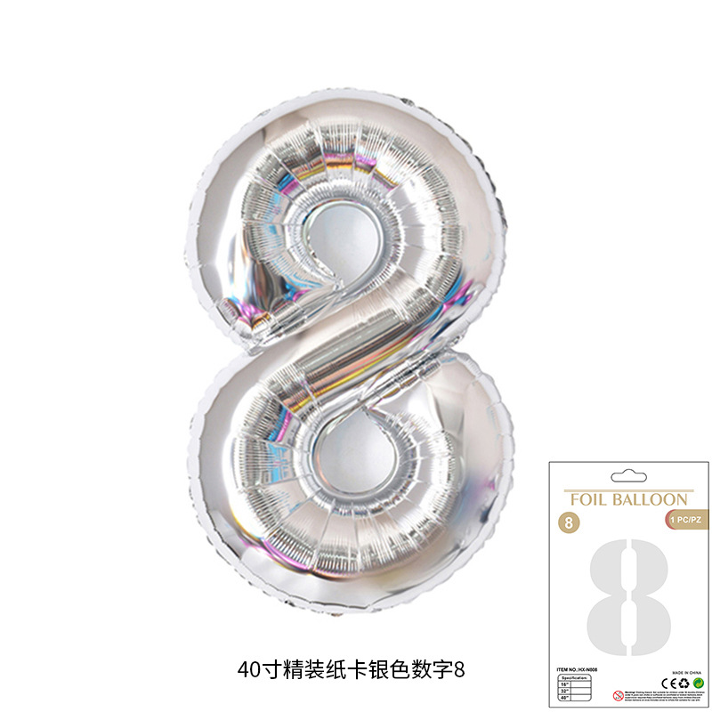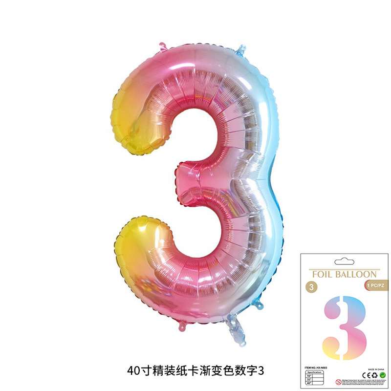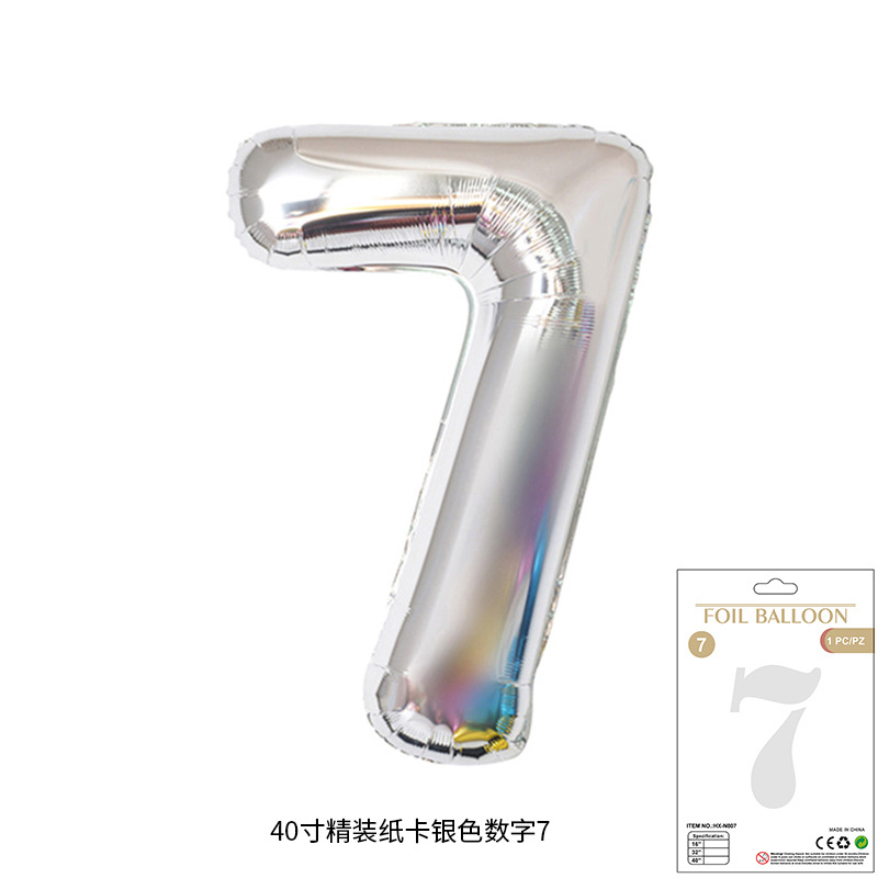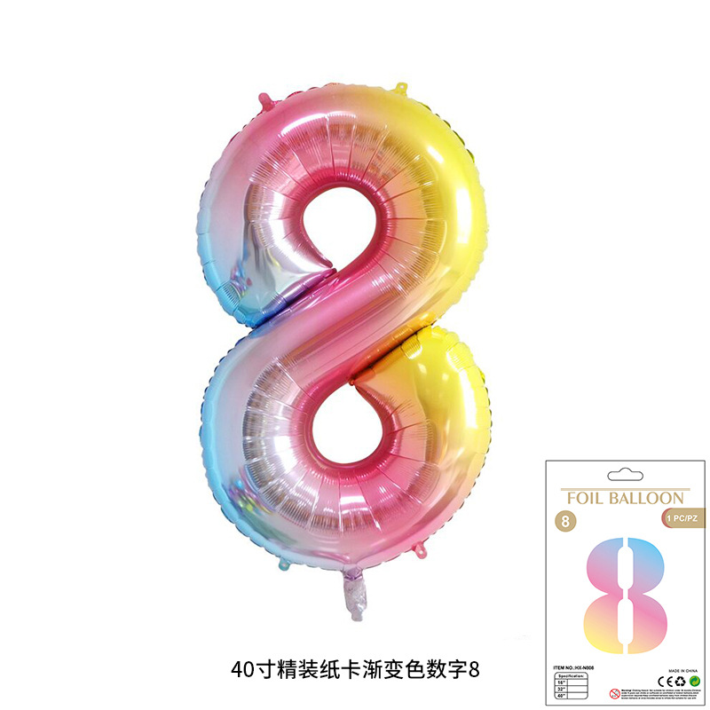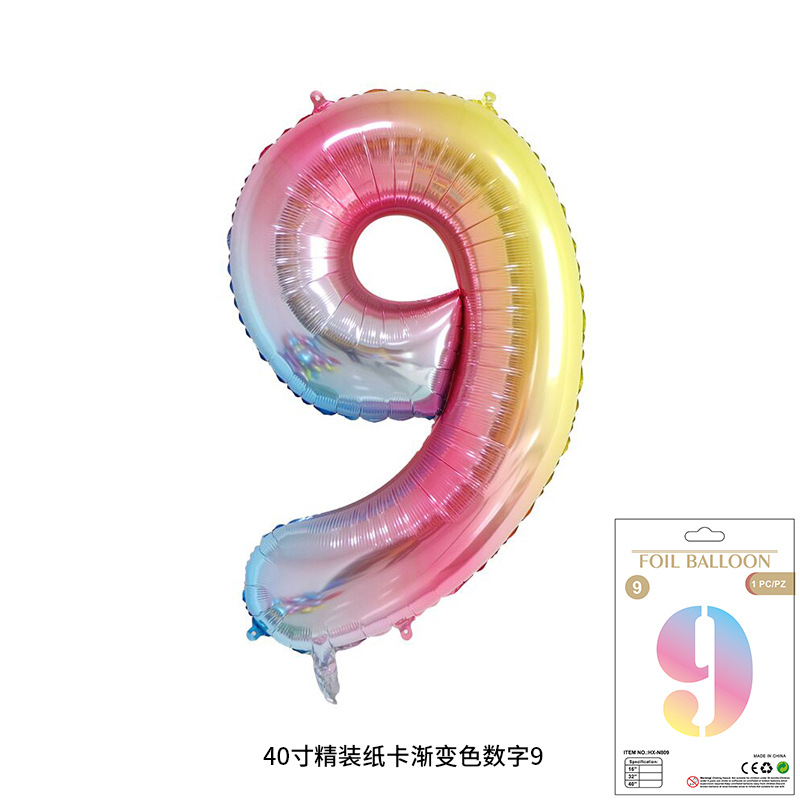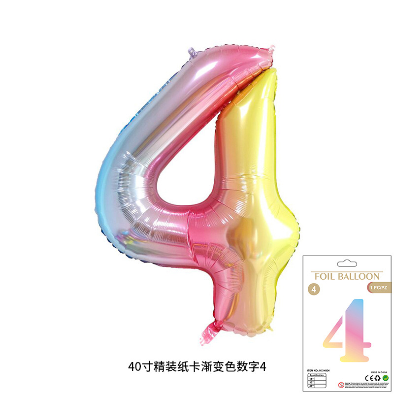 새로운 하드 커버 40 인치 미국 디지털 알루미늄 필름 풍선 골드와 실버 무지개 그라데이션 블루 파우더 크림 녹색 장식 도매스토어 가기