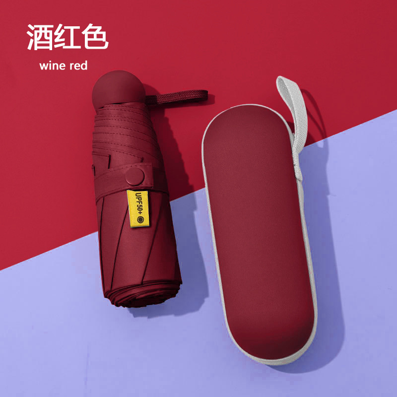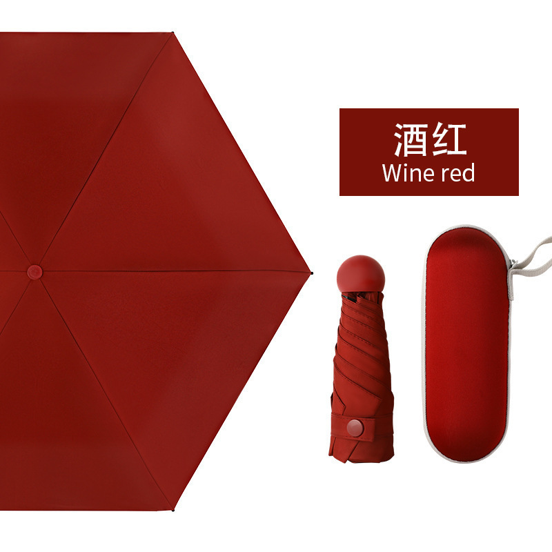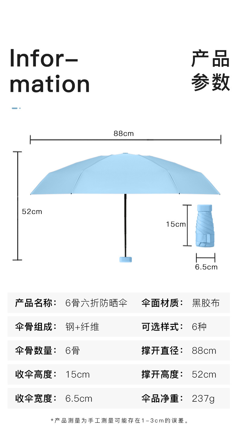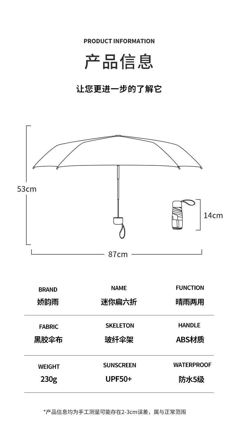 6 배 플랫 캡슐 태양 우산 여성용 블랙 고무 자외선 차단제 자외선 차단 차양 우산 맑고 비오는 이중 목적 미니 초경량 우산