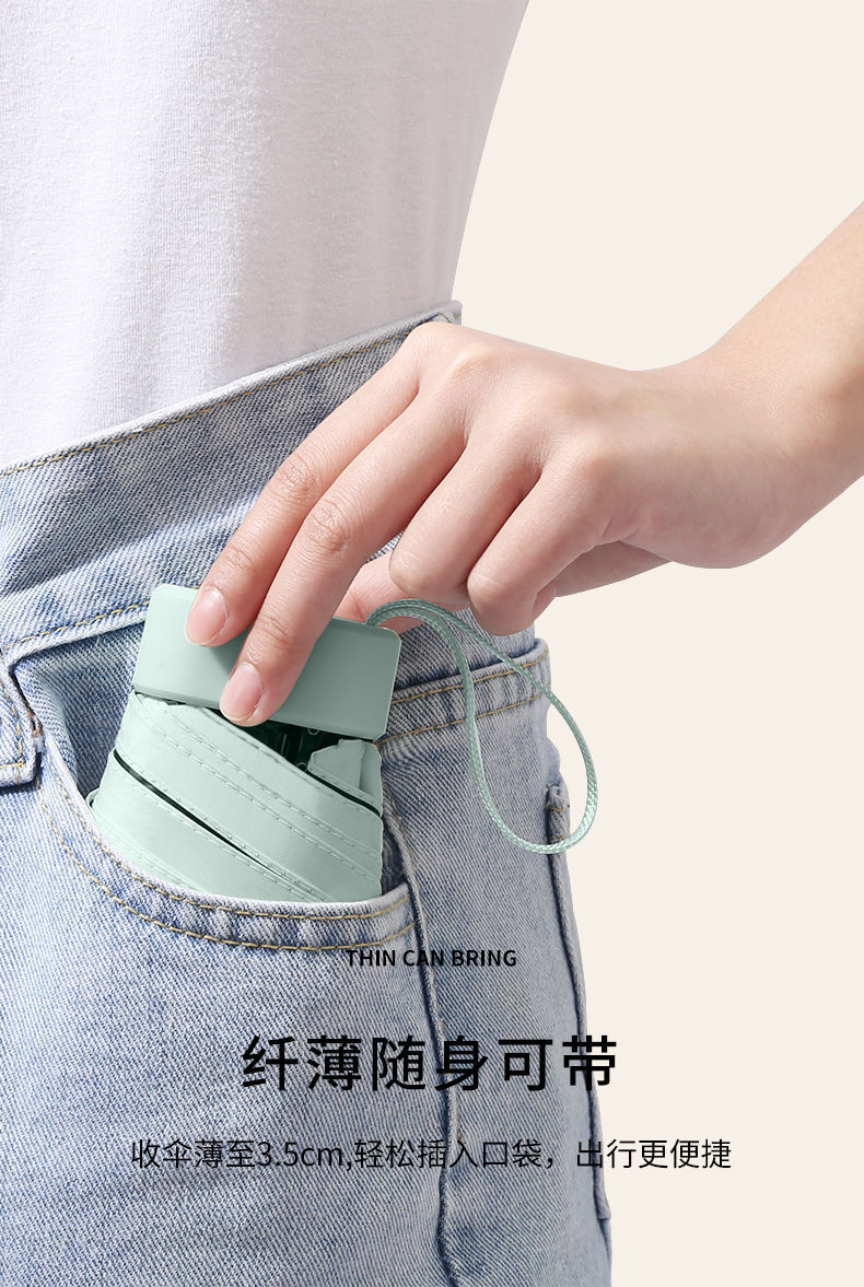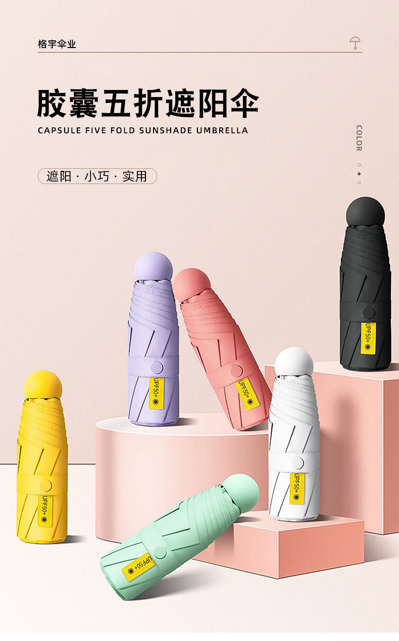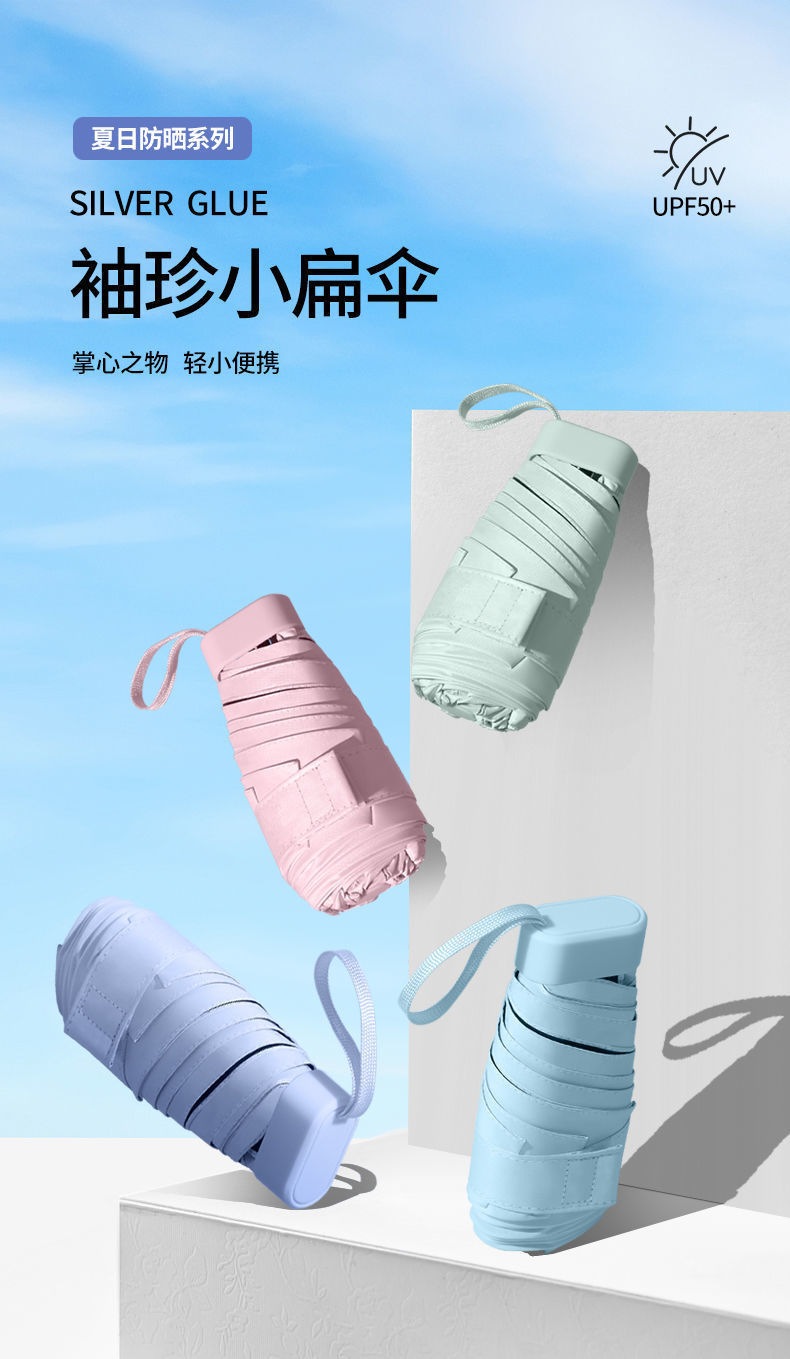6 배 플랫 캡슐 태양 우산 여성용 블랙 고무 자외선 차단제 자외선 차단 차양 우산 맑고 비오는 이중 목적 미니 초경량 우산스토어 가기