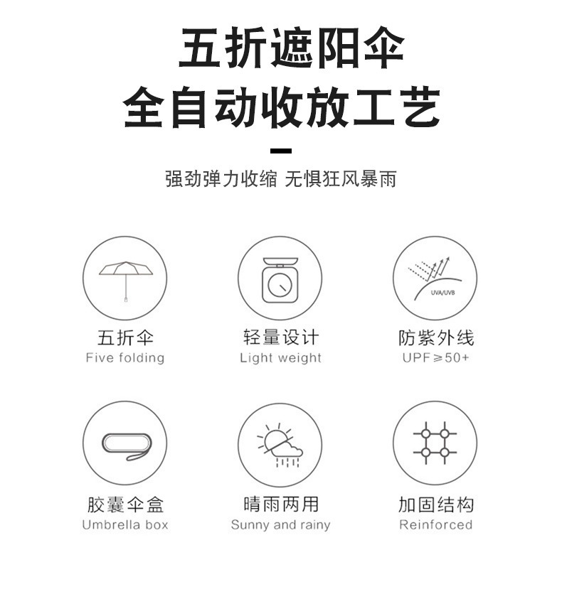 • 지퍼 백 Sycamore 쌀과 8 뼈 다섯 접는 라운드 우산