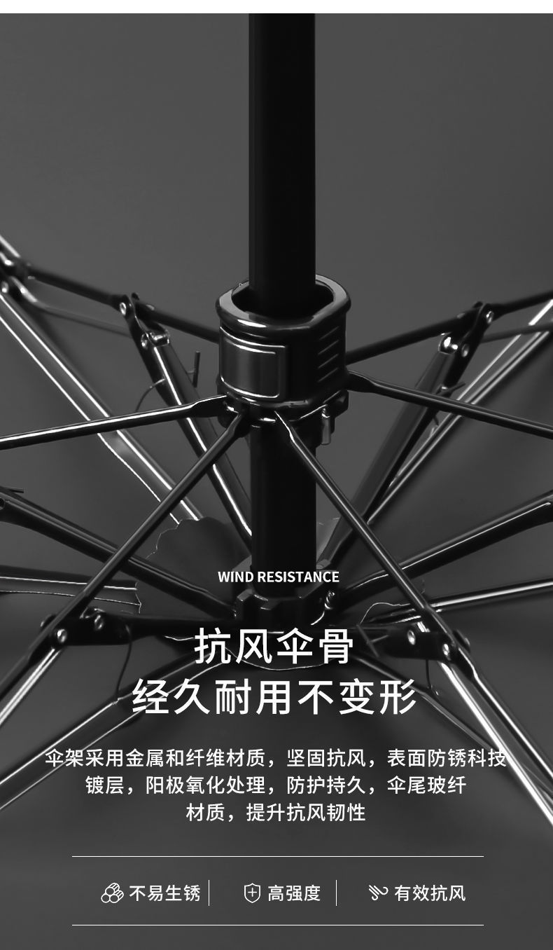 • 지퍼 백이있는 8 뼈 5 배 원형 우산 흑요석 블랙