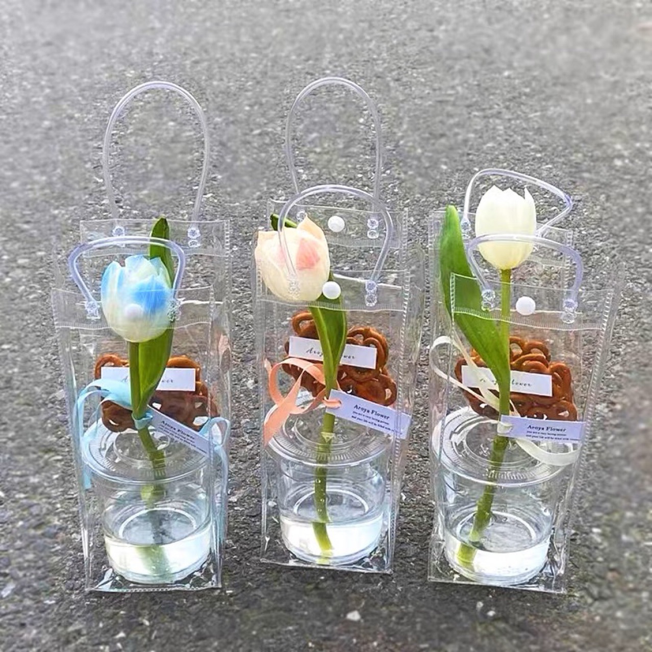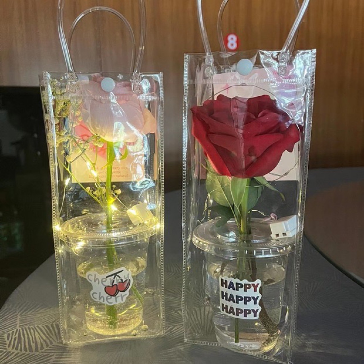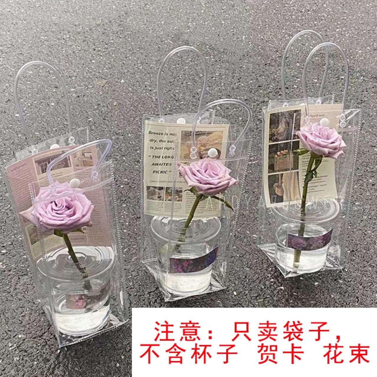 PVC 투명 핸드백 520 발렌타인데이 인기 길거리 노점 컵 꽃 가방 핸드백 스타일 선물 포장 가방