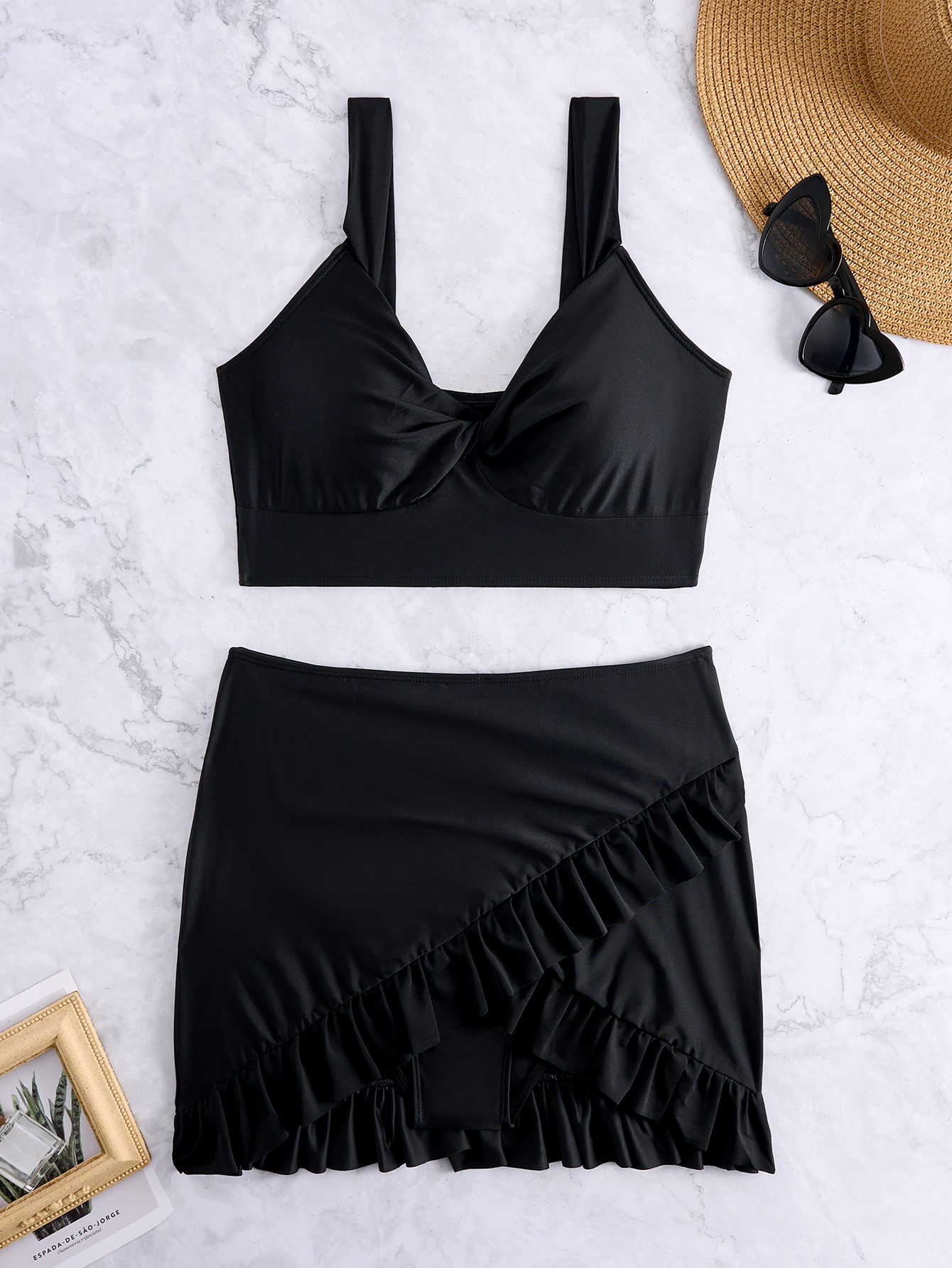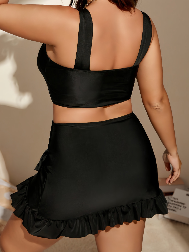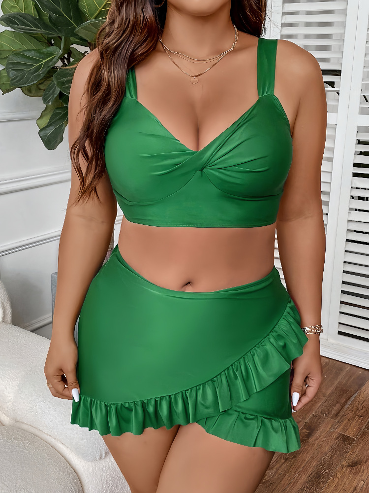 Amazon 유럽과 미국의 새로운 플러스 사이즈 수영복 여성 스플릿 비키니 프릴 플리츠 하이 웨이스트 스플릿 수영복