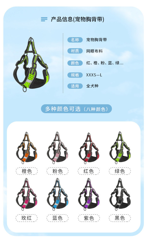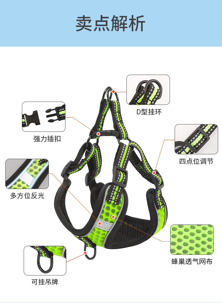 크로스-국경 새로운 애완 동물 제품 가슴 스트랩 개 빛 가슴 통기성 스트랩 개 스트랩 견인 로프 재고 도매