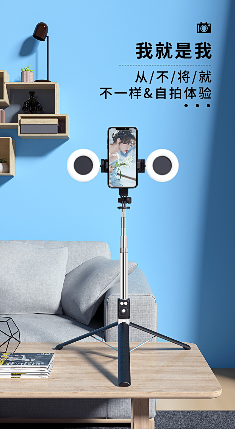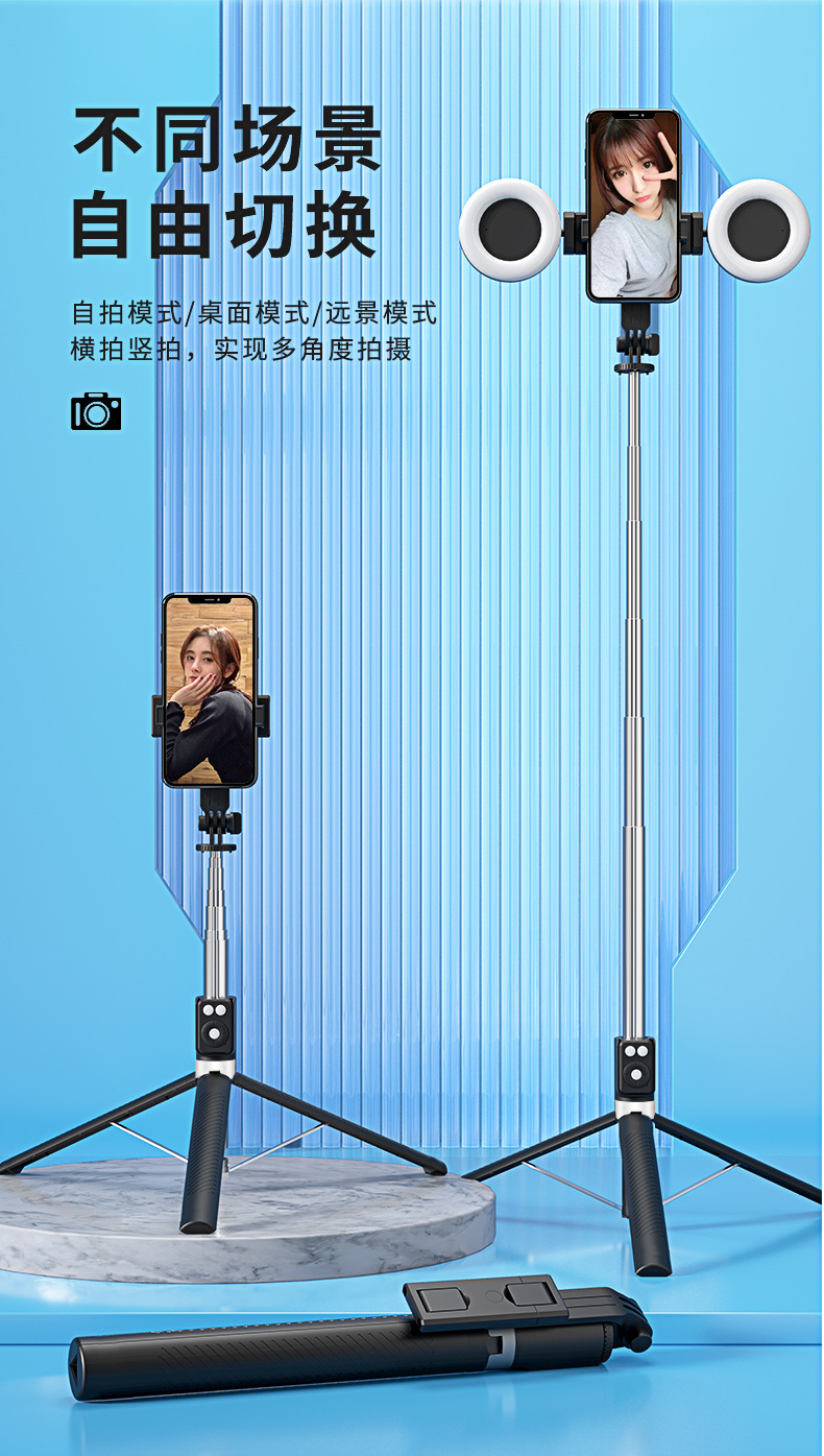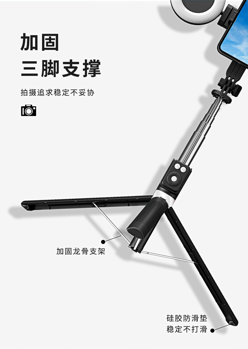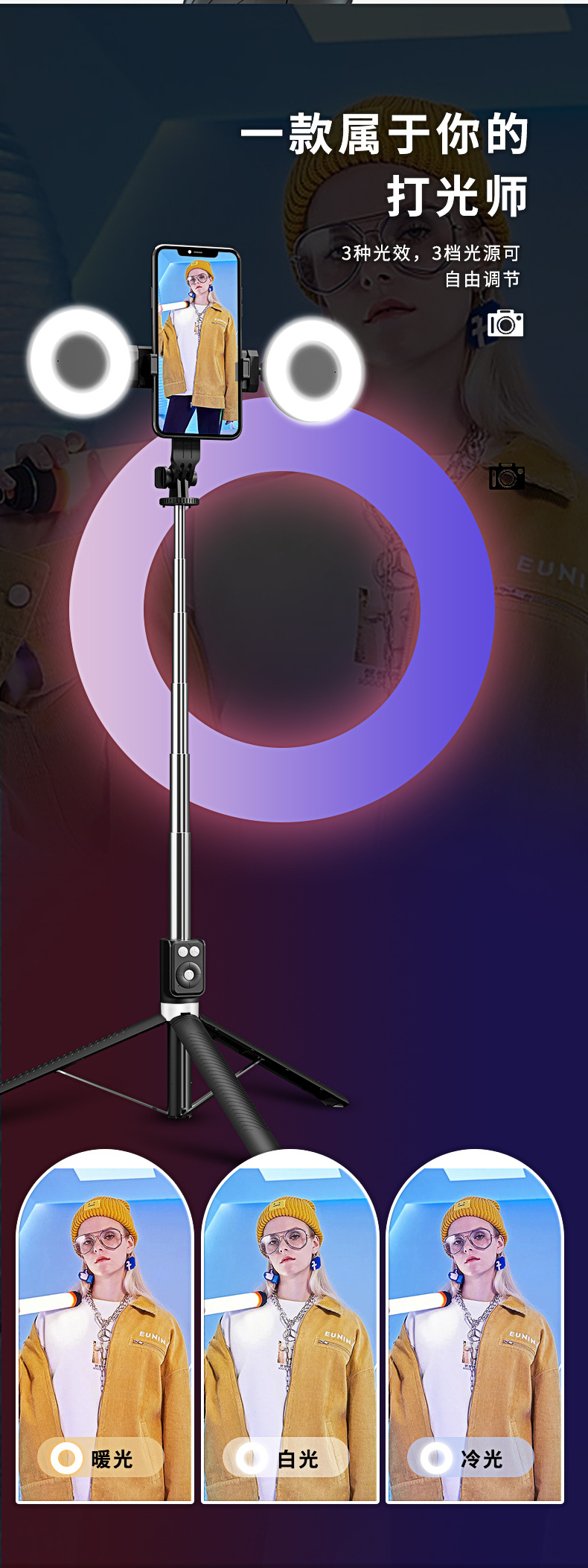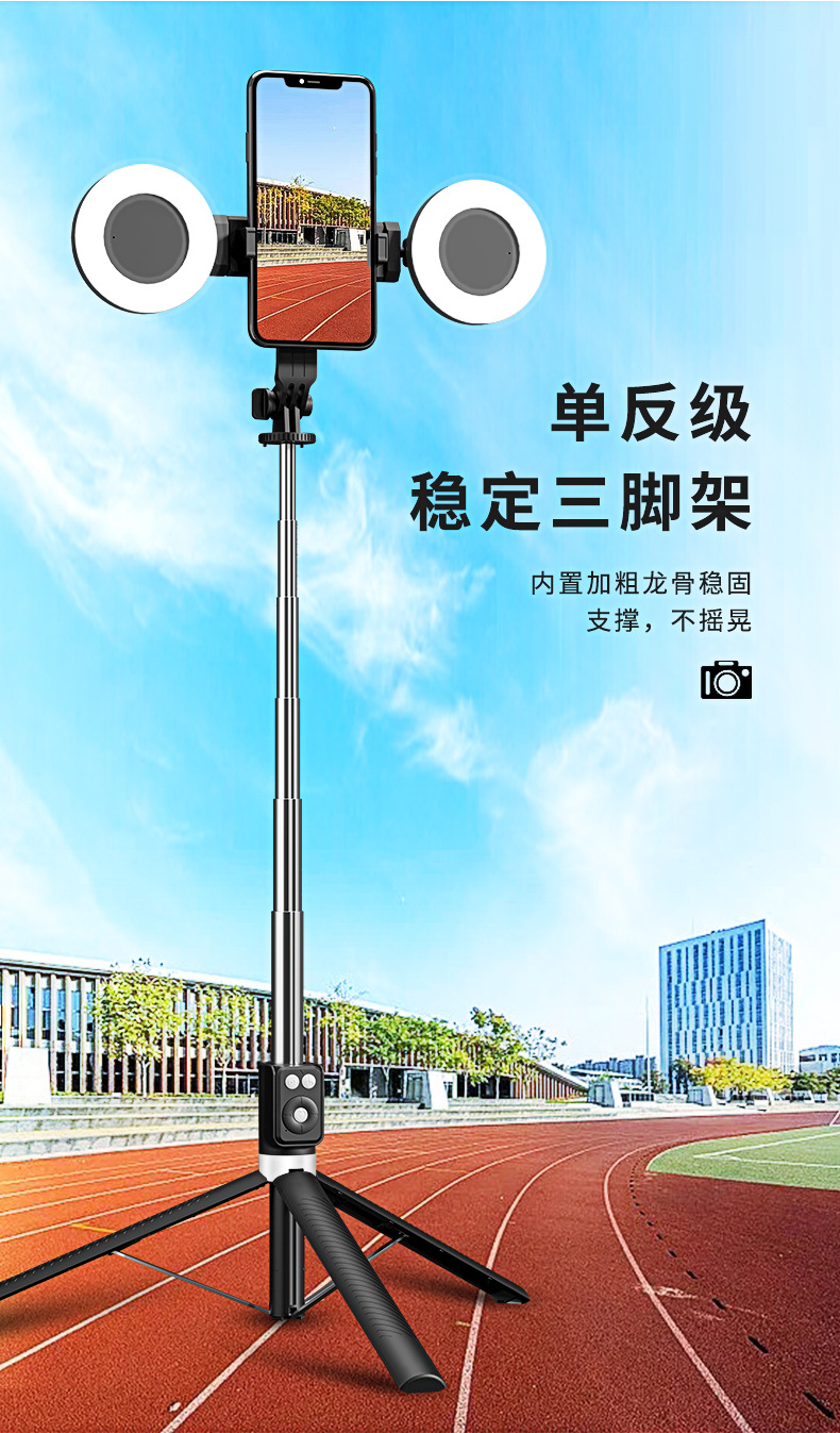 핫 BT12 트레몰로 셀카 스틱 휴대 전화 라이브 블루투스 삼각대 필 라이트 공장 직매와 통합스토어 가기