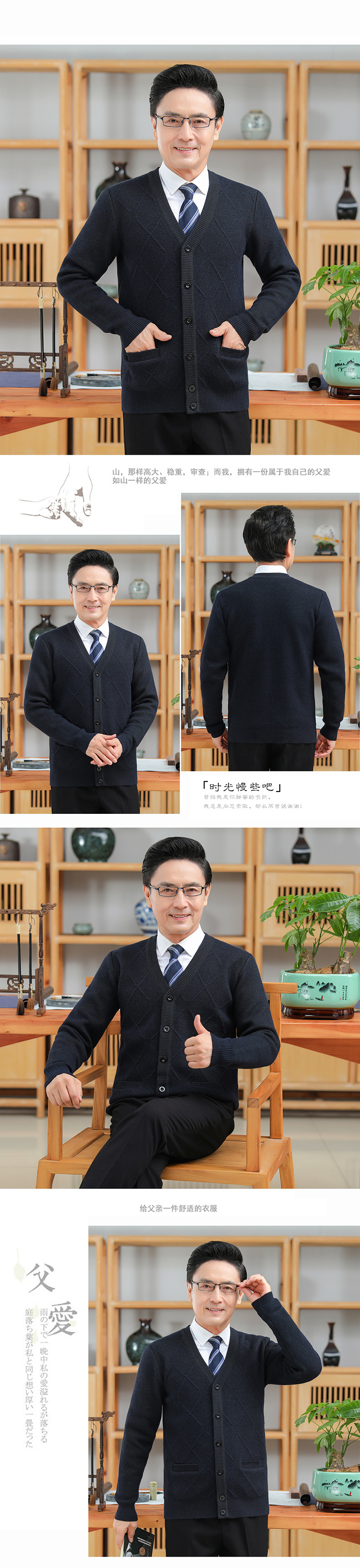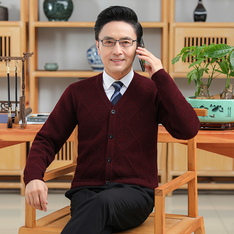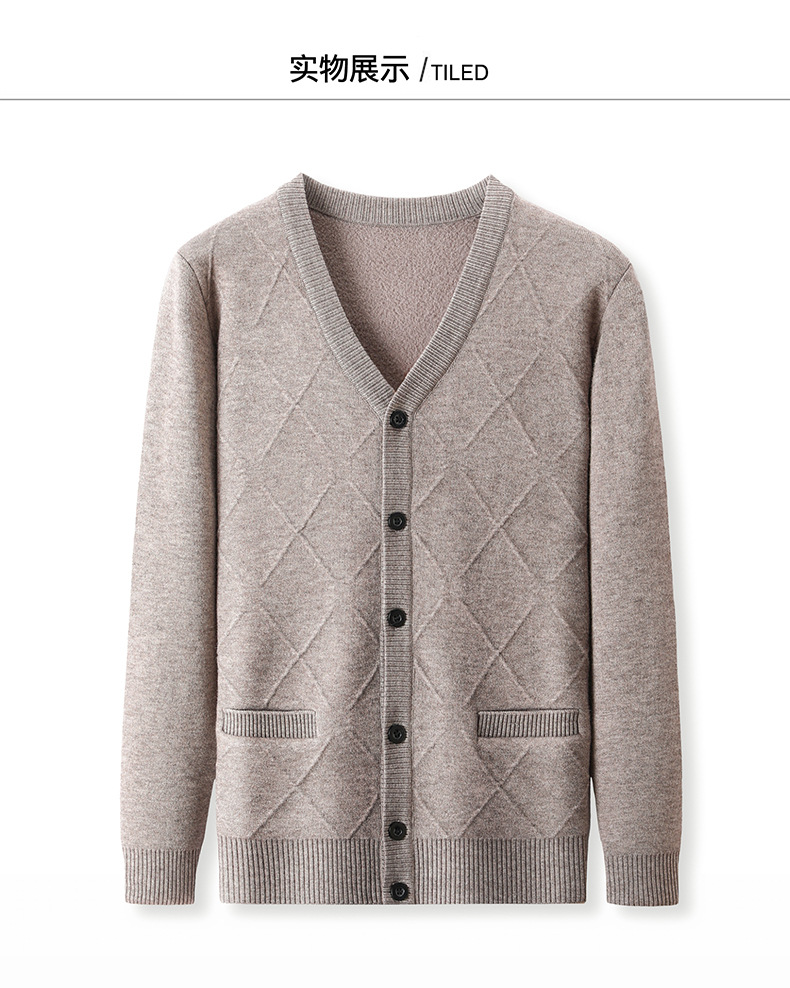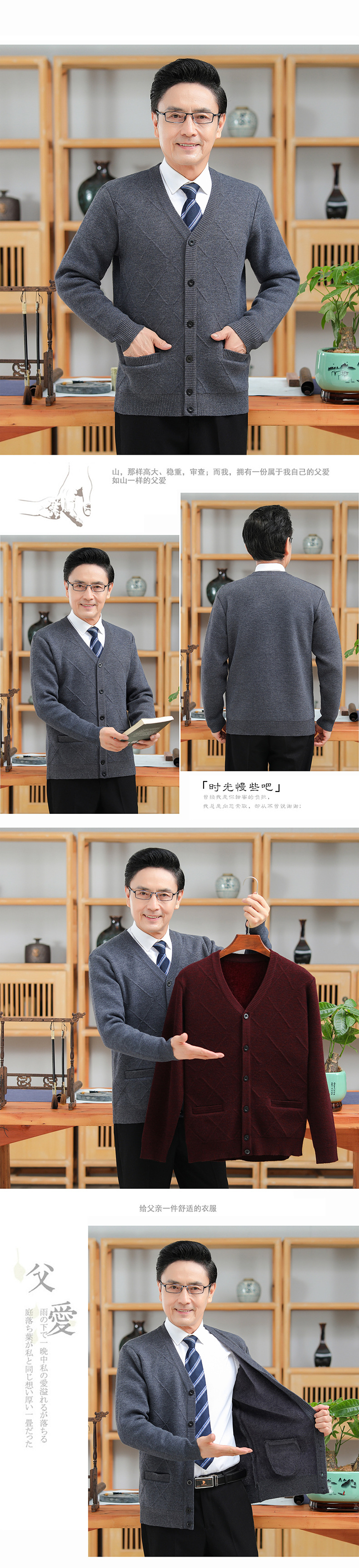 가을 겨울 중년 남성 따뜻한 벨벳 두꺼운 코트 아빠의 모직 스웨터 긴팔 솔리드 컬러 자카드 벨벳 가디건스토어 가기