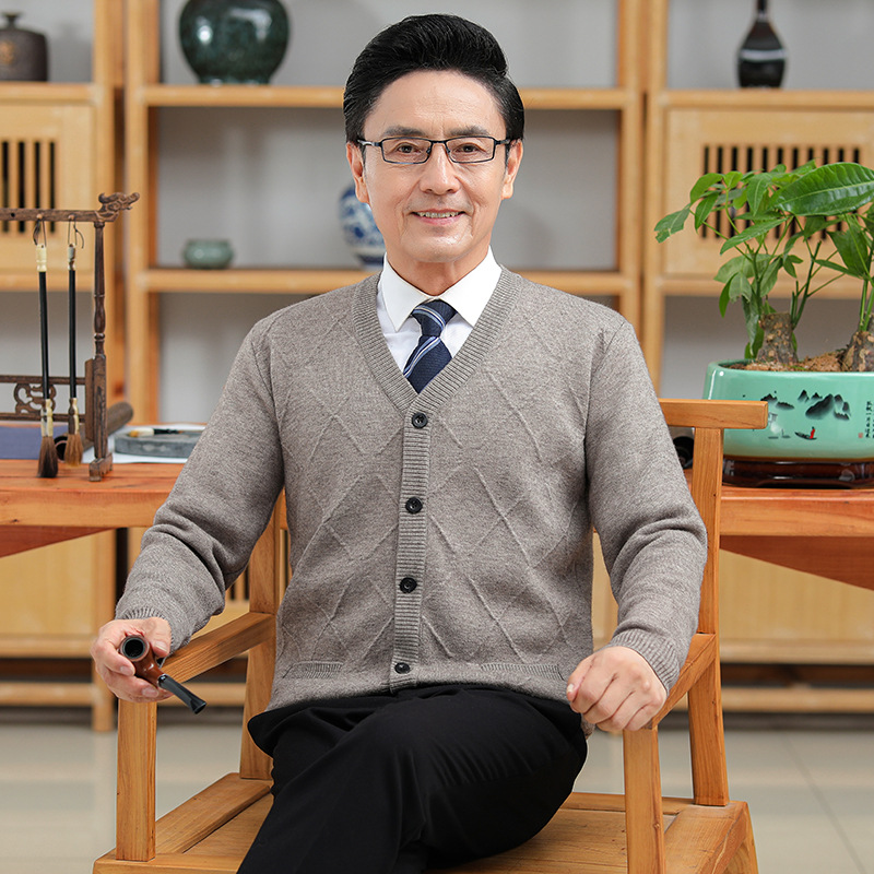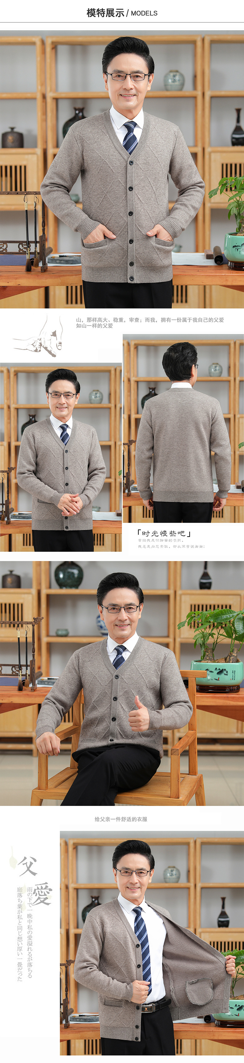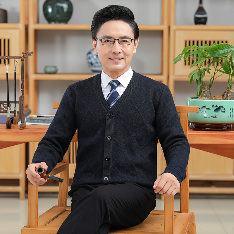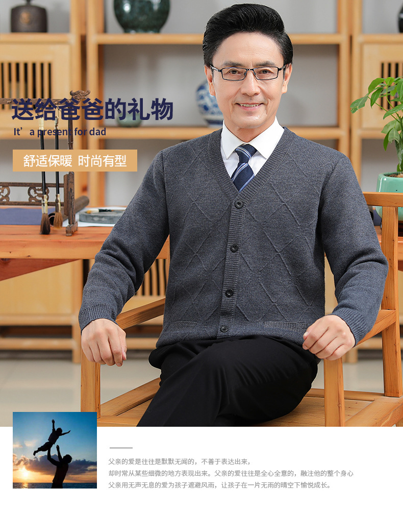 가을 겨울 중년 남성 따뜻한 벨벳 두꺼운 코트 아빠의 모직 스웨터 긴팔 솔리드 컬러 자카드 벨벳 가디건스토어 가기