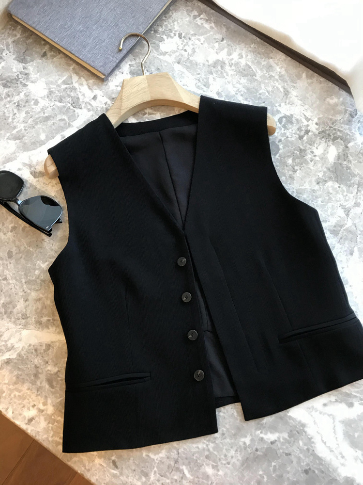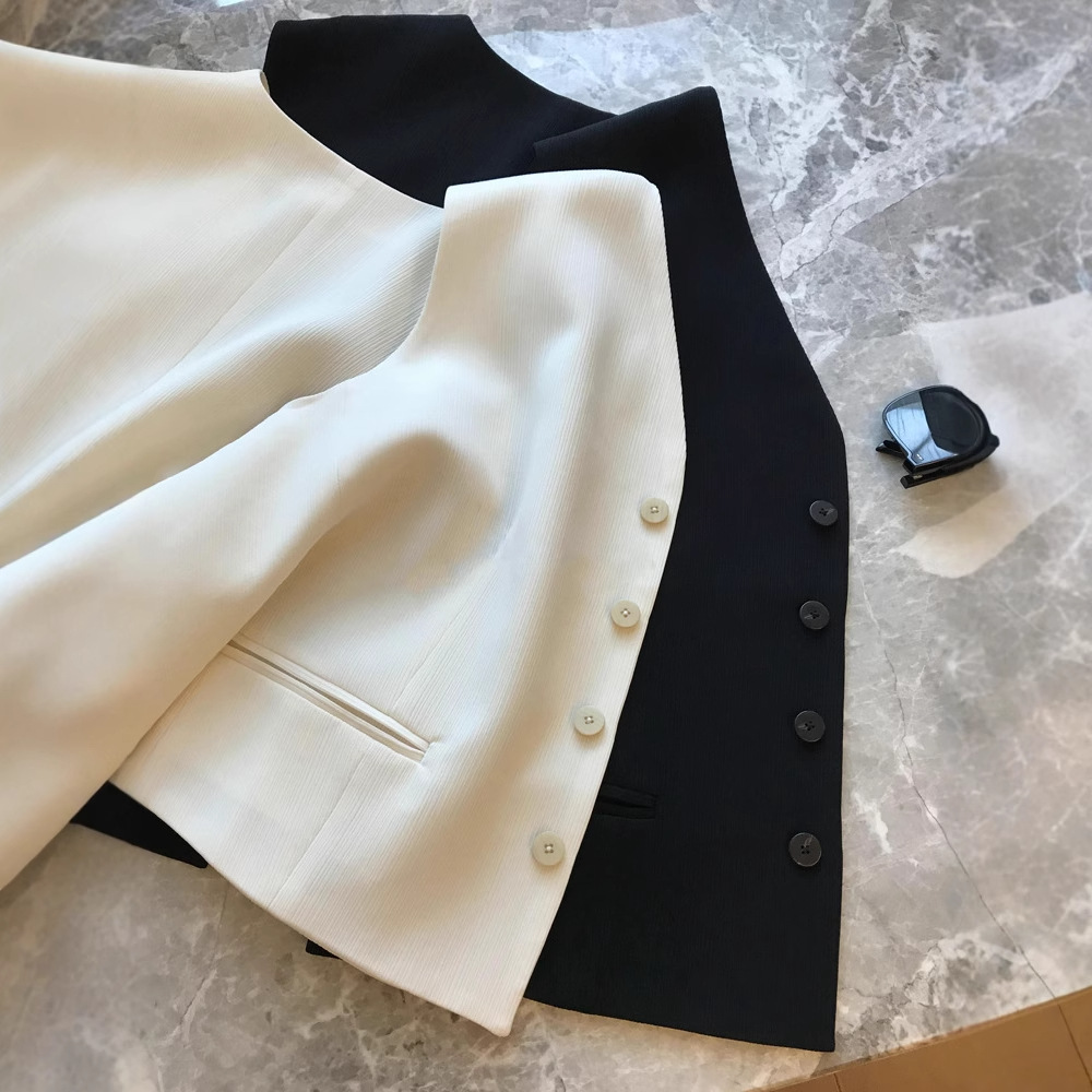 슈퍼 질감, 추천 품질! 프랑스 스타일 최소화 스타일 3 차원 질감 민소매 세트 조끼 여성 자켓스토어 가기