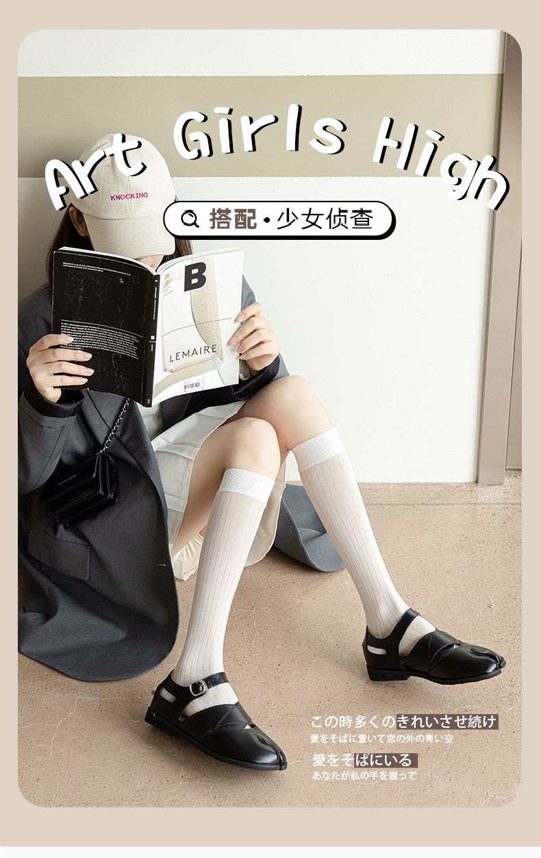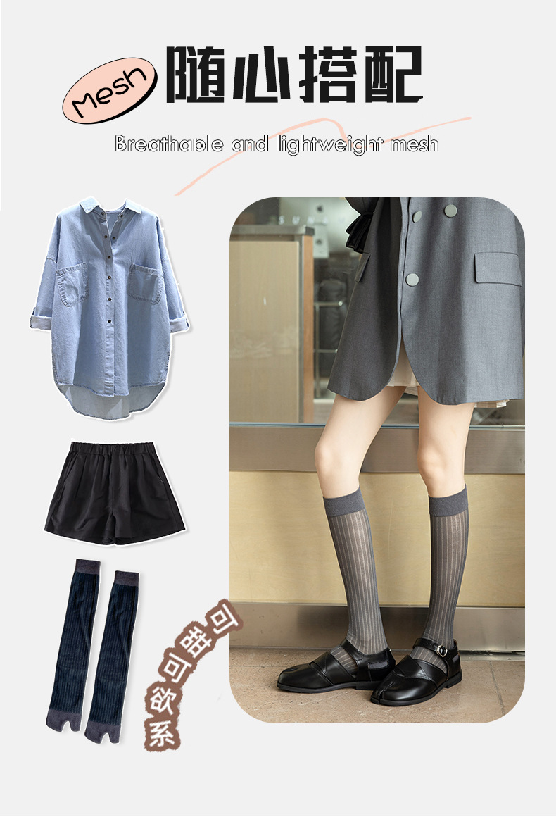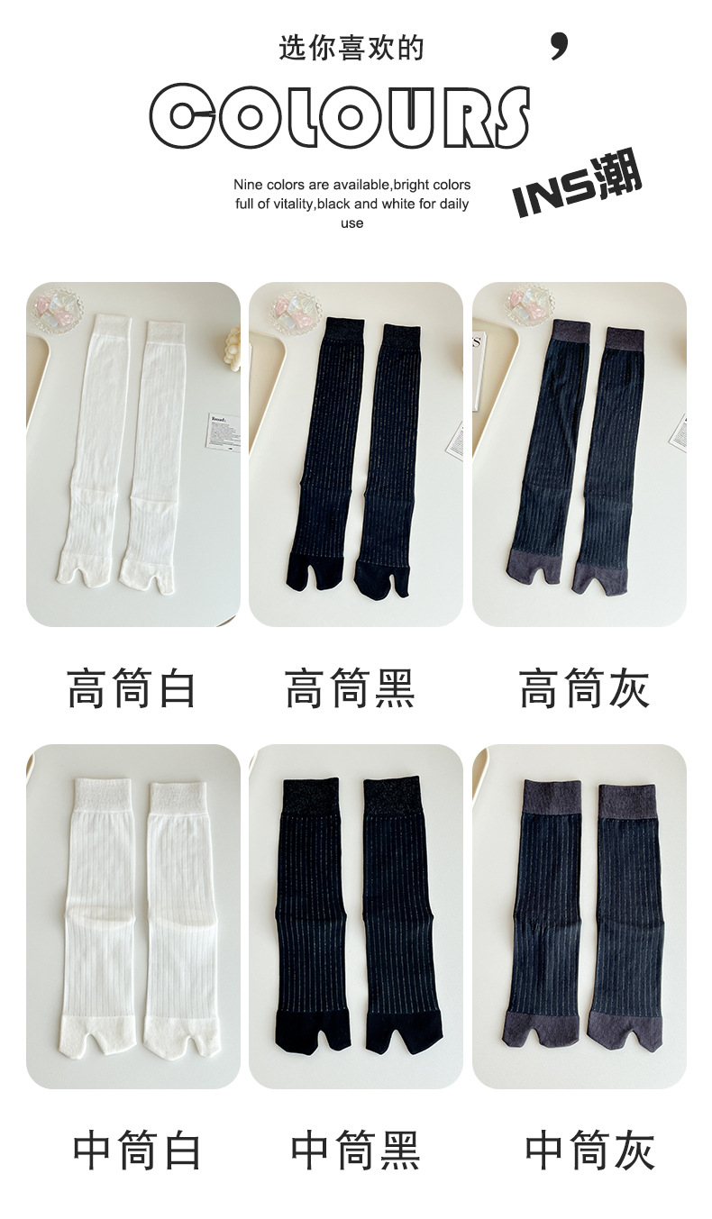 봄과 여름 단색 얇은 서브 핑거 미드 튜브 말뚝 양말 두 발가락 돼지 코 신발 무릎 길이 송아지 피트 스타킹스토어 가기