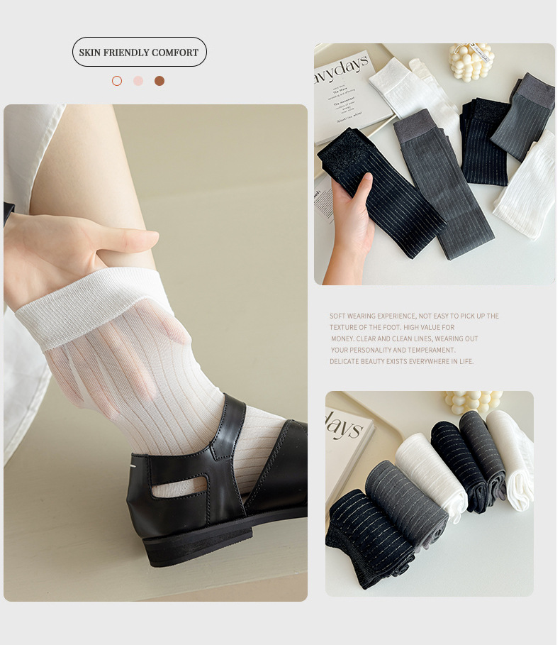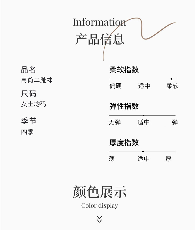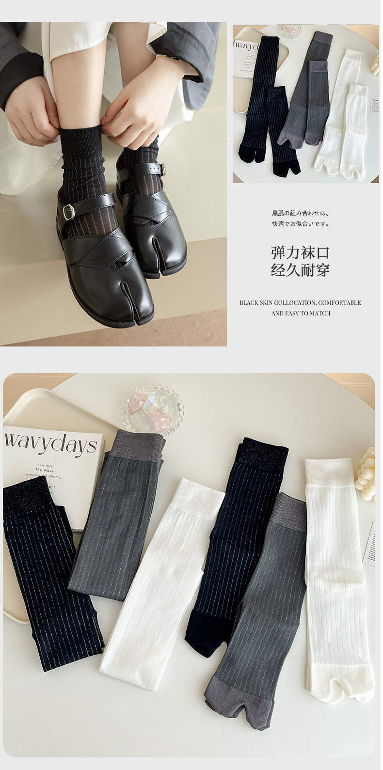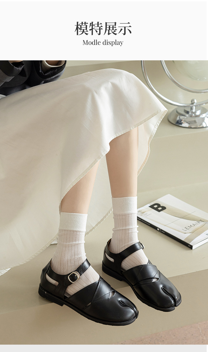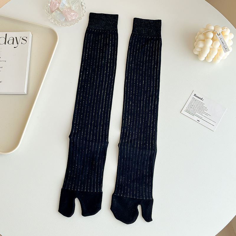봄과 여름 단색 얇은 서브 핑거 미드 튜브 말뚝 양말 두 발가락 돼지 코 신발 무릎 길이 송아지 피트 스타킹