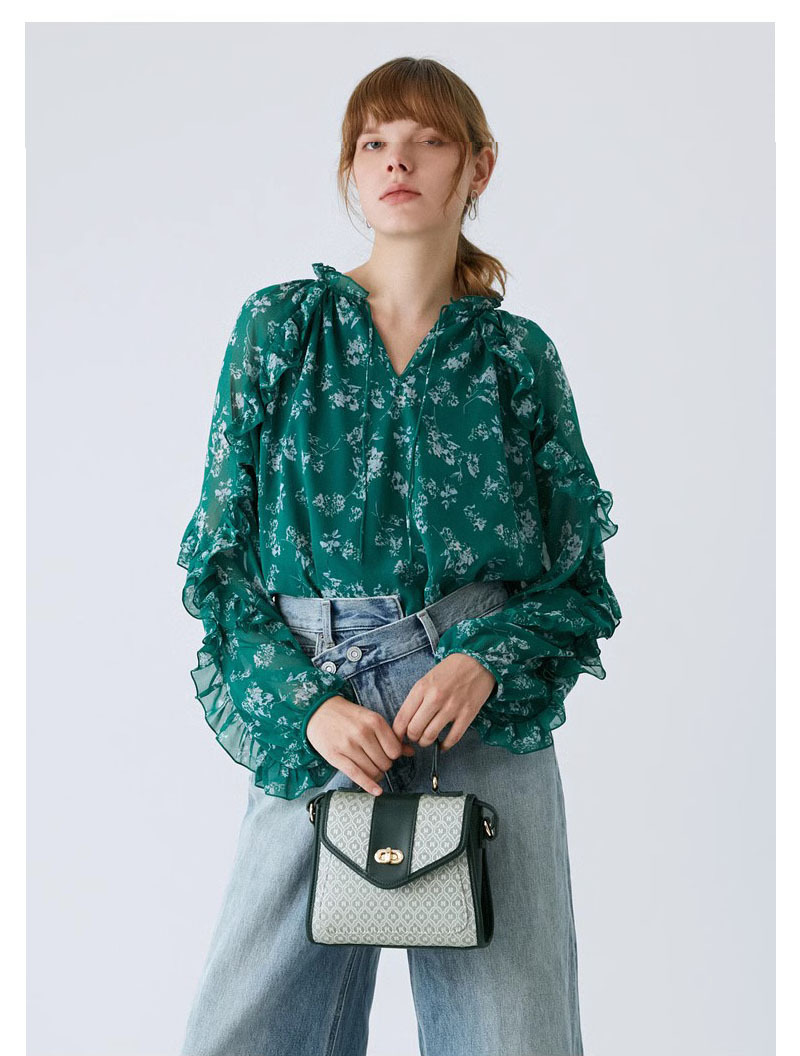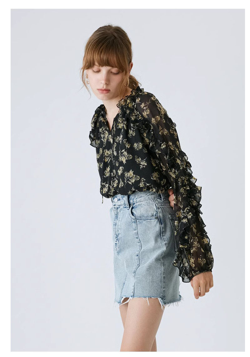 2023秋季新款度假风碎花休闲田园感花边衬衫028GAH30-6130