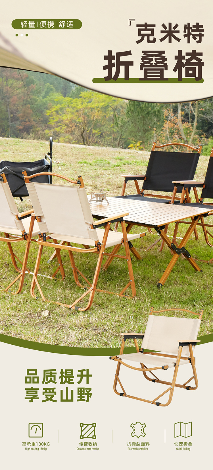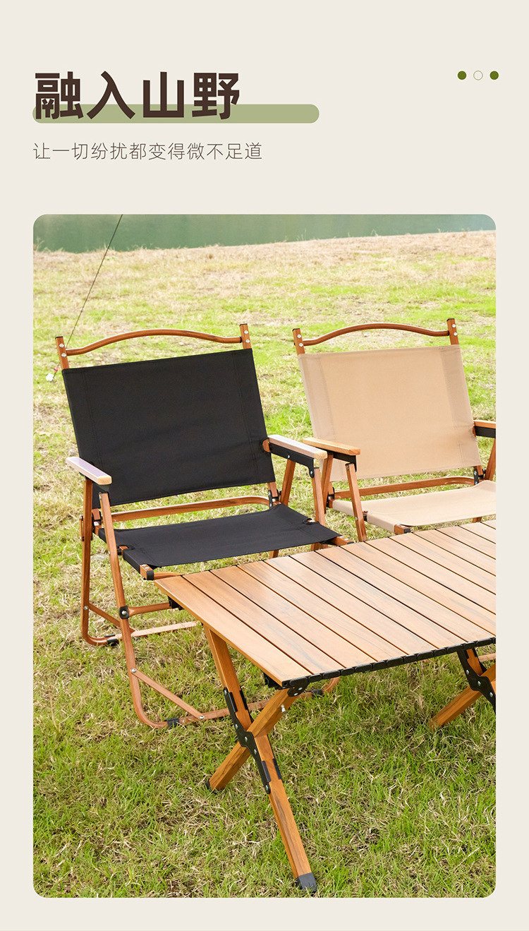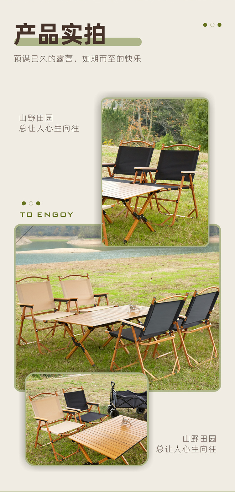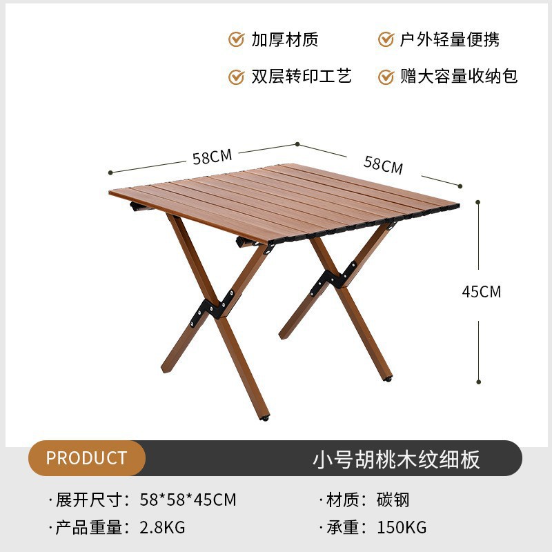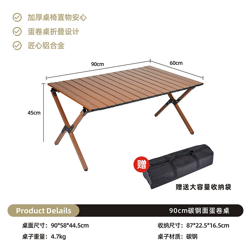 야외 접이식 계란 롤 테이블과 의자 휴대용 알루미늄 합금 초경량 피크닉 바베큐 캠핑 우드 그레인 커밋트 의자 도매스토어 가기
