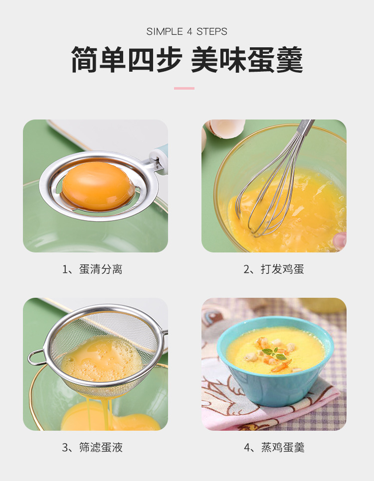 주방 도구 304 스테인리스 계란 거품기 수동 아기 이유식 혼합 필터망 계란 흰자 분리기스토어 가기