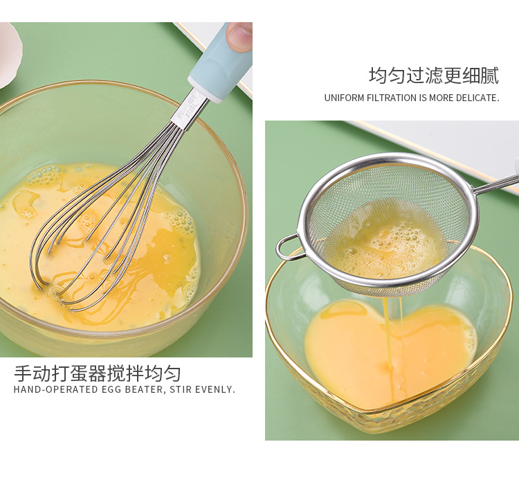 주방 도구 304 스테인리스 계란 거품기 수동 아기 이유식 혼합 필터망 계란 흰자 분리기