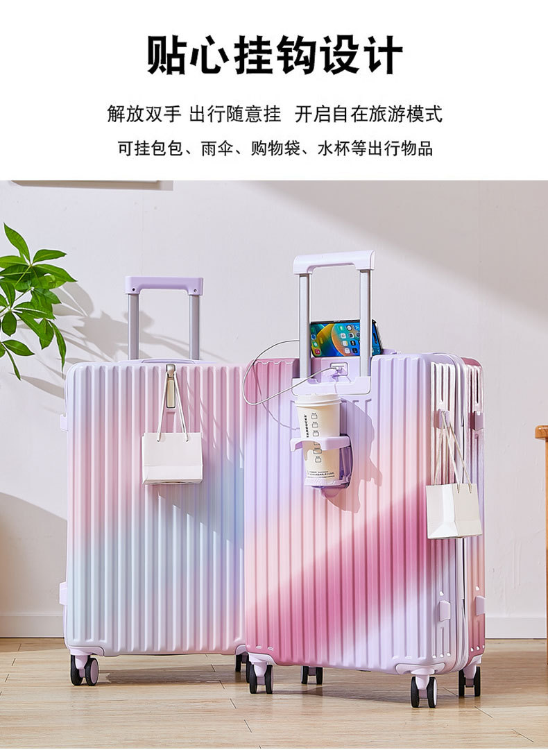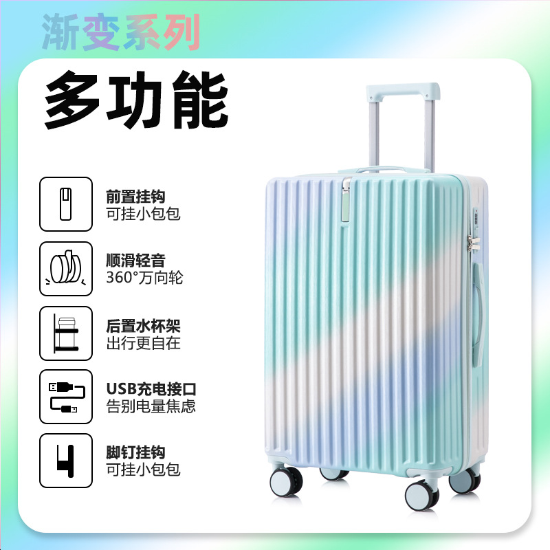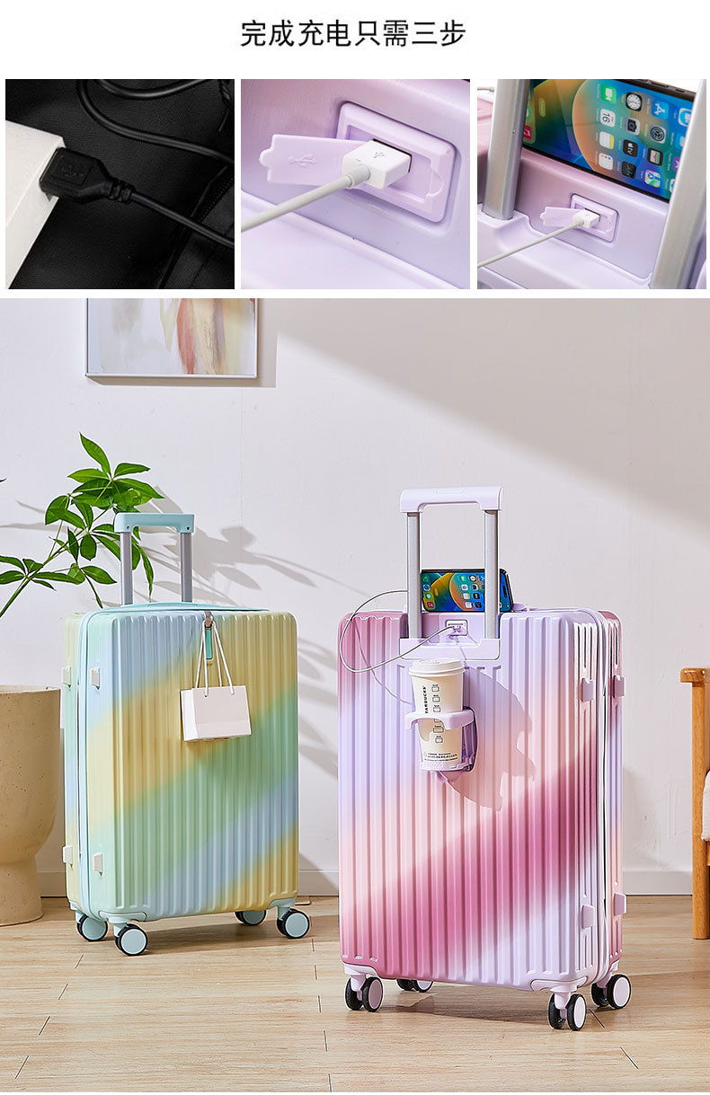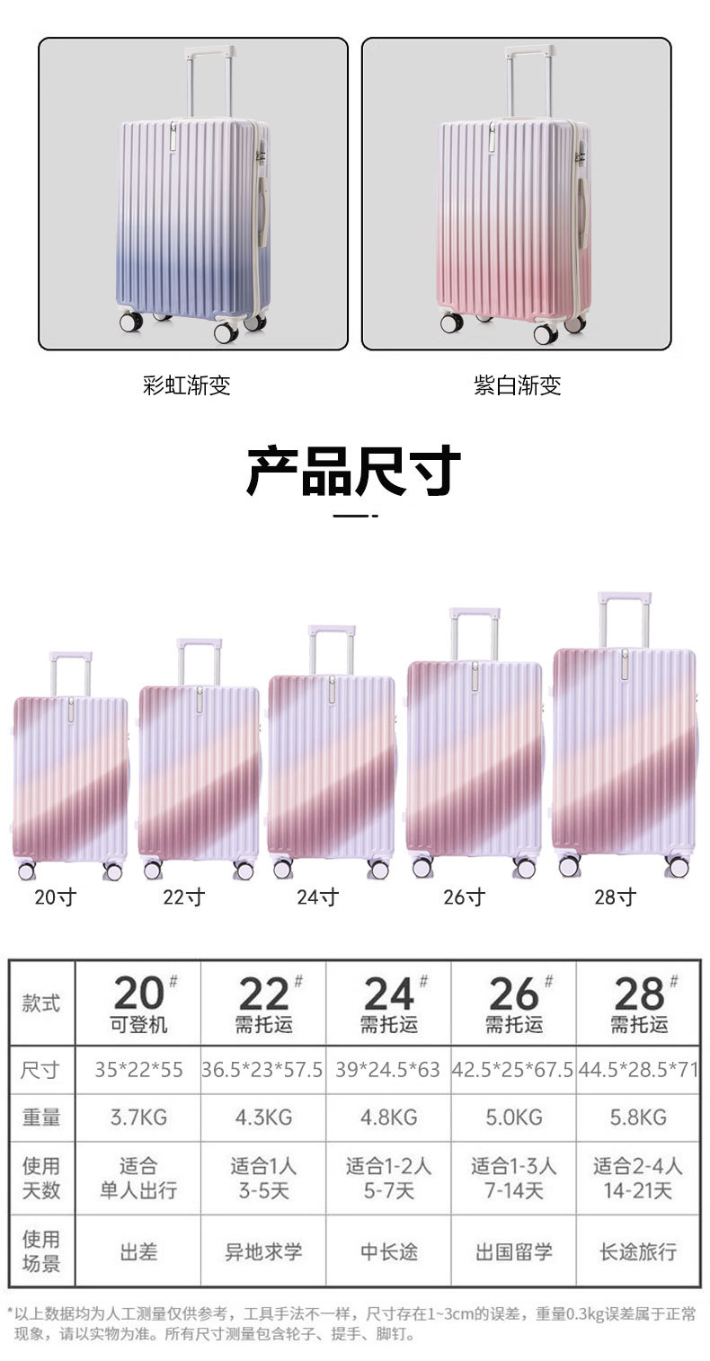 【엄선된 공장】그라데이션 트렌디 컬러 여행가방, 여성용 고급스러운 트롤리 캐리어, 남성용 대용량 학생용 비밀번호 캐리어스토어 가기