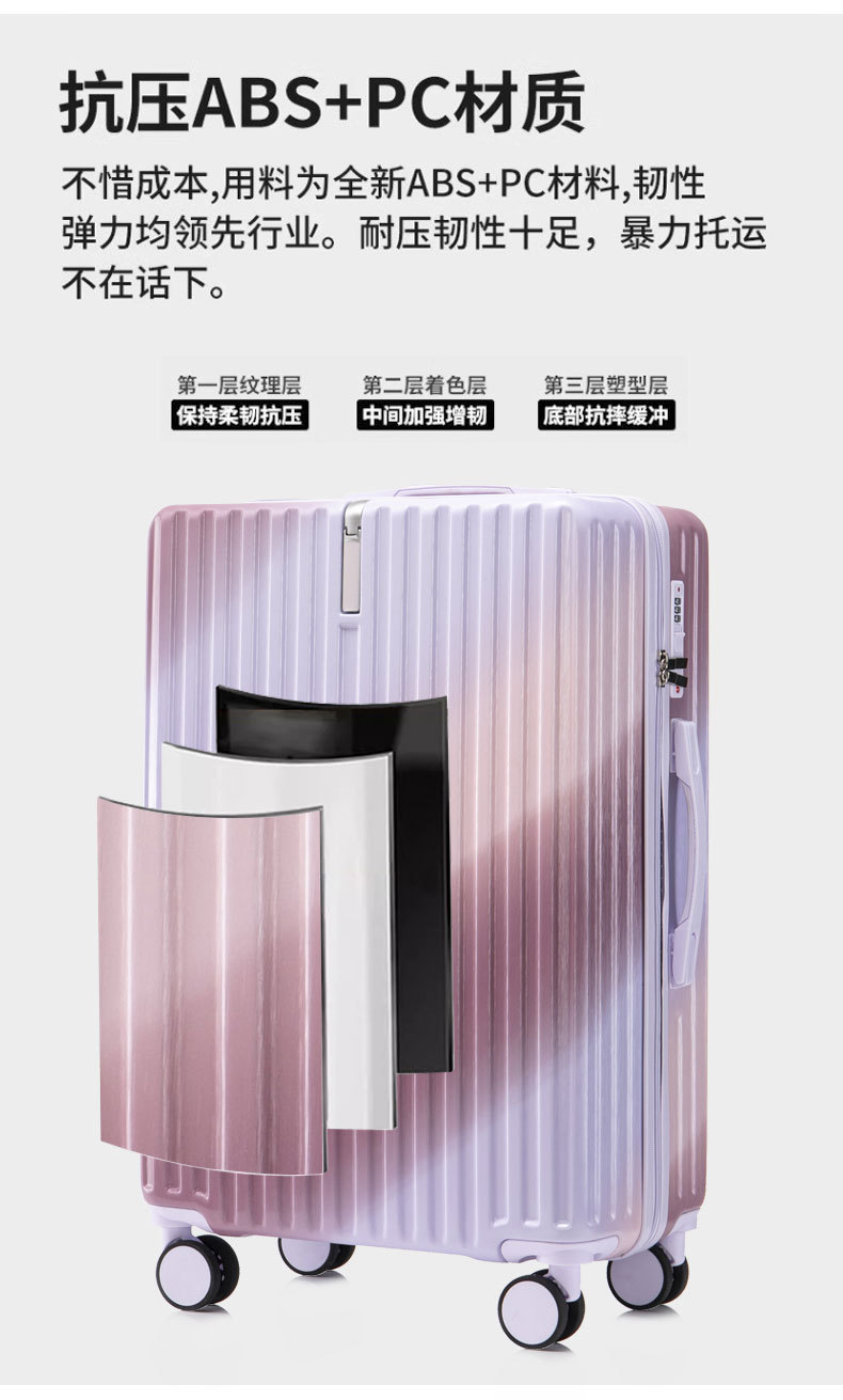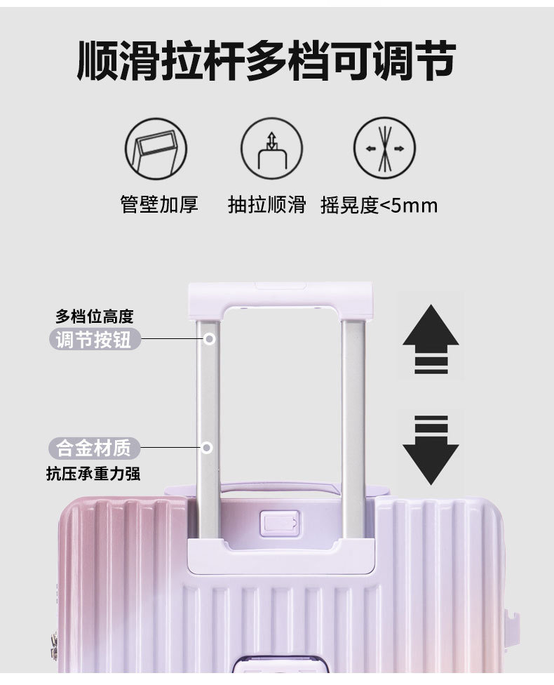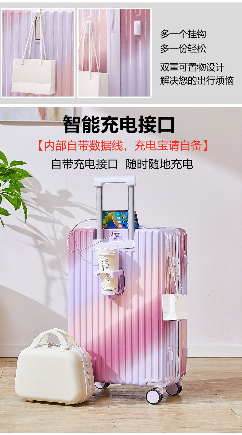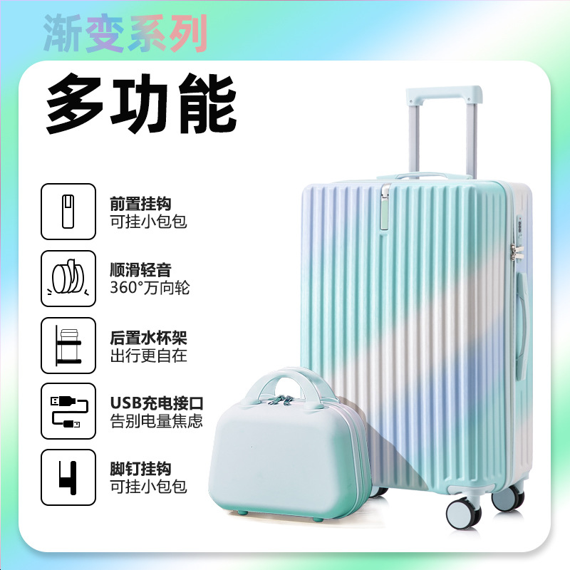 【엄선된 공장】그라데이션 트렌디 컬러 여행가방, 여성용 고급스러운 트롤리 캐리어, 남성용 대용량 학생용 비밀번호 캐리어스토어 가기