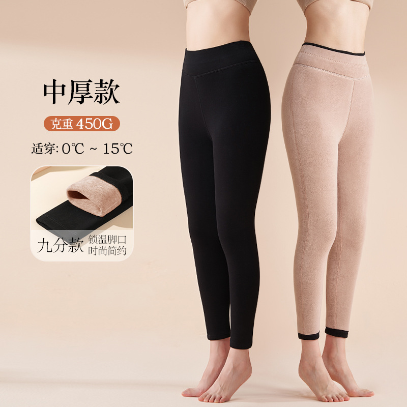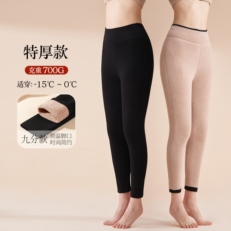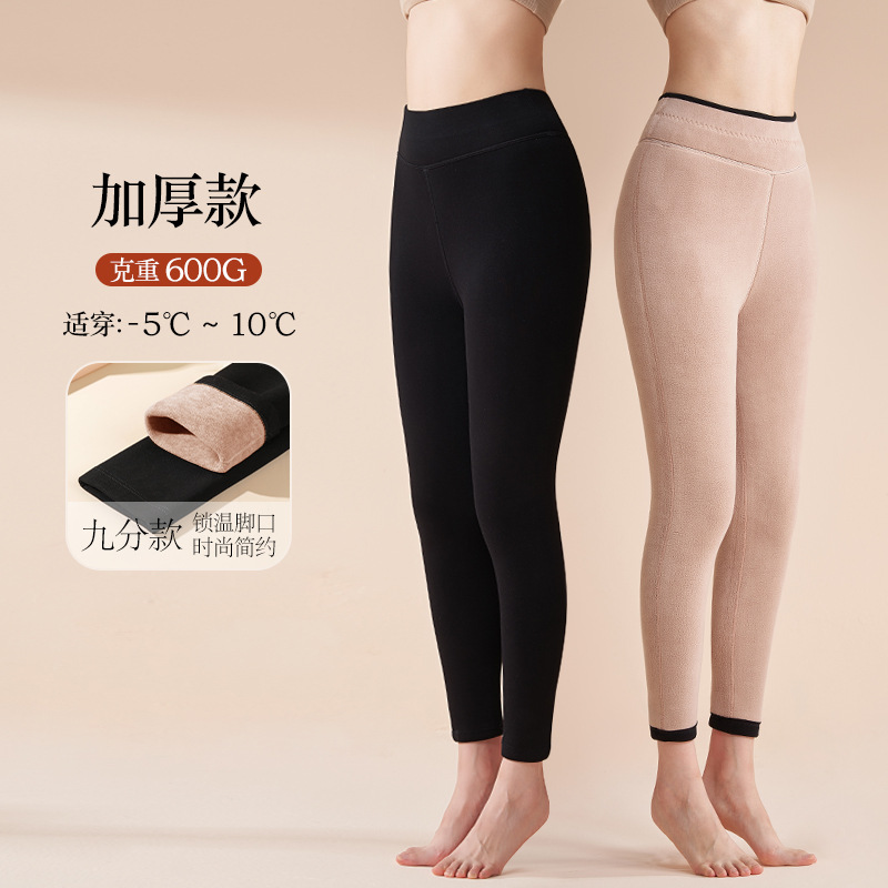 600G 시시 플리스 안감 레깅스 여성용 두꺼운 독일산 플리스 보온 바지 하이웨이스트 면바지 9부 레깅스