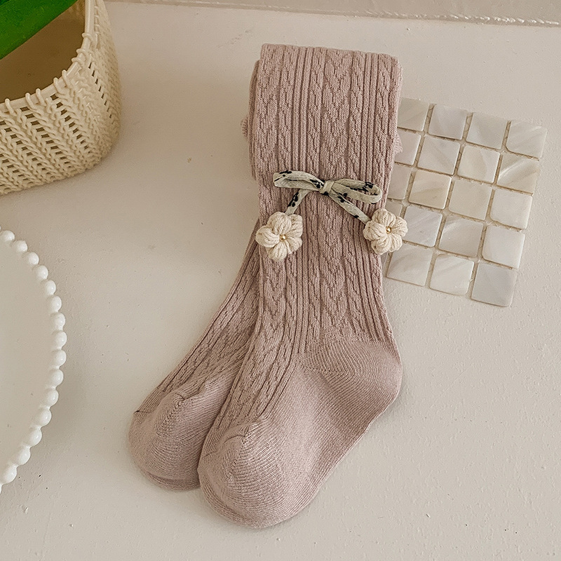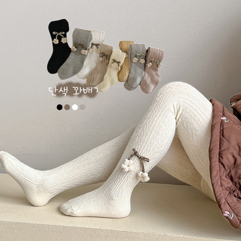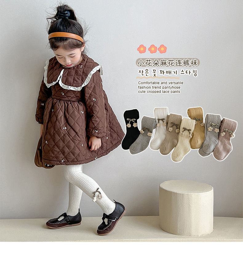 2023 봄과 가을 새로운 어린이 팬티 스타킹 단색 대마 패턴 작은 꽃 귀여운 소녀 레깅스 팬티 스타킹 도매스토어 가기