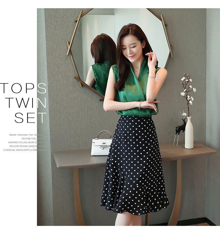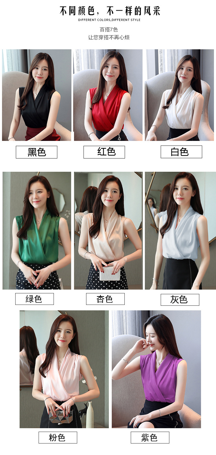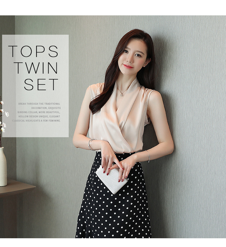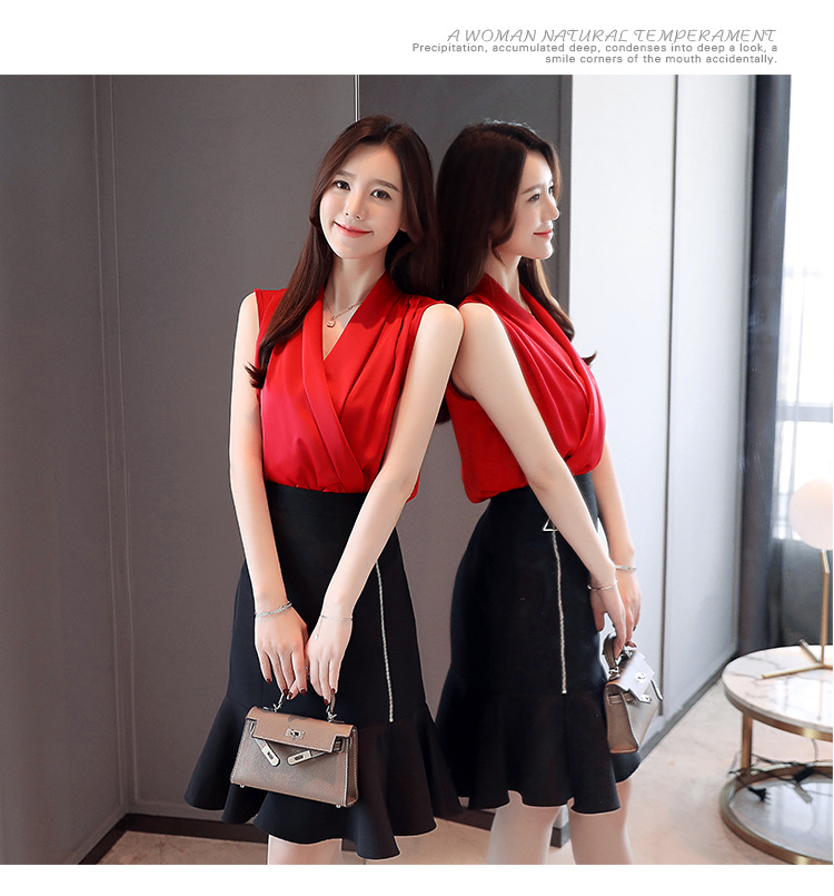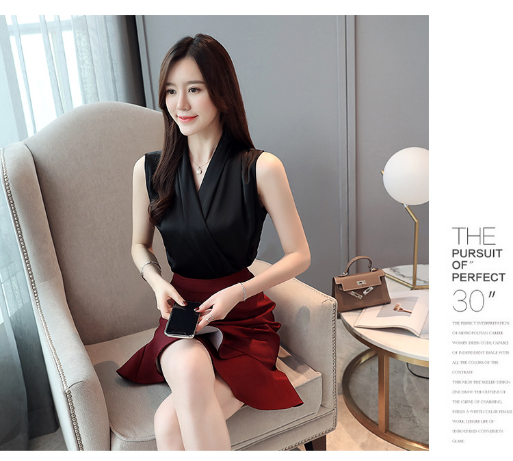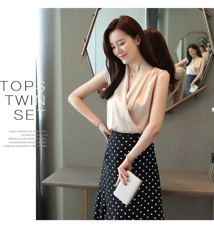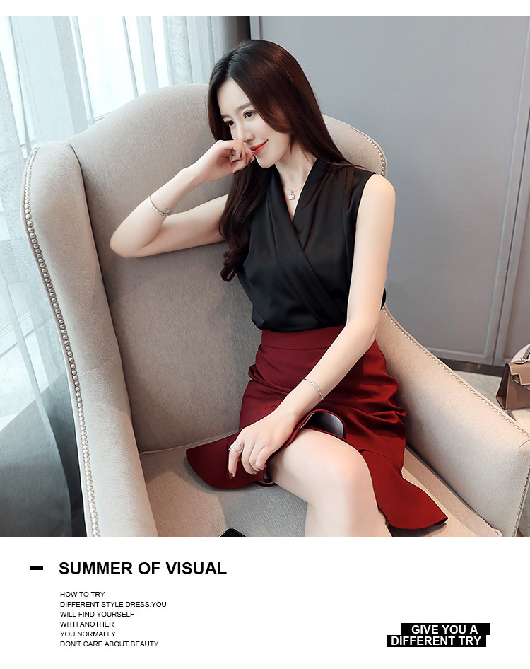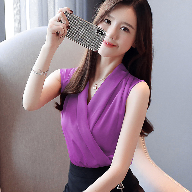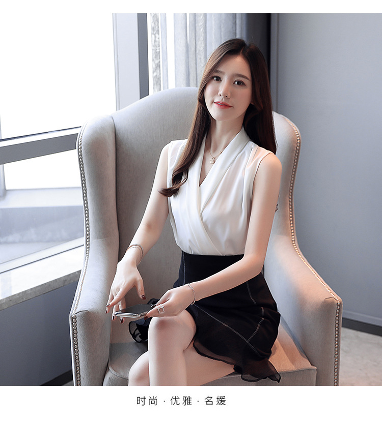 실제 사진 비디오 여름 민소매 쉬폰 셔츠 여성 2025 기질 슬리밍 V 넥 OL 새틴 셔츠 조끼스토어 가기