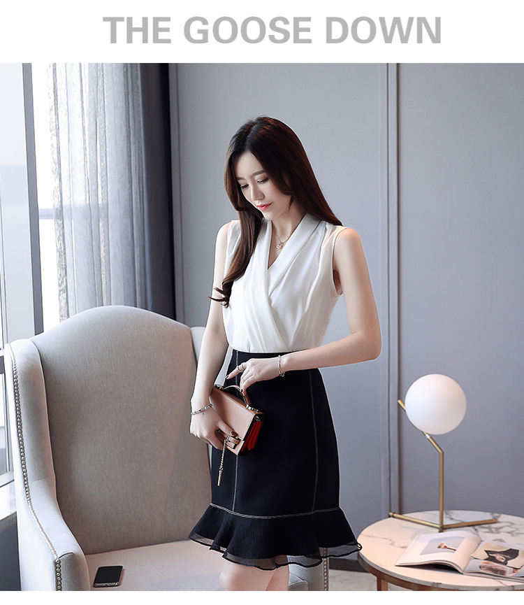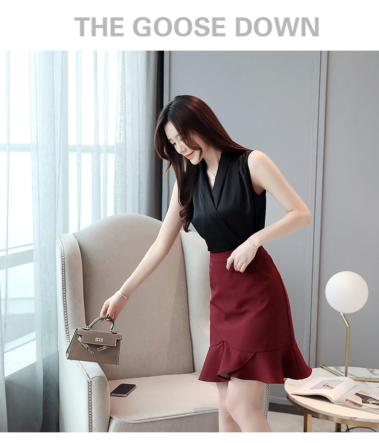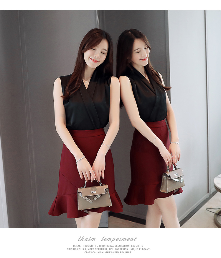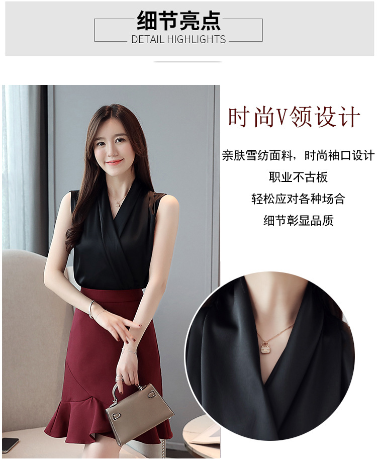 실제 사진 비디오 여름 민소매 쉬폰 셔츠 여성 2025 기질 슬리밍 V 넥 OL 새틴 셔츠 조끼