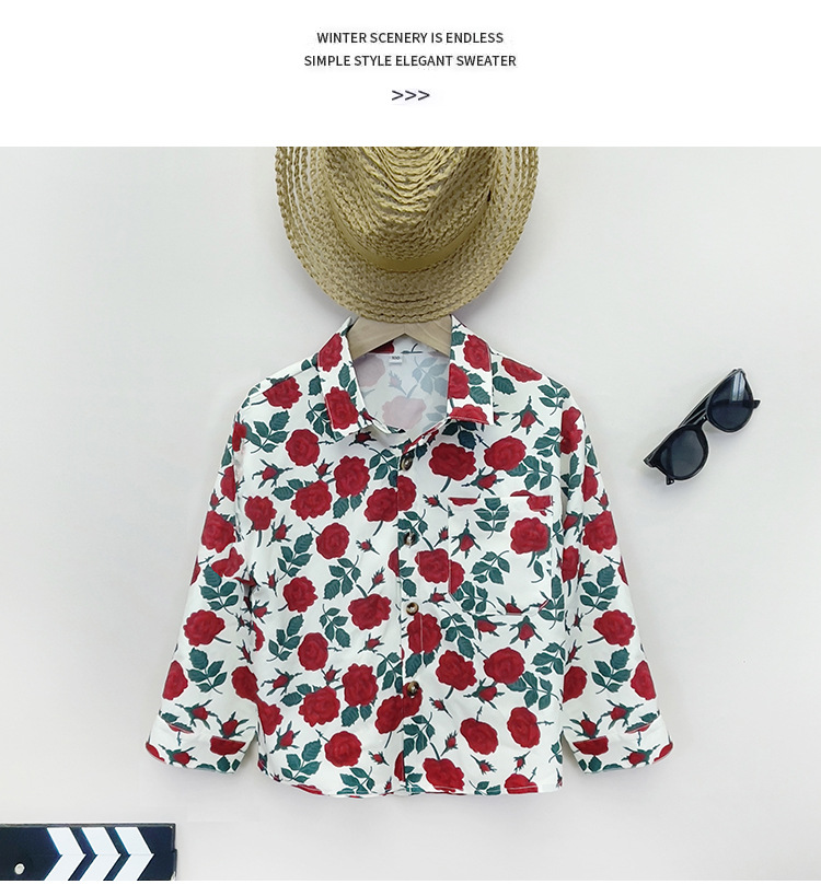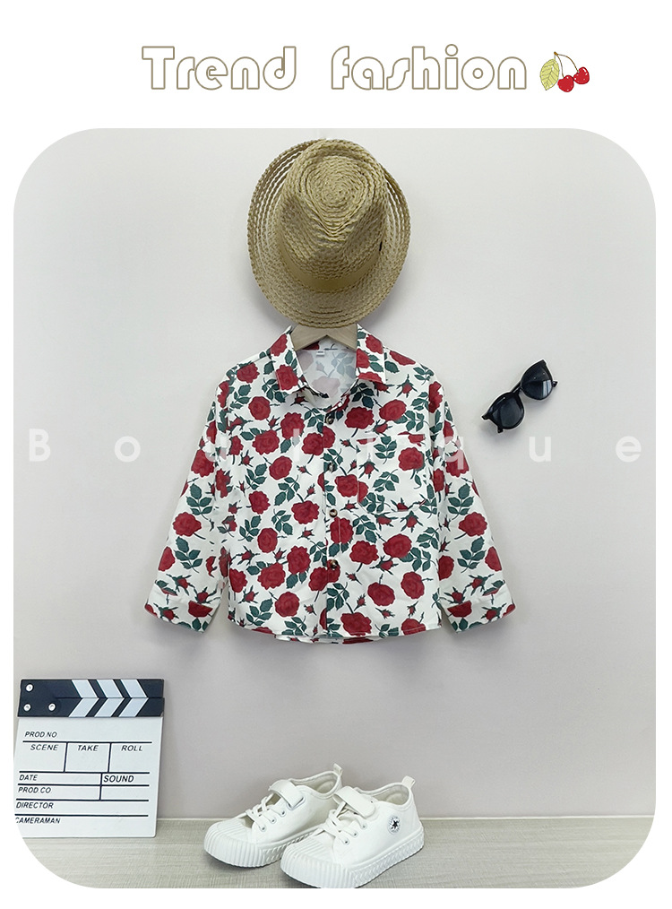 아동 의류 공급망 아동 꽃무늬 셔츠 봄, 가을 소년 긴팔 홍콩 스타일 프린트 셔츠 잘생긴 소년 스트리트 재킷스토어 가기