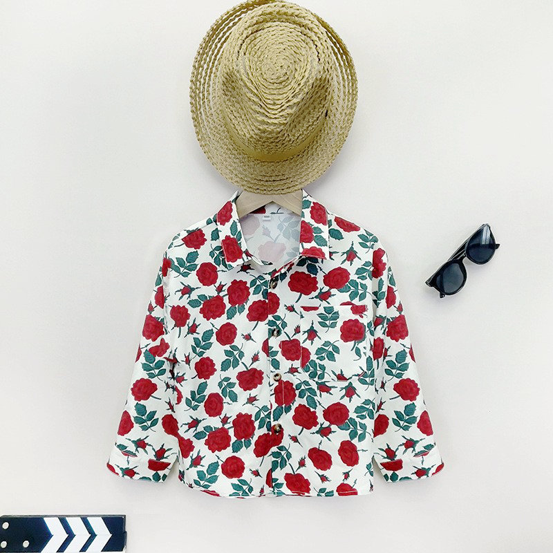 아동 의류 공급망 아동 꽃무늬 셔츠 봄, 가을 소년 긴팔 홍콩 스타일 프린트 셔츠 잘생긴 소년 스트리트 재킷