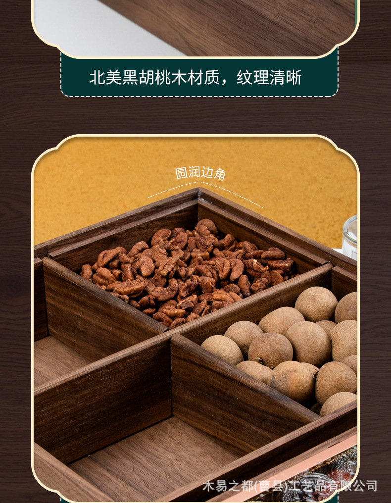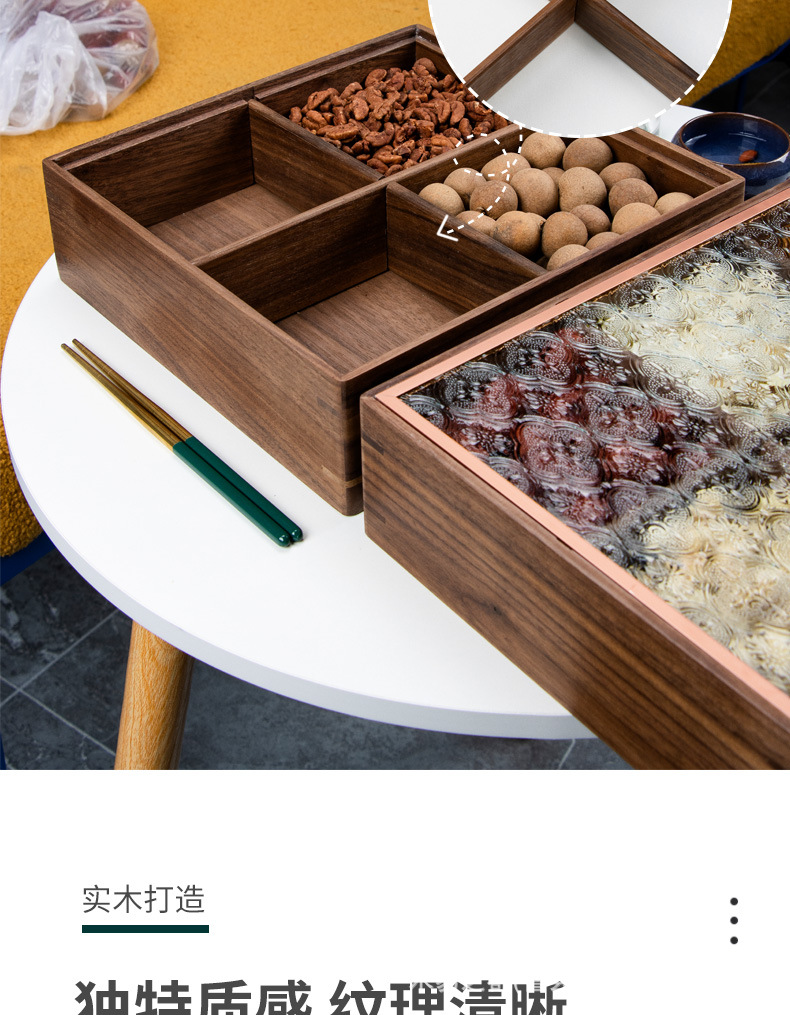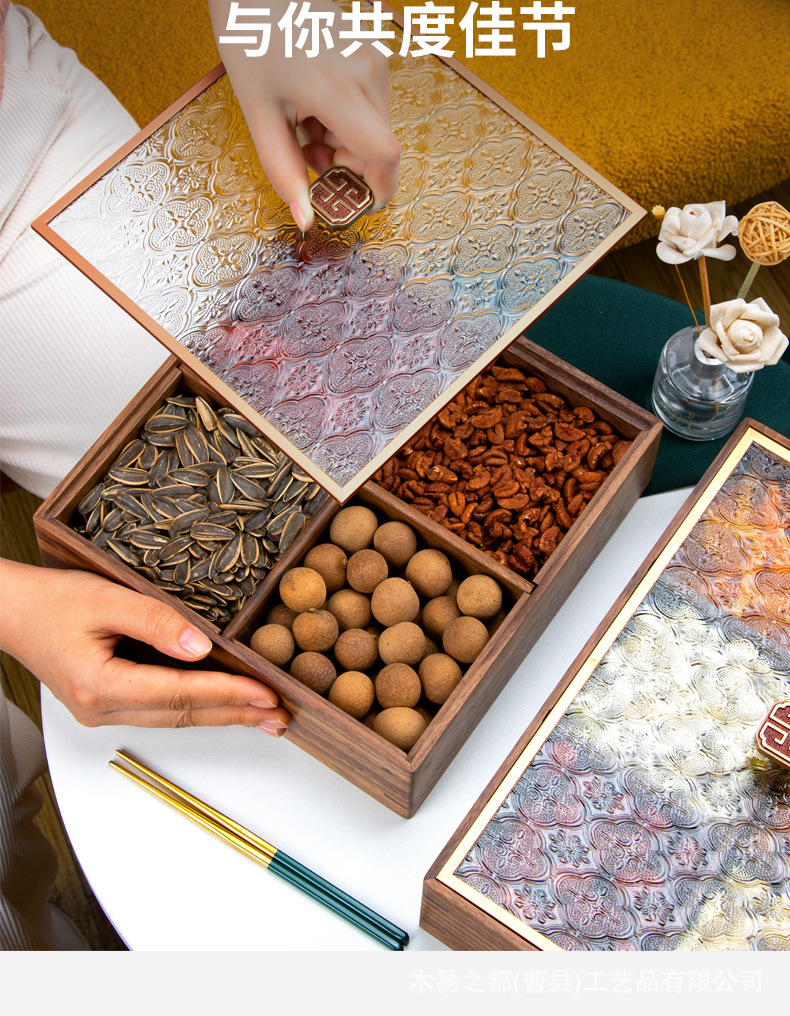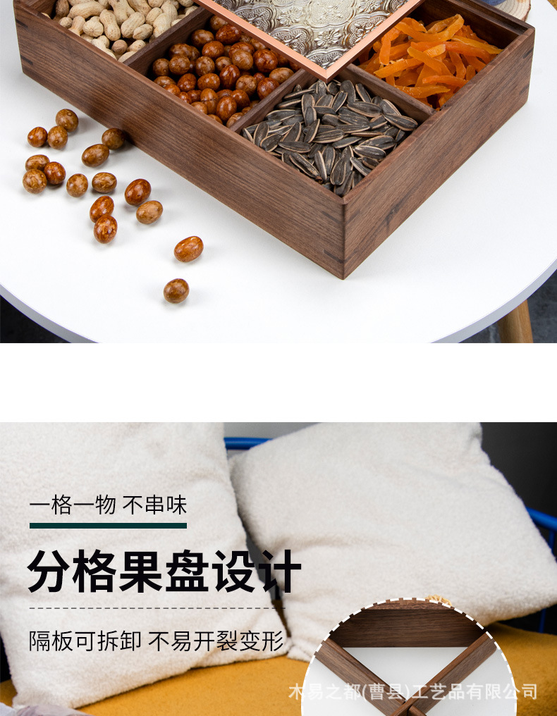 검은 호두 단단한 나무 말린 과일 접시 새로운 중국 거실 가정 분리 된 새해 과일 상자 뚜껑 너트 사탕 보관 상자스토어 가기
