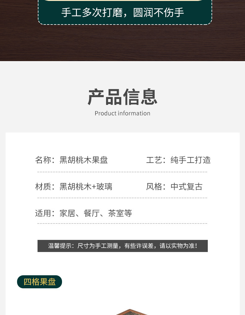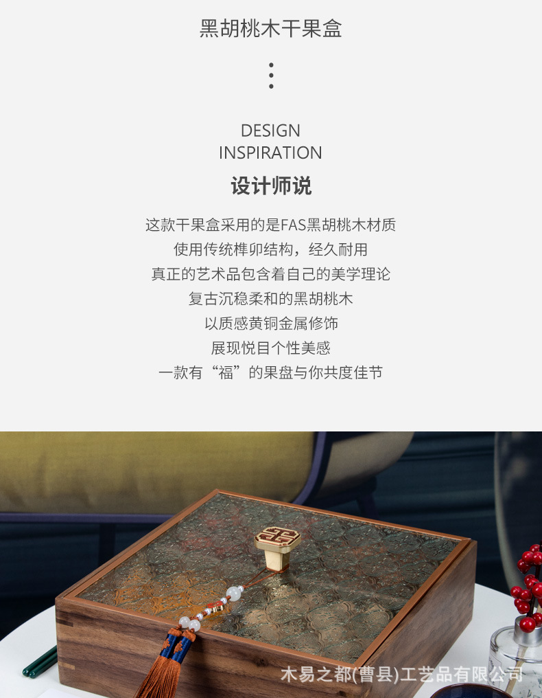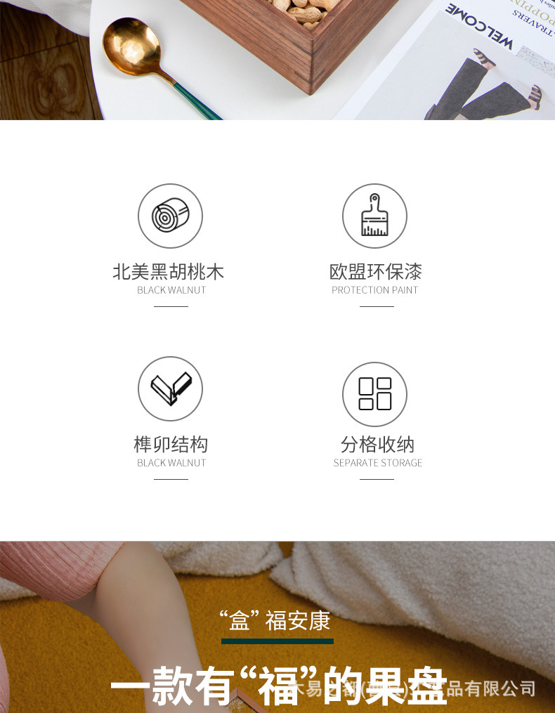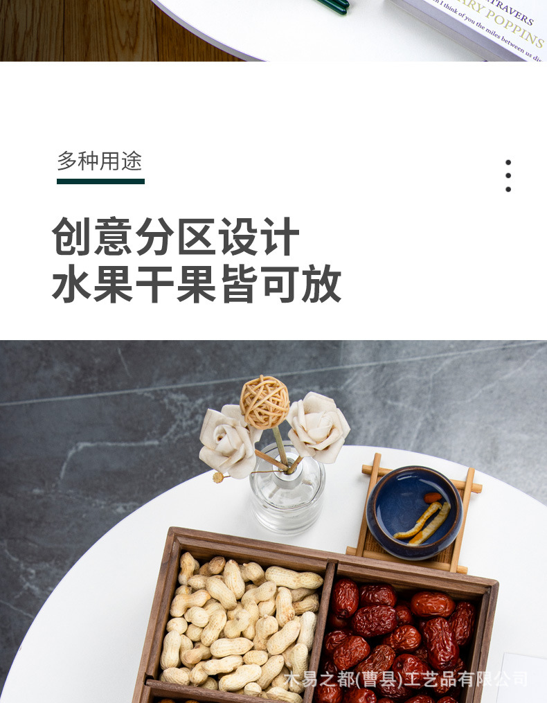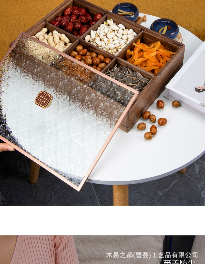 검은 호두 단단한 나무 말린 과일 접시 새로운 중국 거실 가정 분리 된 새해 과일 상자 뚜껑 너트 사탕 보관 상자스토어 가기