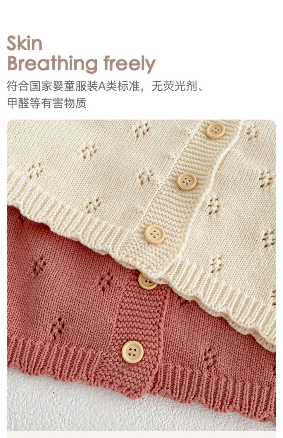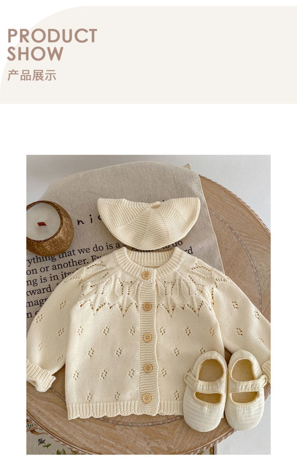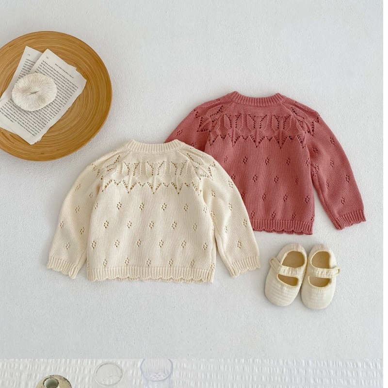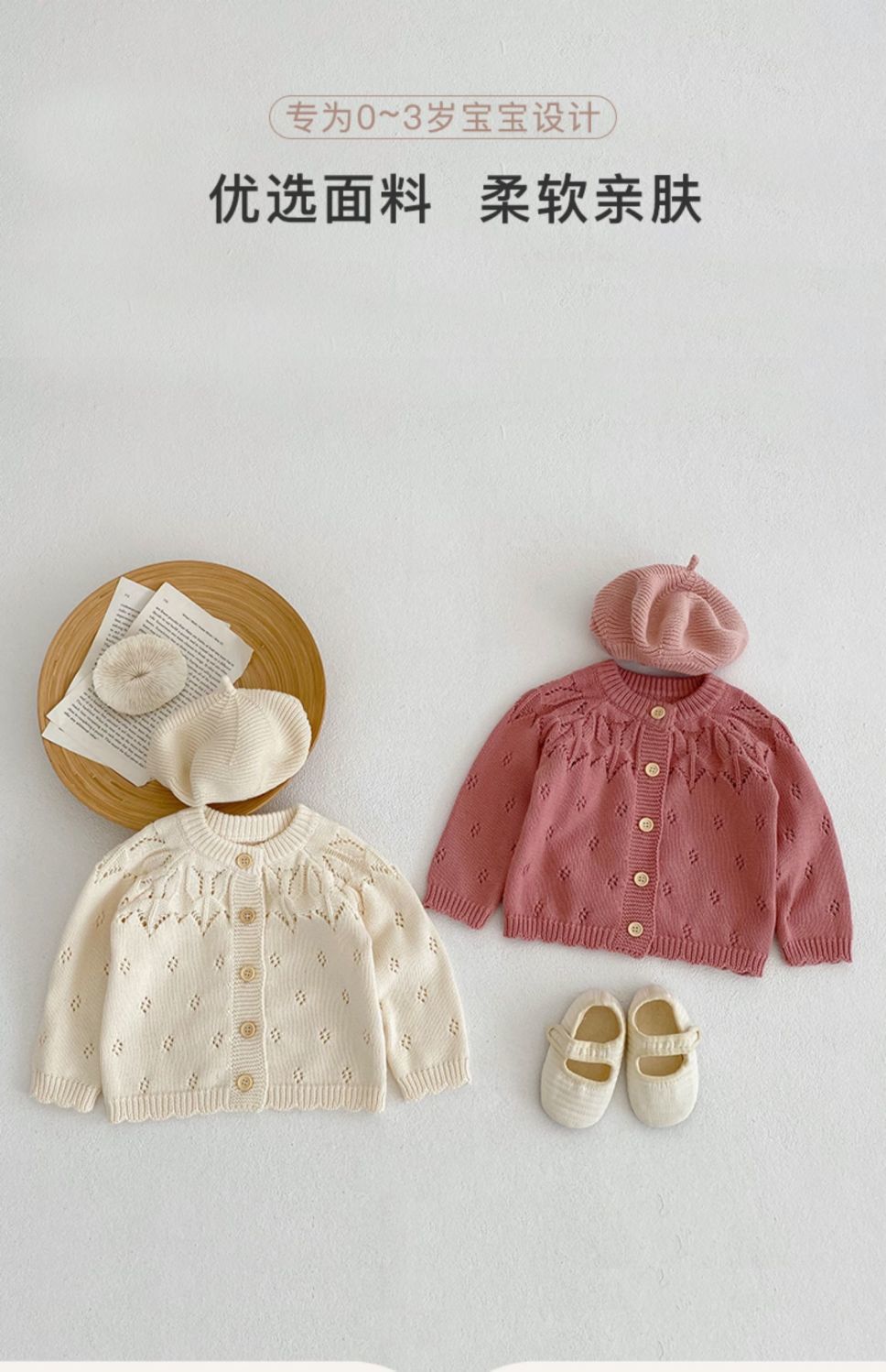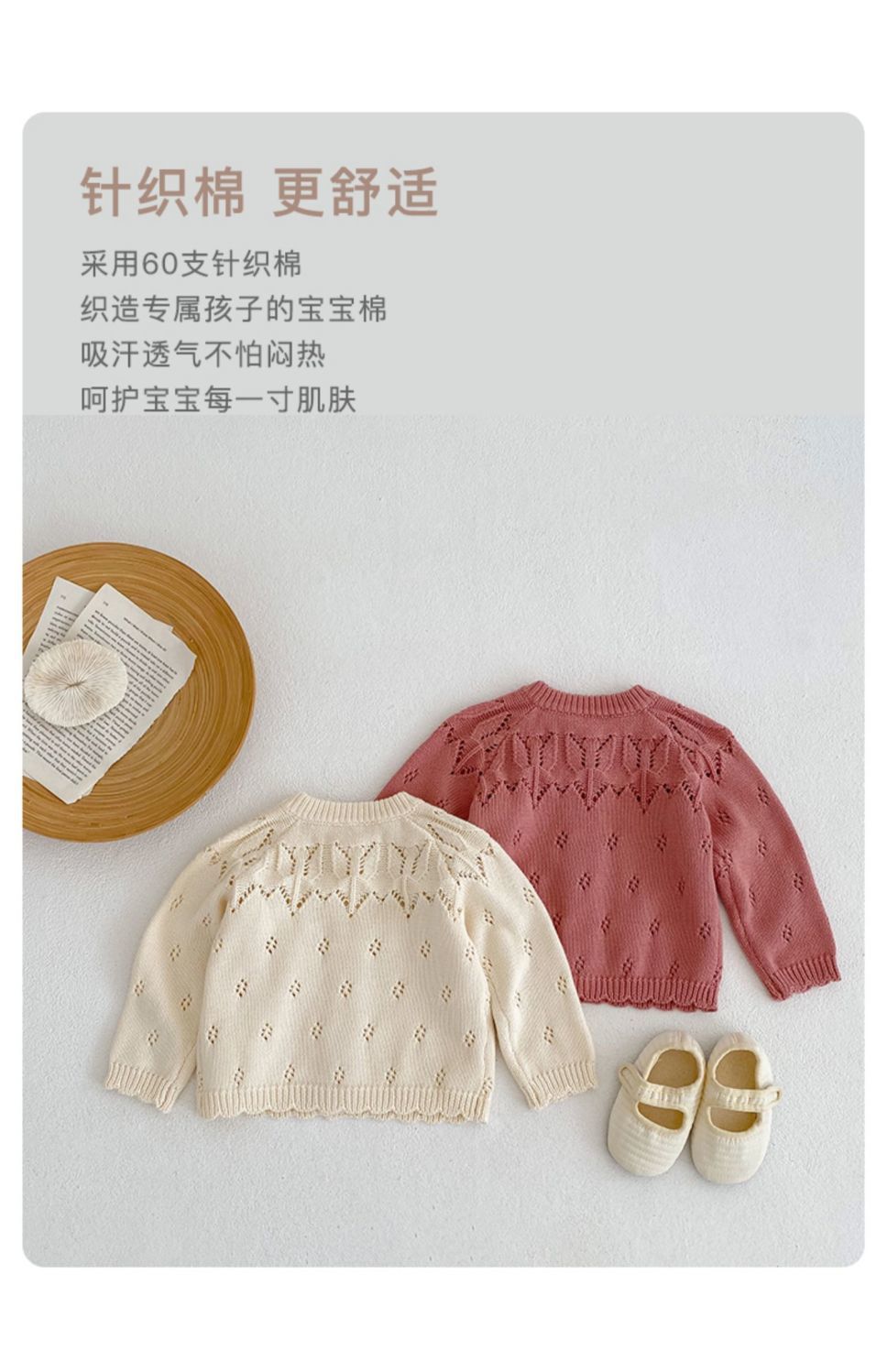 2023 봄 올매치 베이비 베이비 자카드 중공 니트 코트 코튼 긴팔 에어컨 가디건