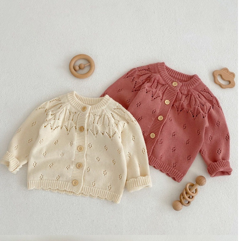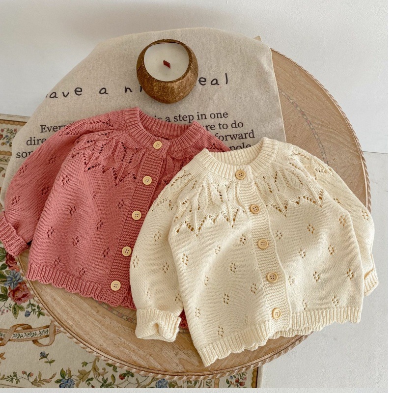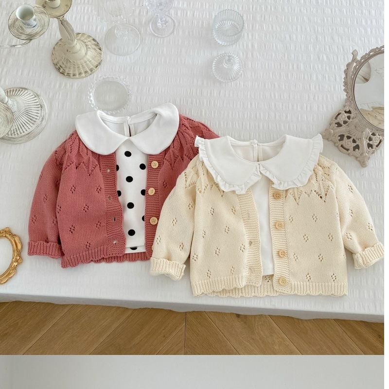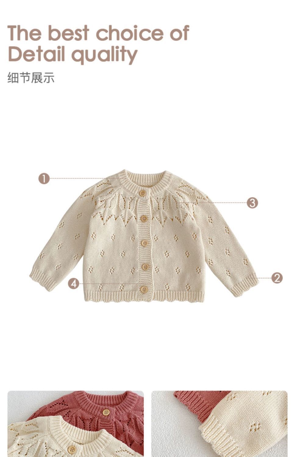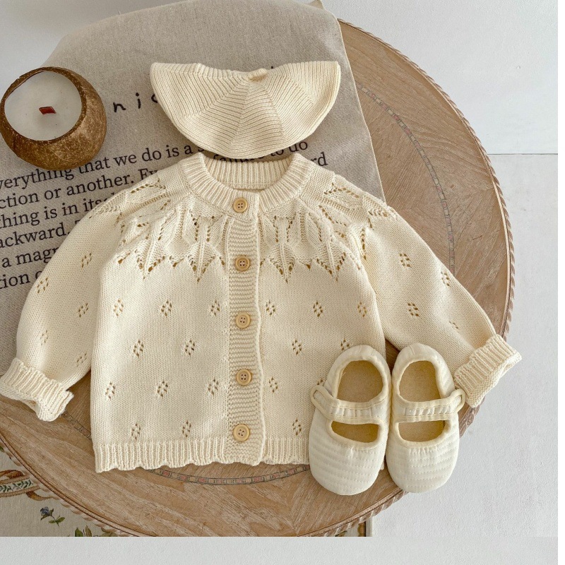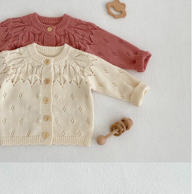 2023 봄 올매치 베이비 베이비 자카드 중공 니트 코트 코튼 긴팔 에어컨 가디건